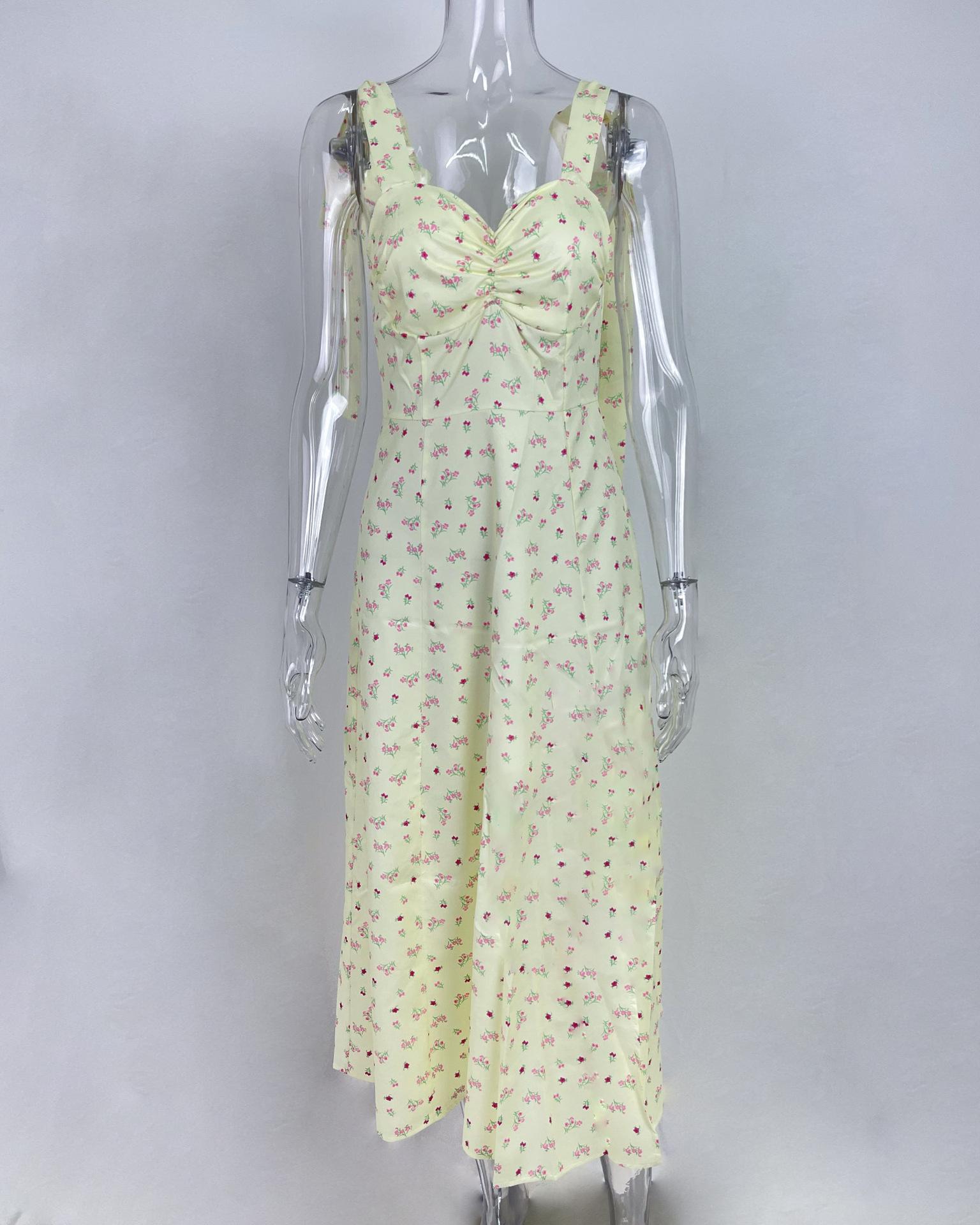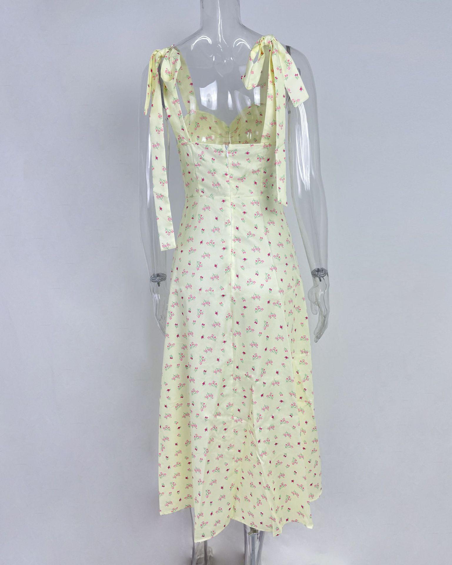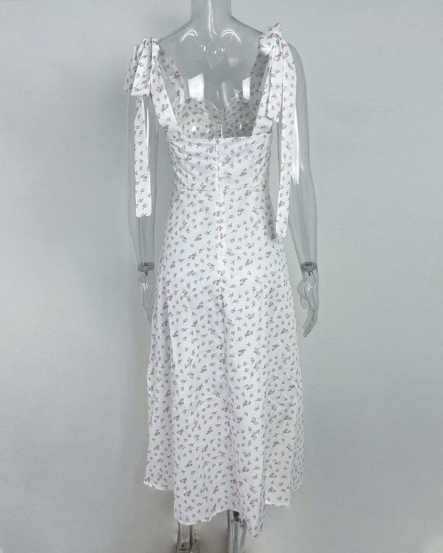 Vestido de verano 2024 con estampado floral francés, espalda descubierta, corte entallado y abertura para mujer europea y americana de Amazon