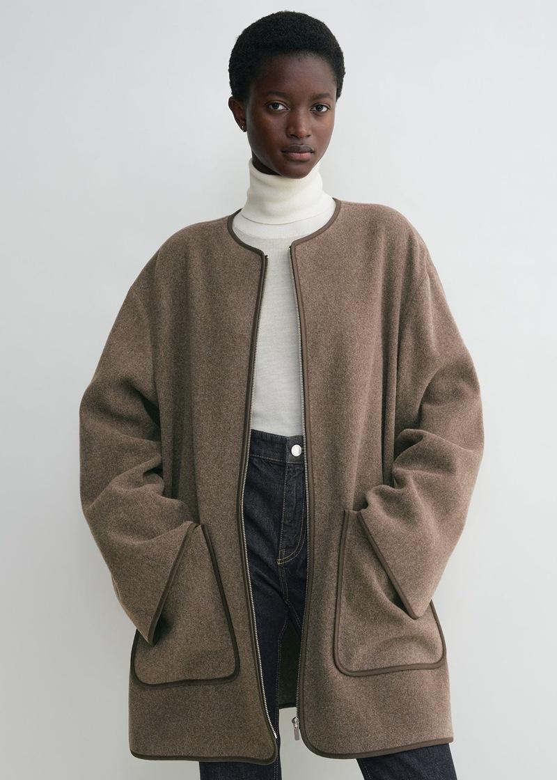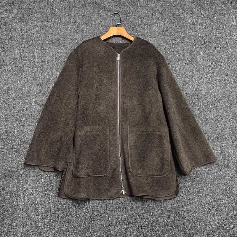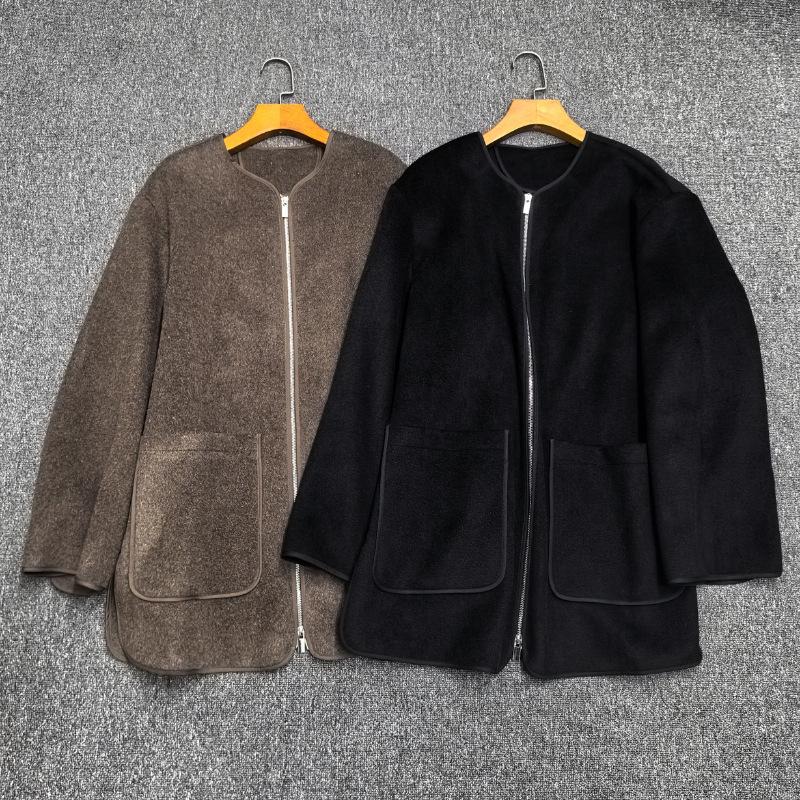 Longmei 2025 Principios de Primavera Nuevo Estilo Escandinavo Tot Sencillo Suelto Cuello Redondo Chaqueta con Cremallera Chaqueta de Lana para Mujer