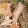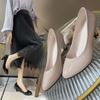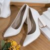 Zapatos de tacón alto blancos de punta estrecha con punta poco profunda y moda transfronteriza 2023, nuevos y versátiles zapatos de cuero suave con tacón grueso europeos y americanos.