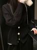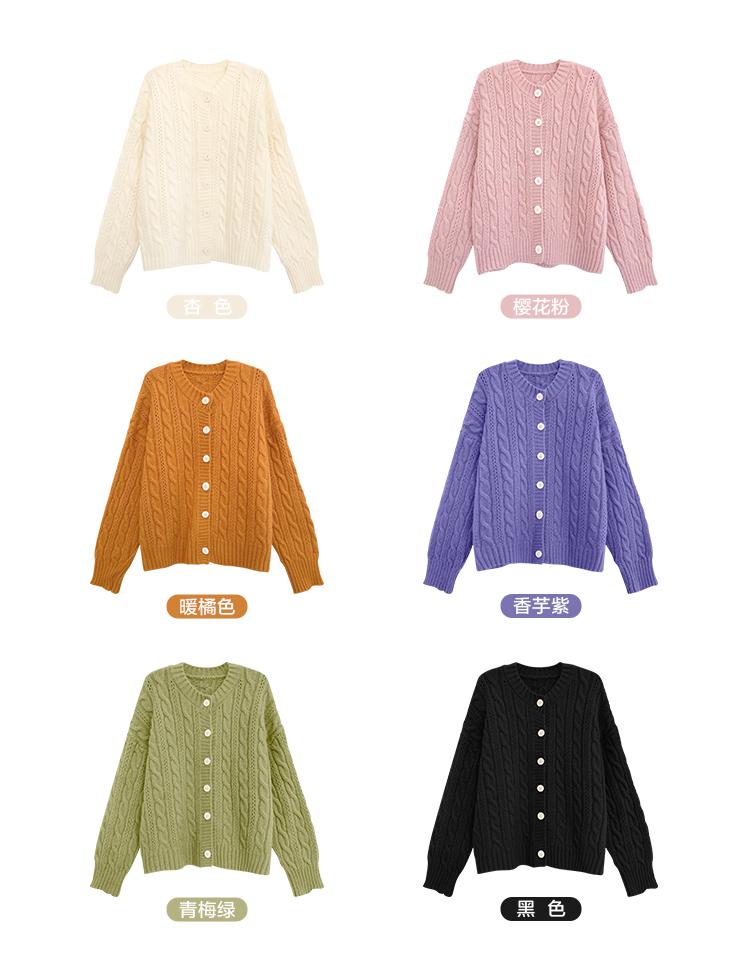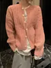 Cárdigan de punto con cuello redondo y giro retro para mujer, suéter holgado e informal de moda suave y encerado, abrigo corto, otoño e invierno, nuevo