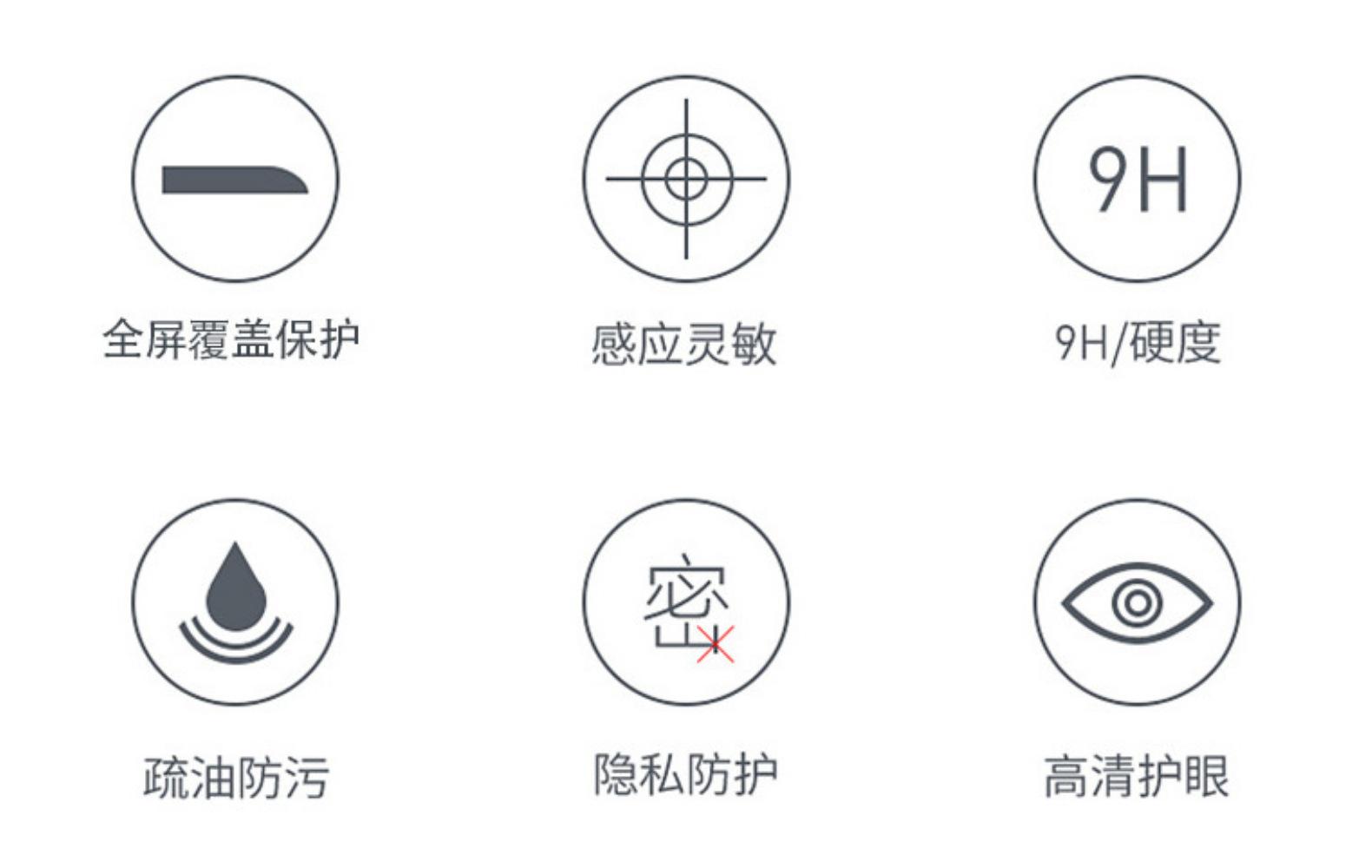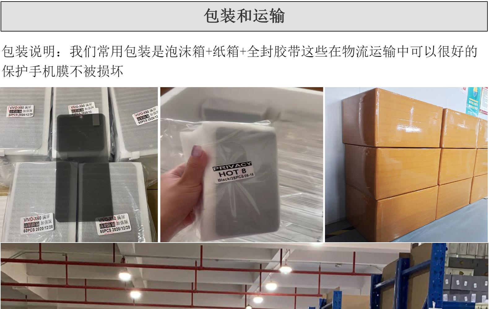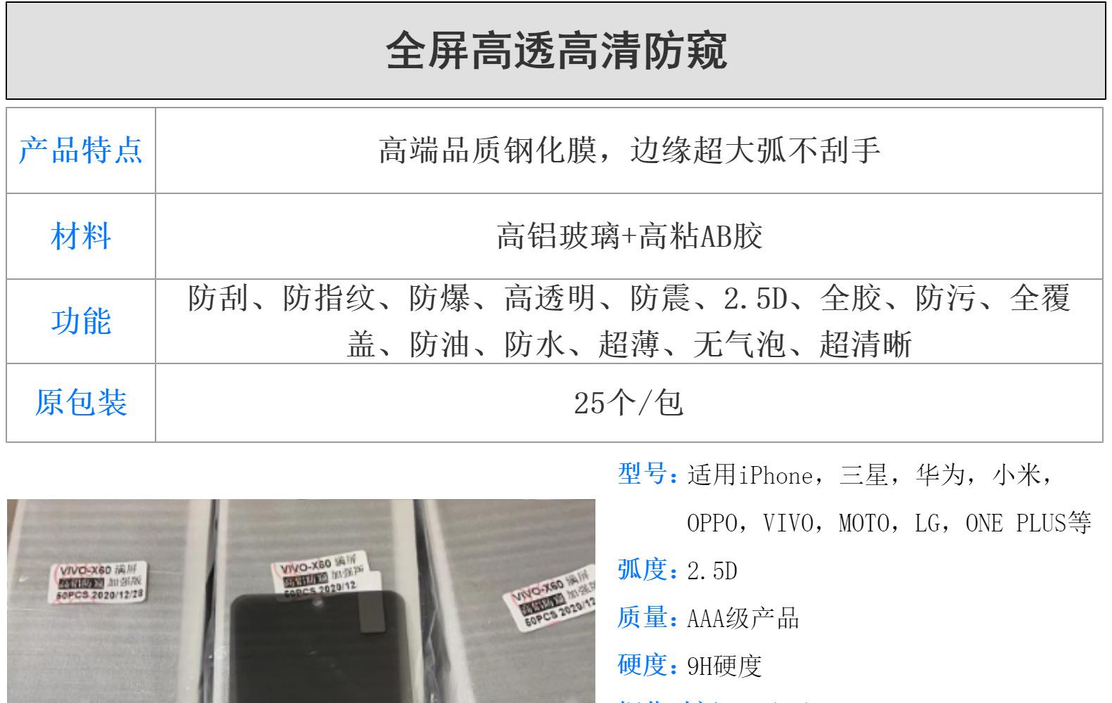Full-screen high-transparency privacy protection (minimum order of 25/package in multiples)