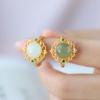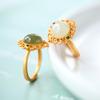 Anillo de Jaspe Natural Estilo Retro Exquisito Anillo Hotan para Mujer Pequeño Anillo de Moda Fresco para Mujer