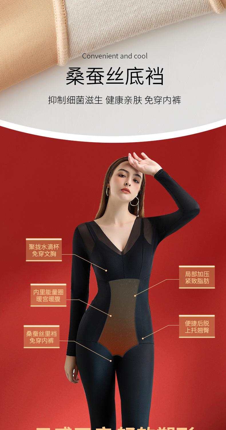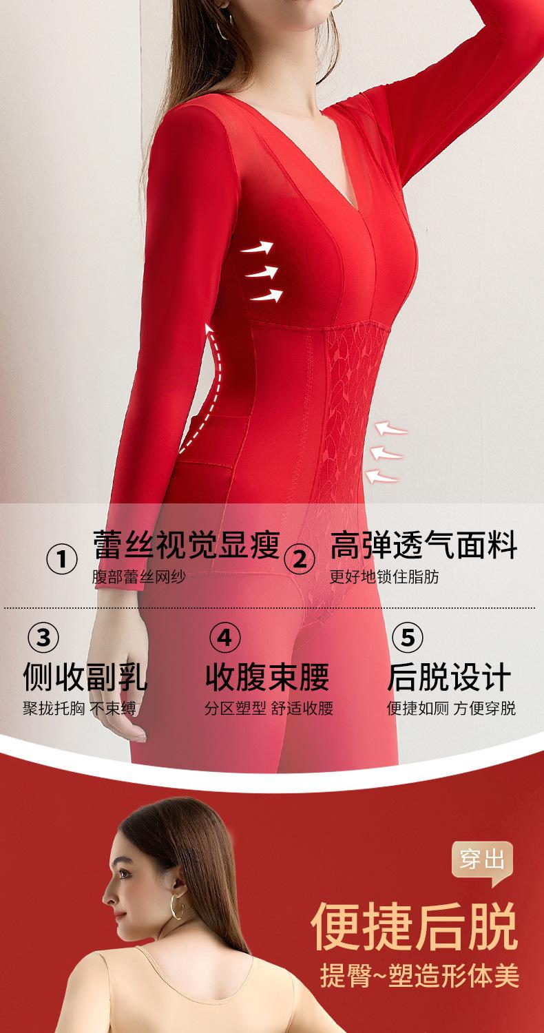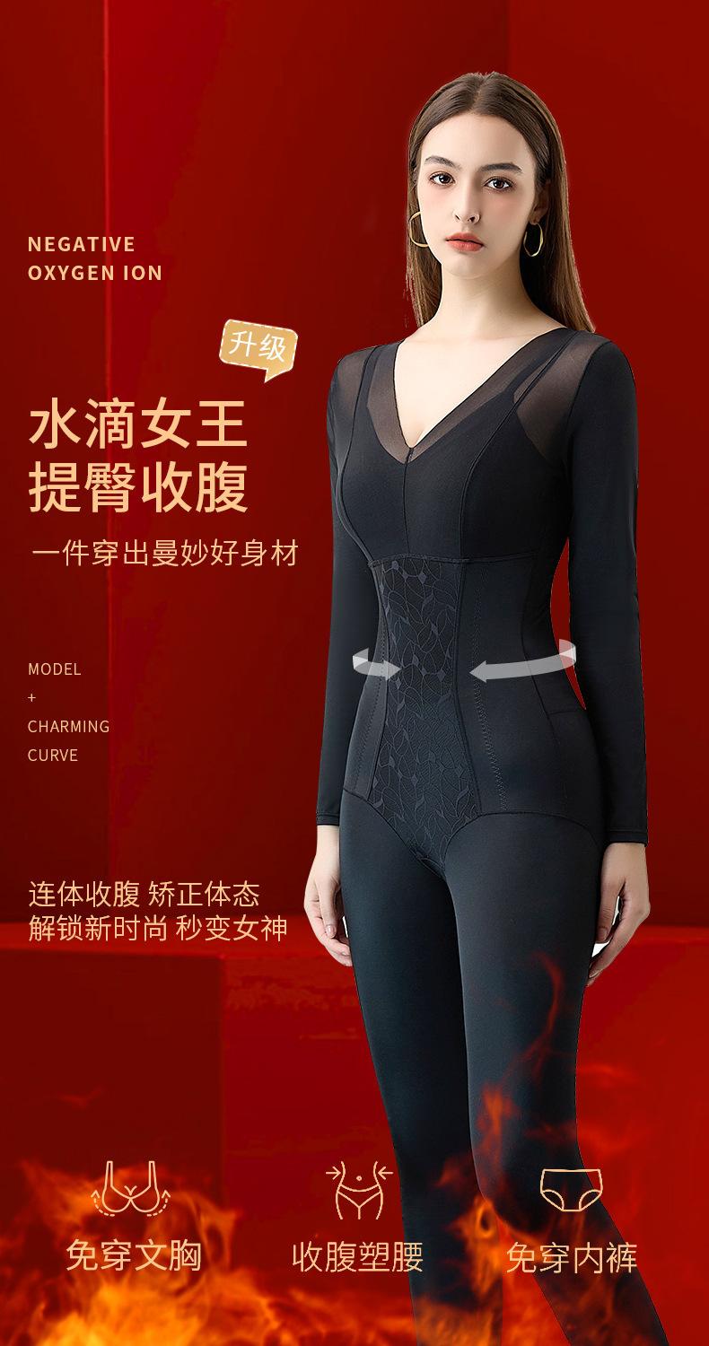 "Reina de las Gotas de Agua" Pantalón de Manga Larga Enterizo con Sujetador Desmontable Corsé Enterizo que Levanta Abdomen y Cadera Ropa Interior Femenina