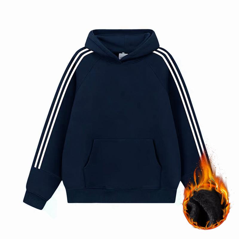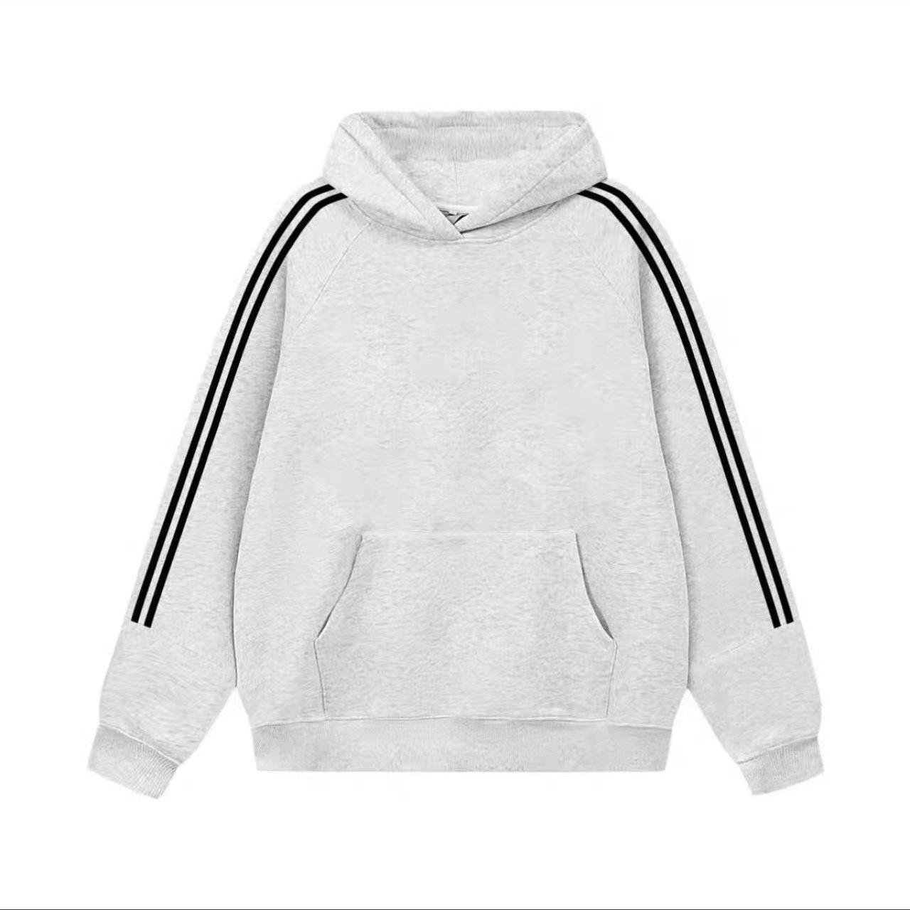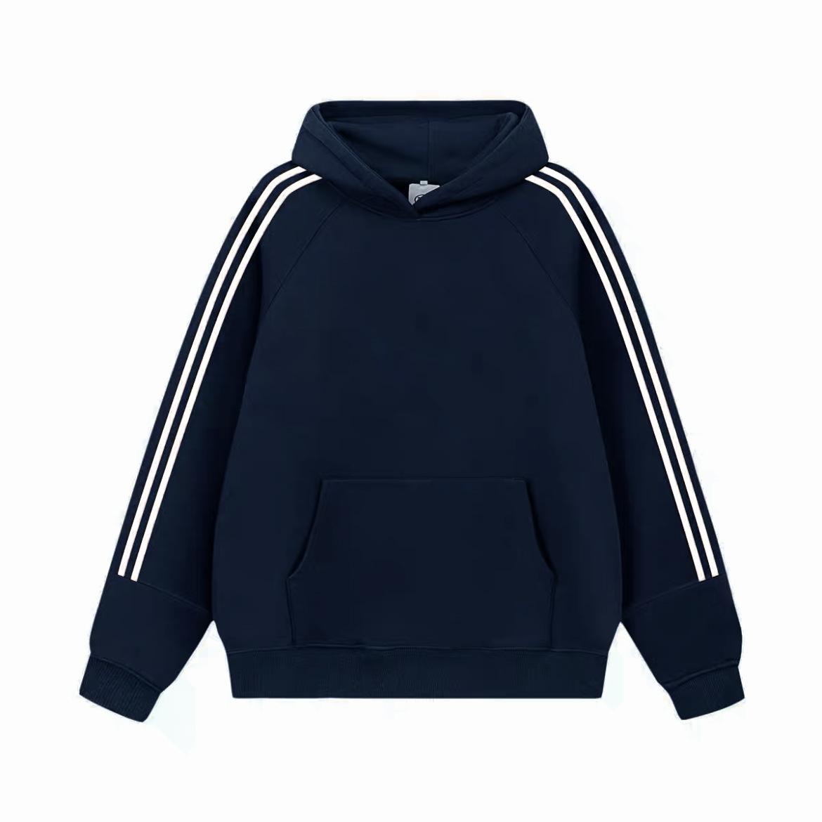 Sudadera con capucha de algodón puro de marca de moda pesada para hombres y mujeres Otoño Nuevo Puntada de cinta americana de tres barras Sudadera holgada para pareja