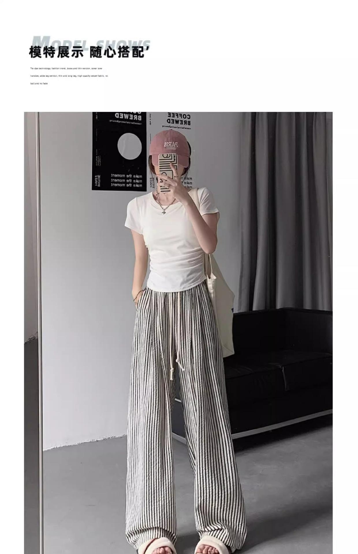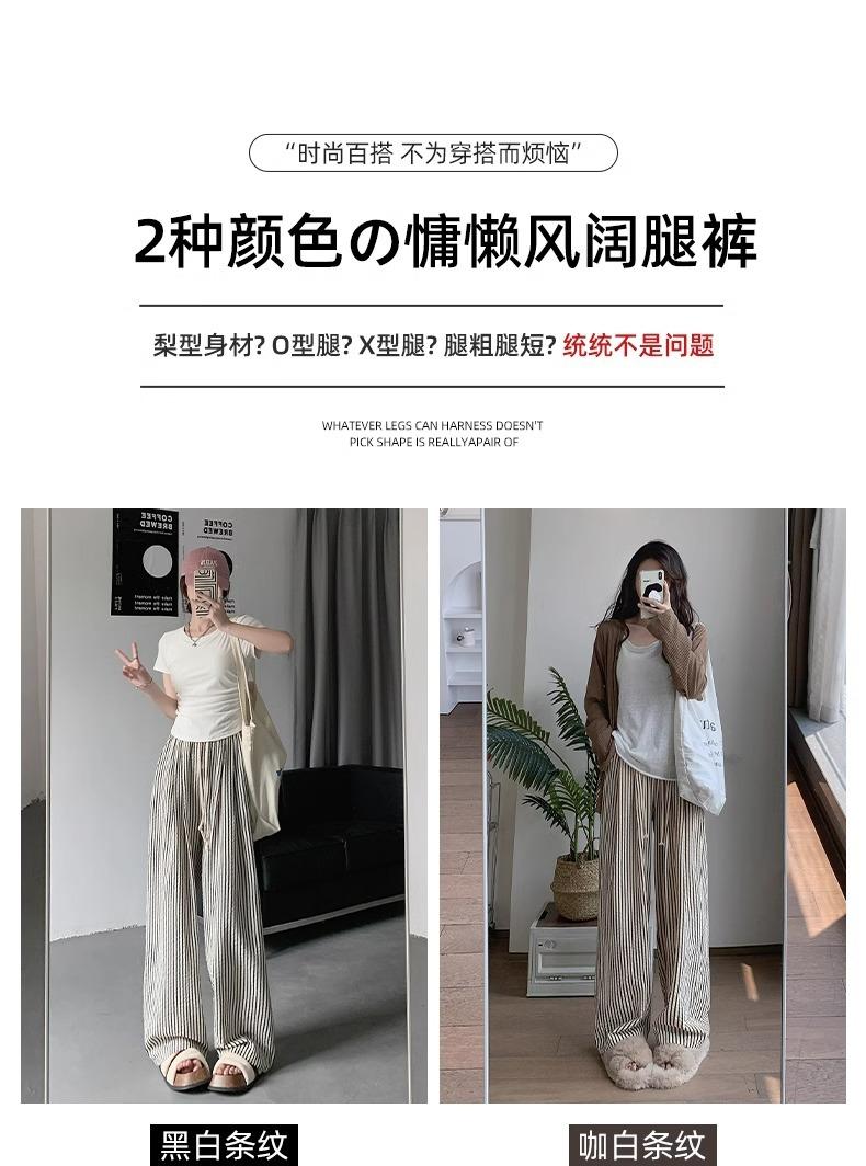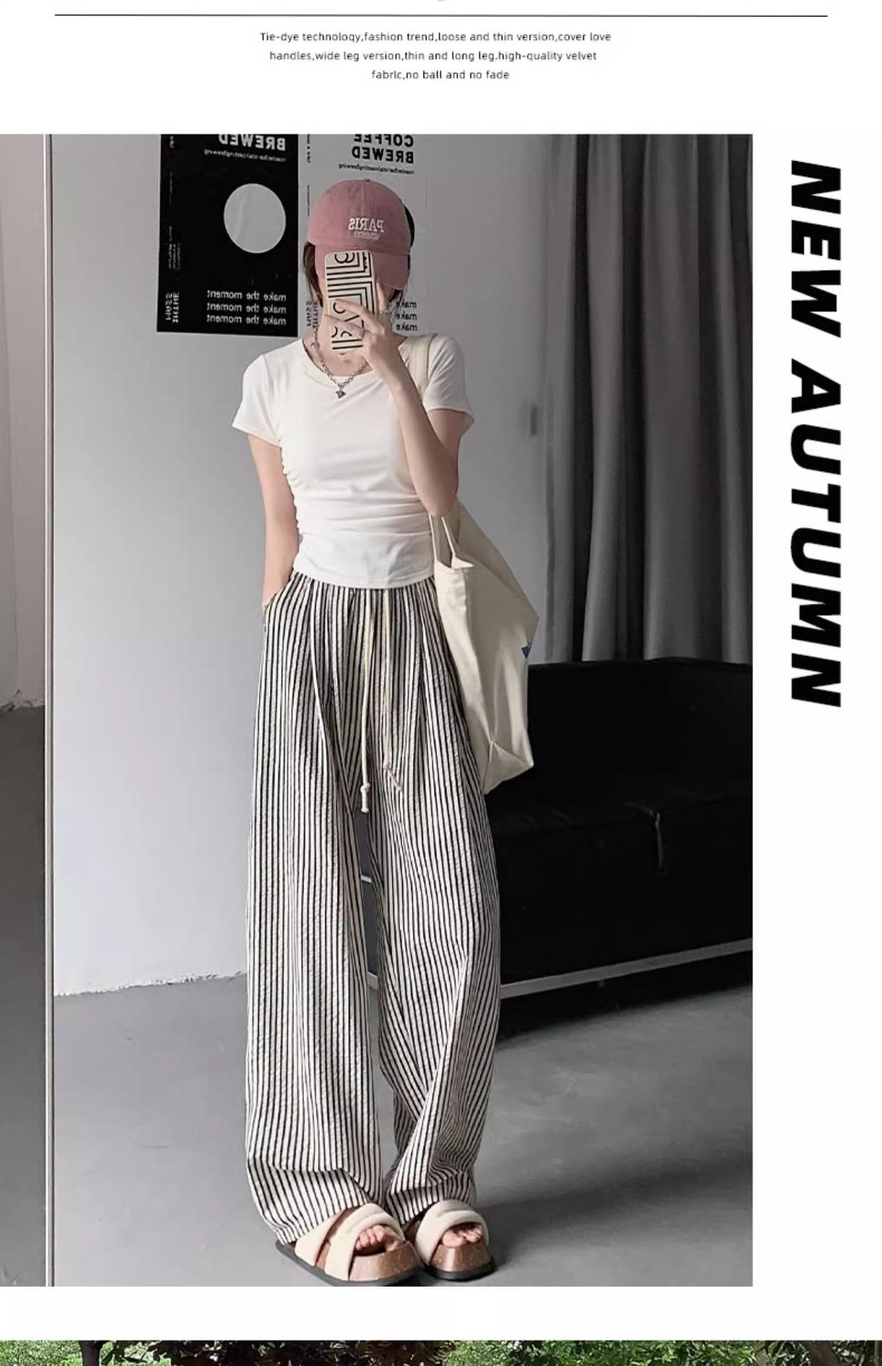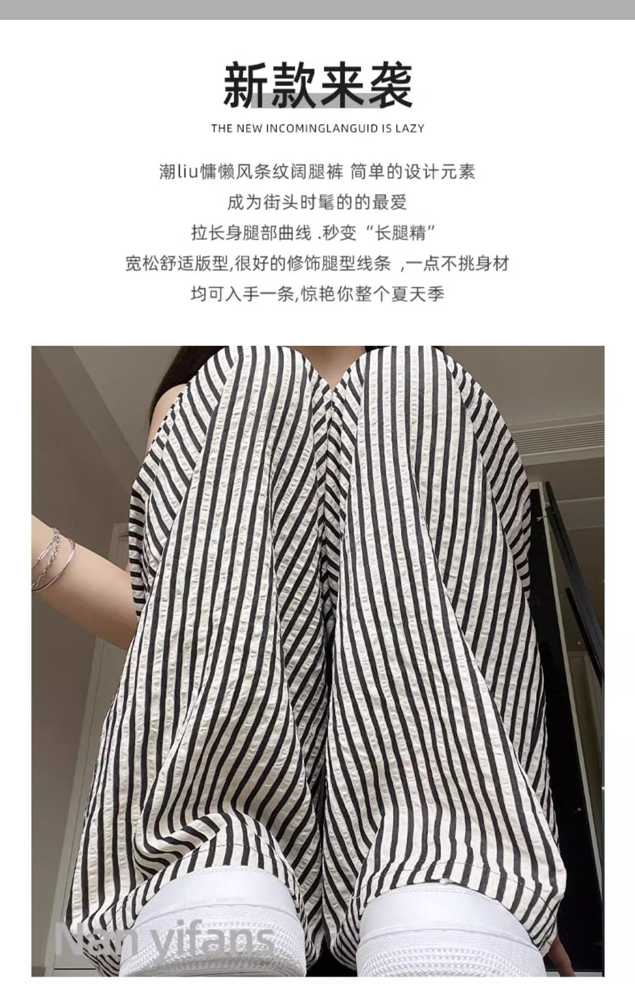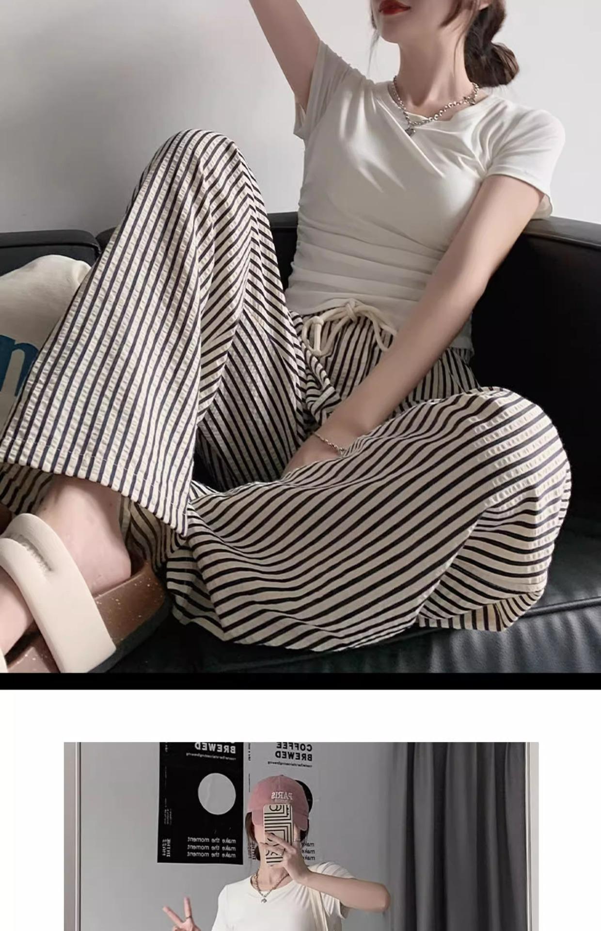 Pantalones casuales ajustados y pequeños para caminar, 145, nuevos pantalones anchos a rayas de cintura alta para mujer, verano 150, holgados y perezosos