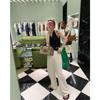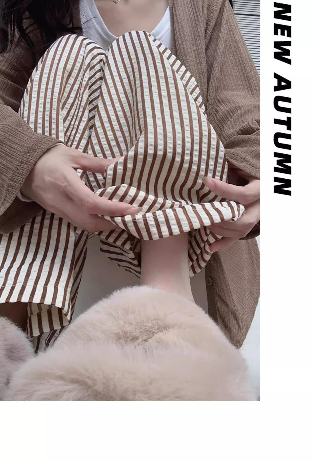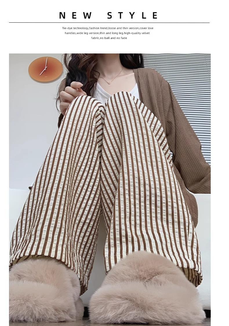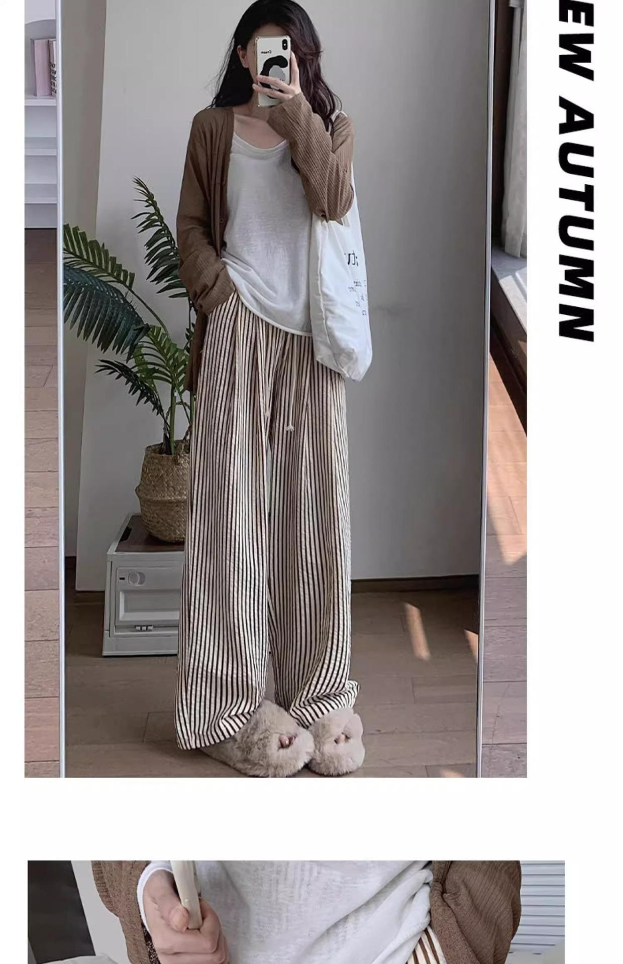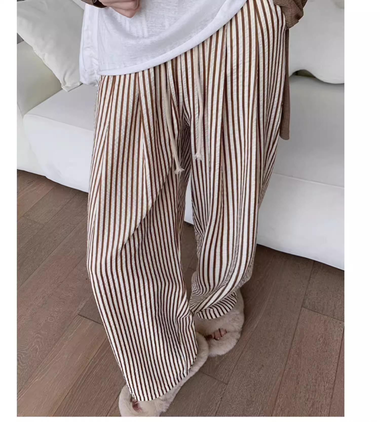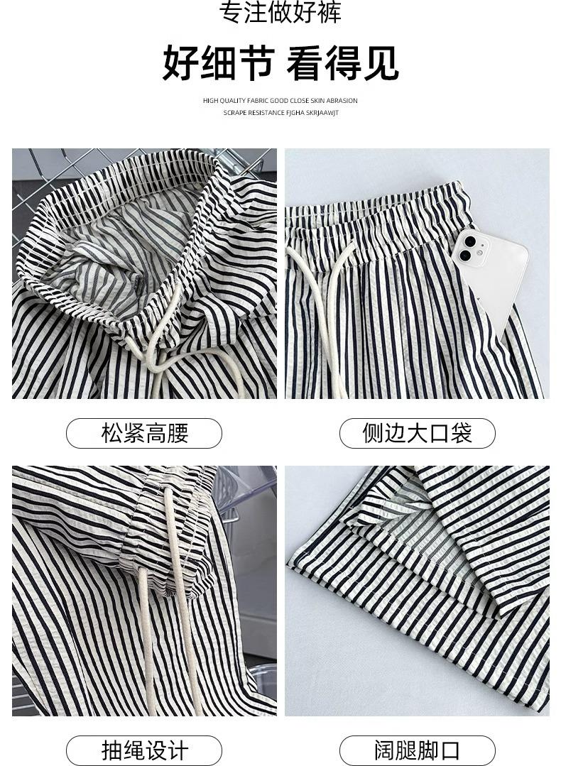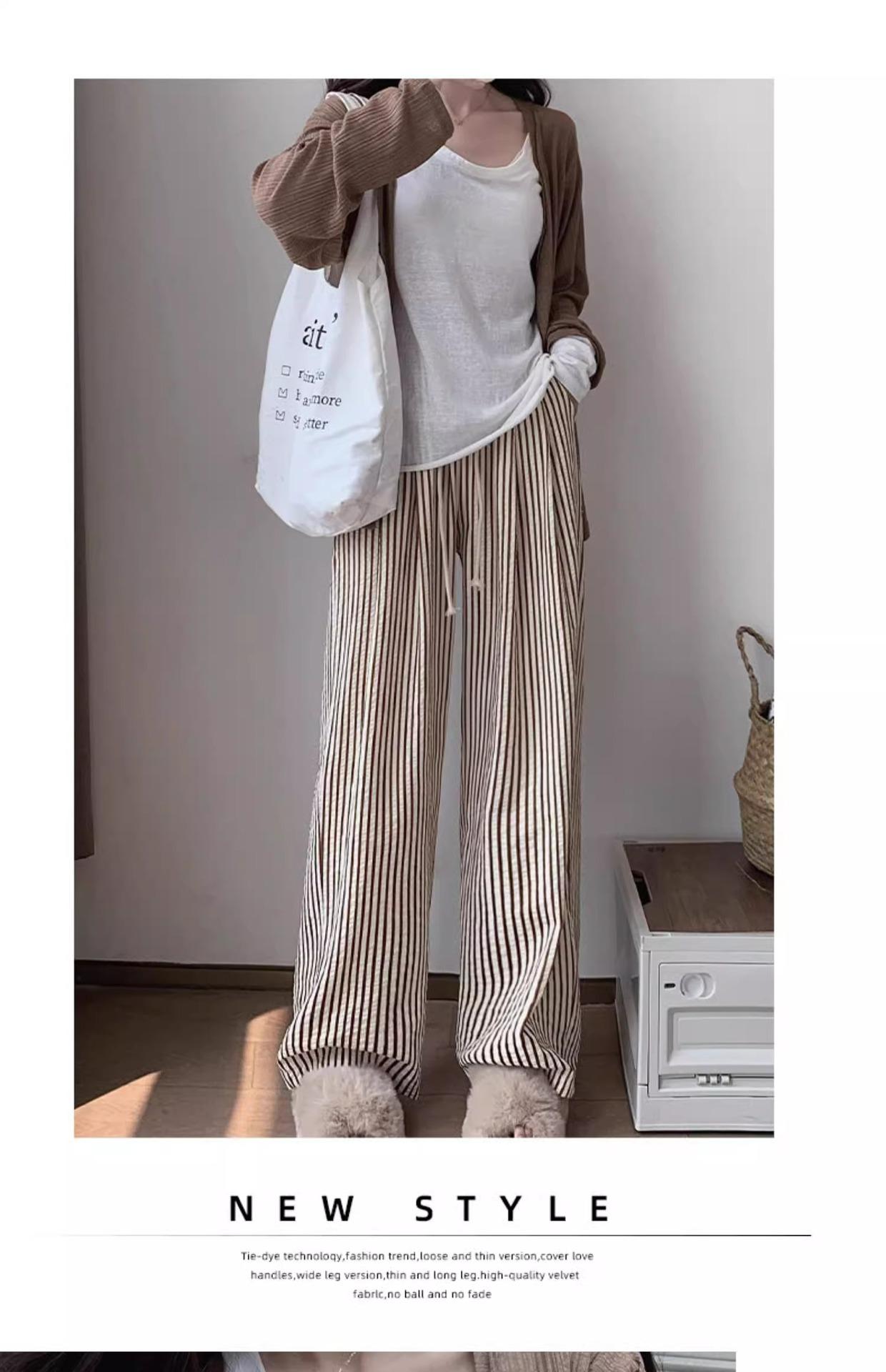 Pantalones casuales ajustados y pequeños para caminar, 145, nuevos pantalones anchos a rayas de cintura alta para mujer, verano 150, holgados y perezosos
