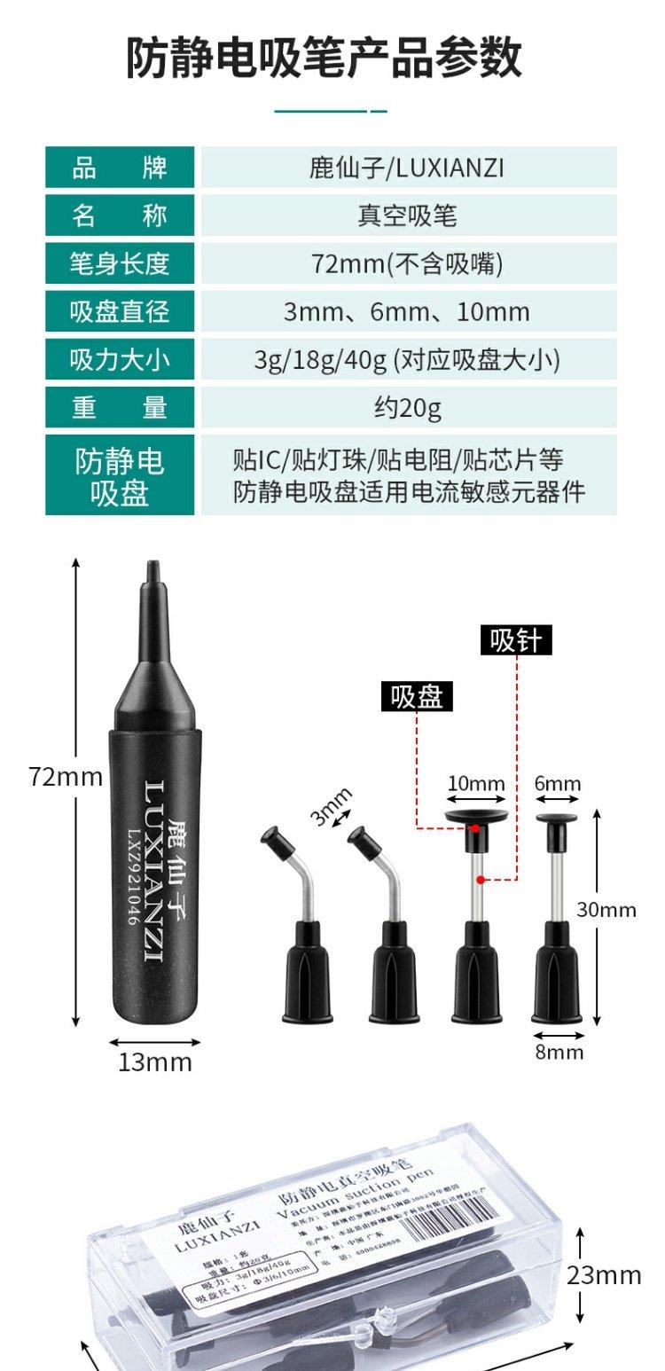 Bolígrafo de succión al vacío manual 5IJO, parche IC, ventosa antiestática, extractor de chip BGA, bolígrafo de succión, herramienta de soldadura