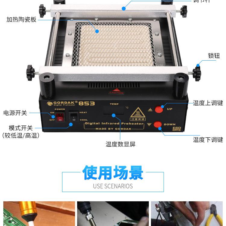 Mesa calefactora 5IJO 853 para soldar, precalentamiento y retrabajo de alta temperatura, pistola de aire caliente para reparación de BGA, 936 Triple