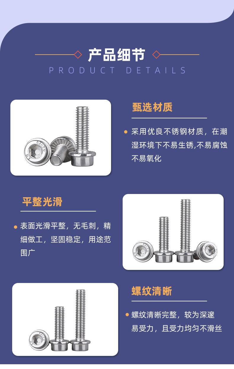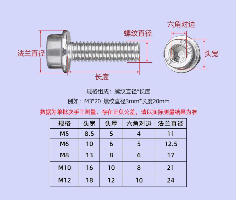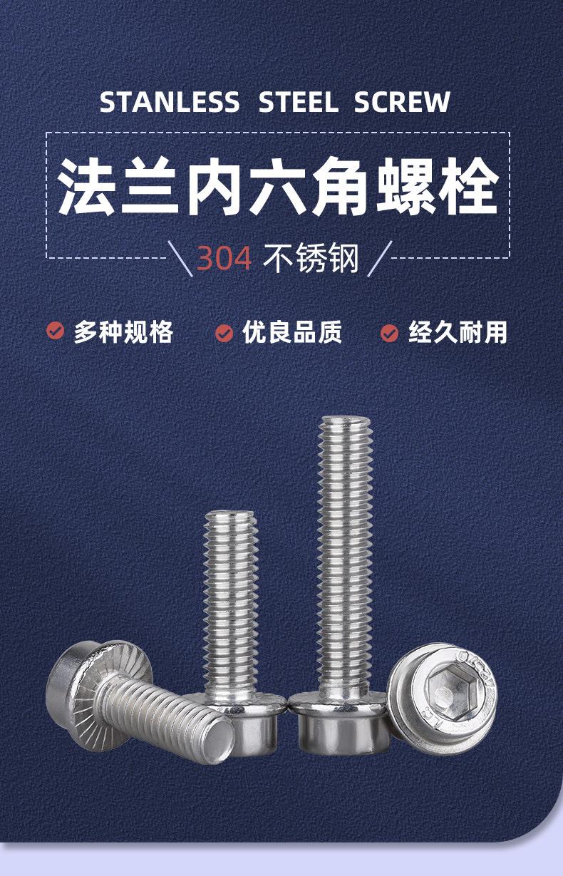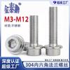 Tornillo de cabeza hexagonal con brida de acero inoxidable 304, dentado, antideslizante, con cabeza cilíndrica, M6 M8 M10 mm