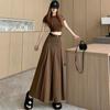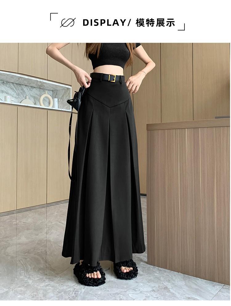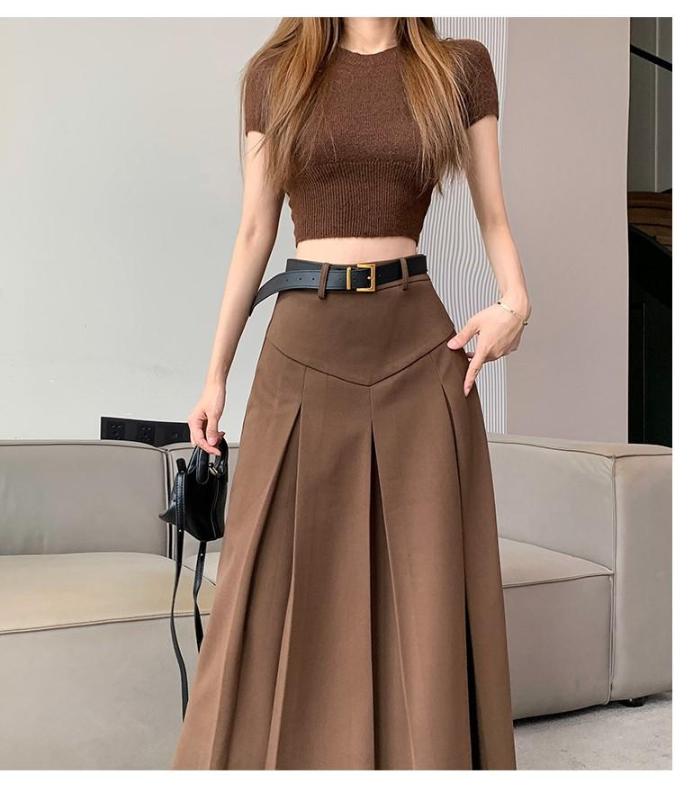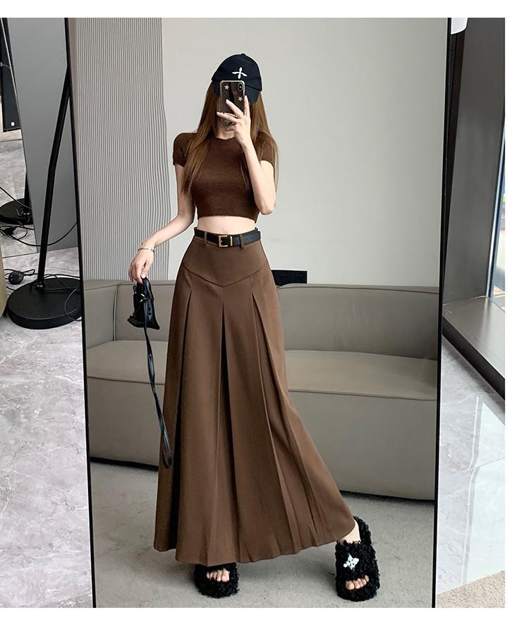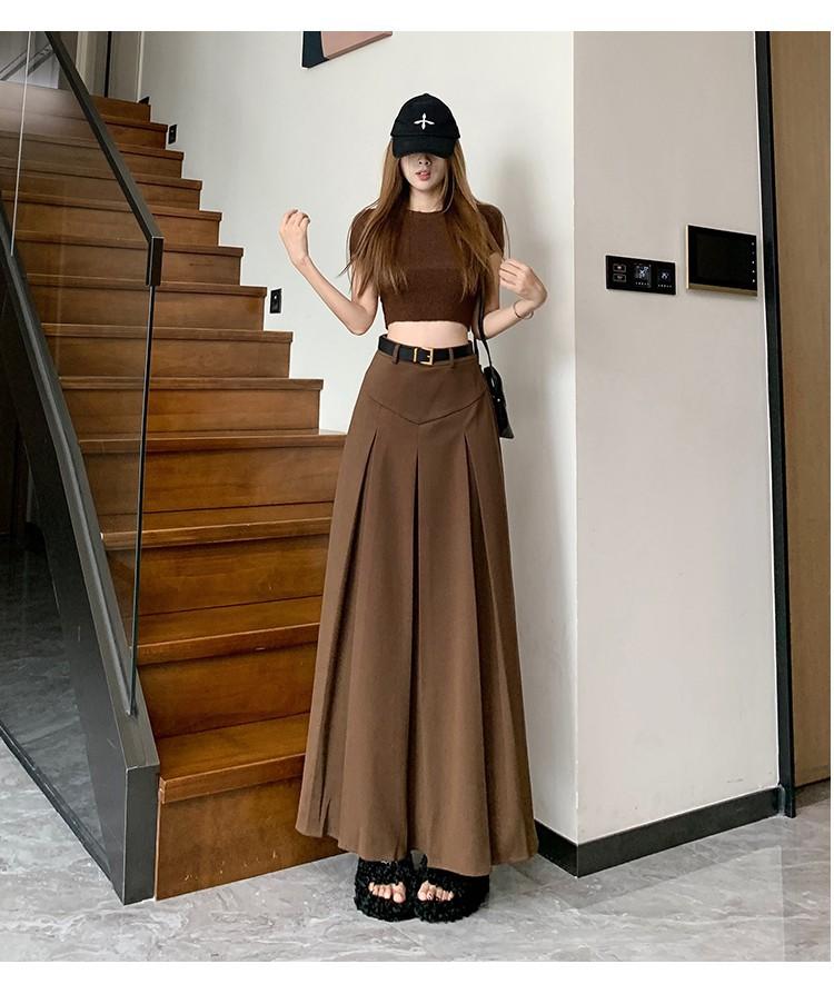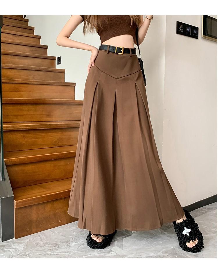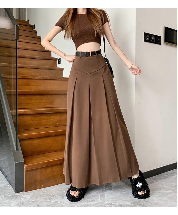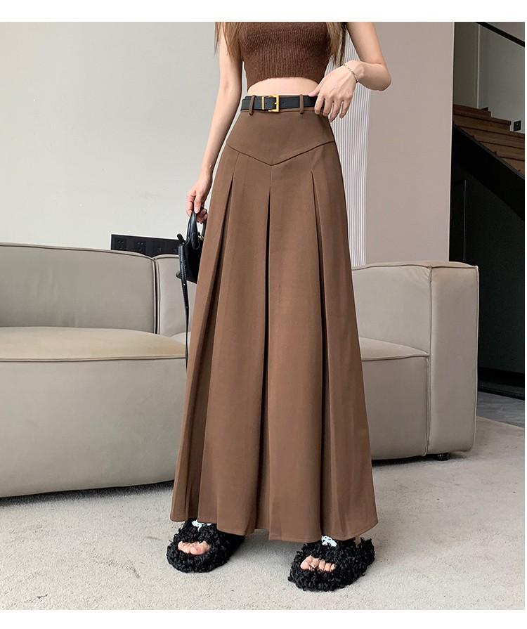 Falda retro francesa de lana para mujer 2023 otoño e invierno Nueva diseño adelgazante de cintura alta drapeada plisada falda línea A