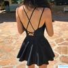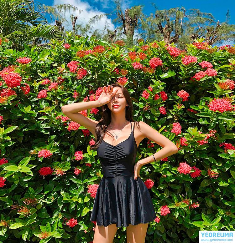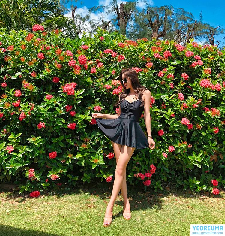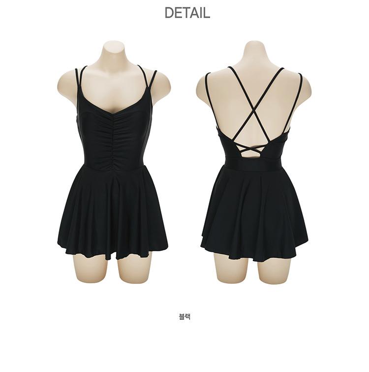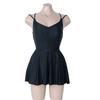 Traje de baño nuevo 2020 para mujer, falda de una pieza, conservador, sexy, cubre el vientre, adelgazante, pecho pequeño realzado, con soporte de acero, espalda cruzada descubierta, negro