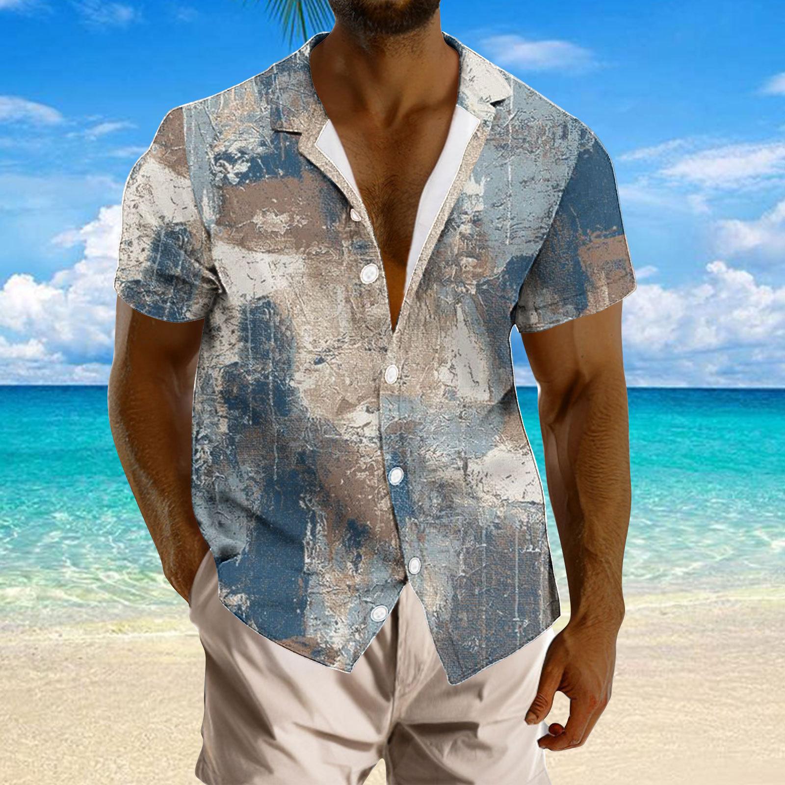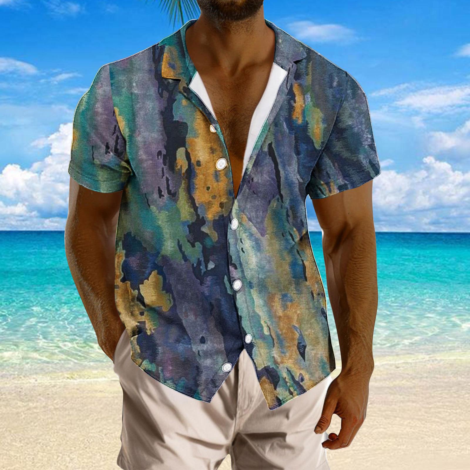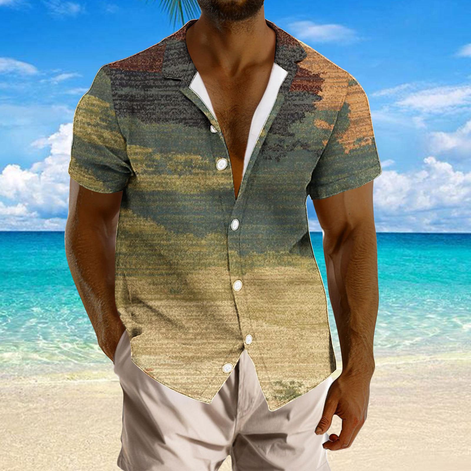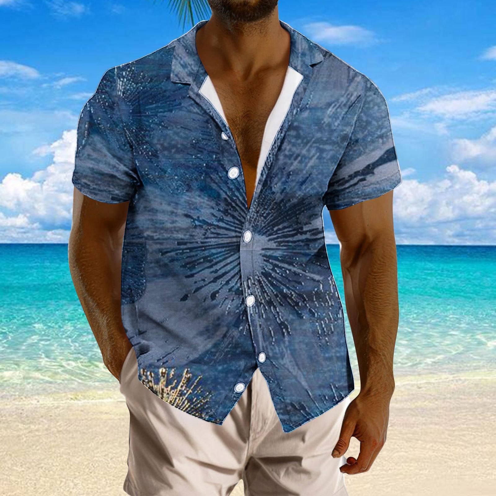 Camisa de solapa con estampado digital 3D de manga corta para hombre, nueva camisa de solapa con estampado digital 3D de Amazon, de talla grande, para comercio exterior transfronterizo