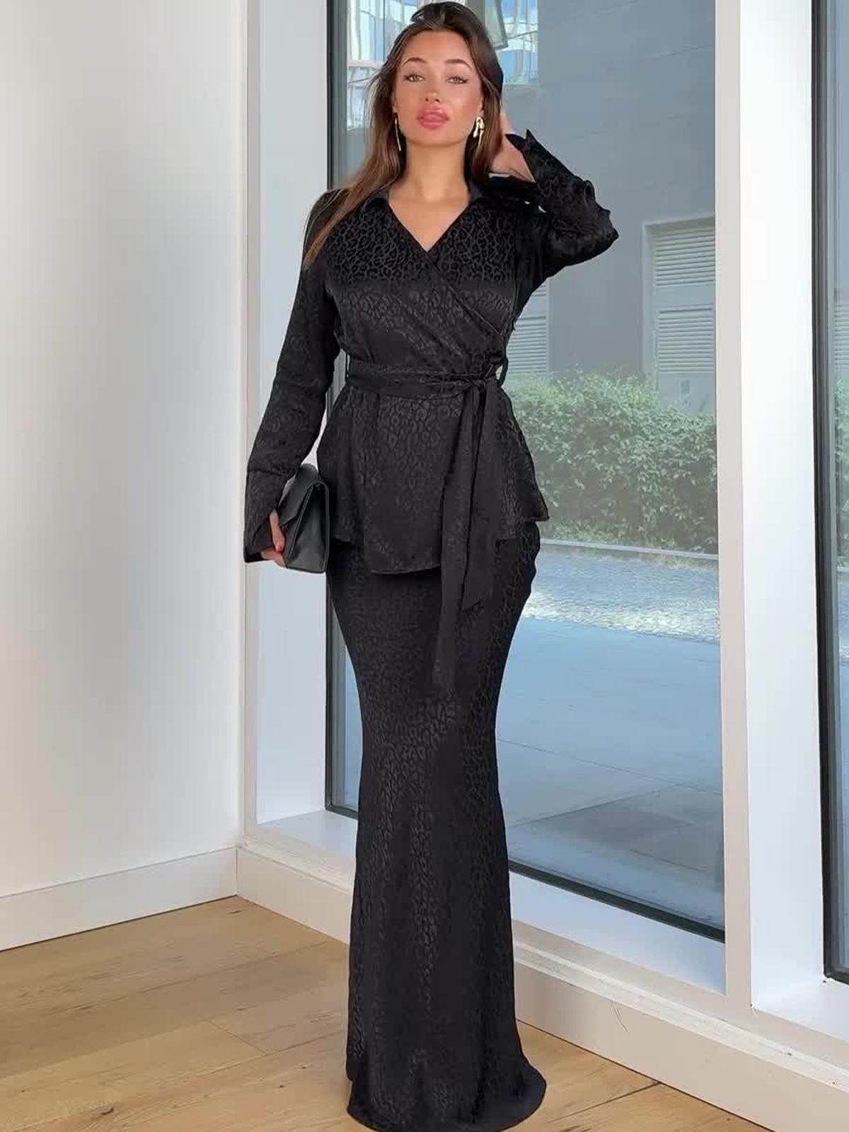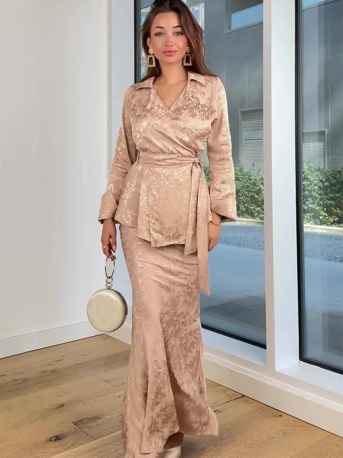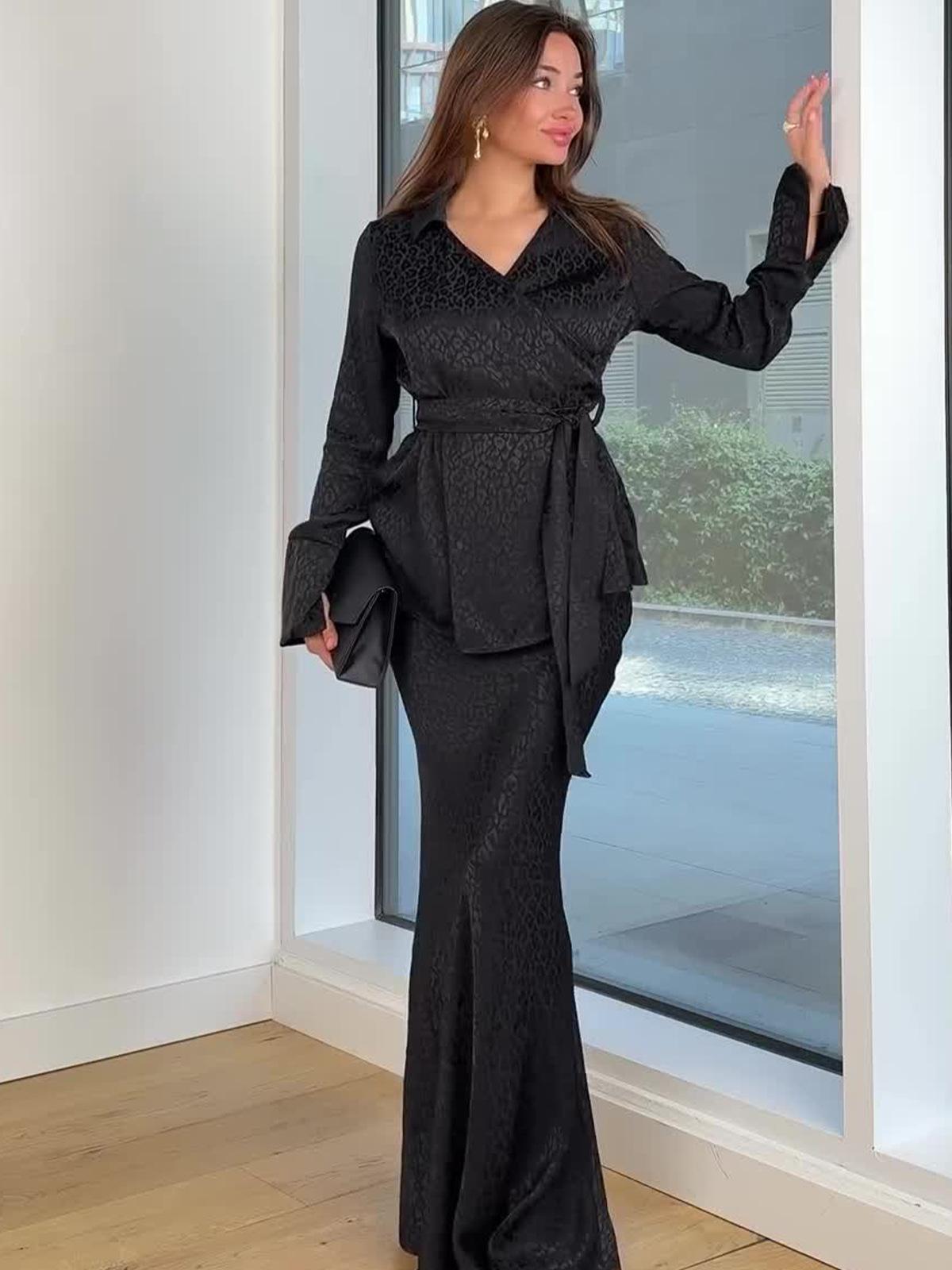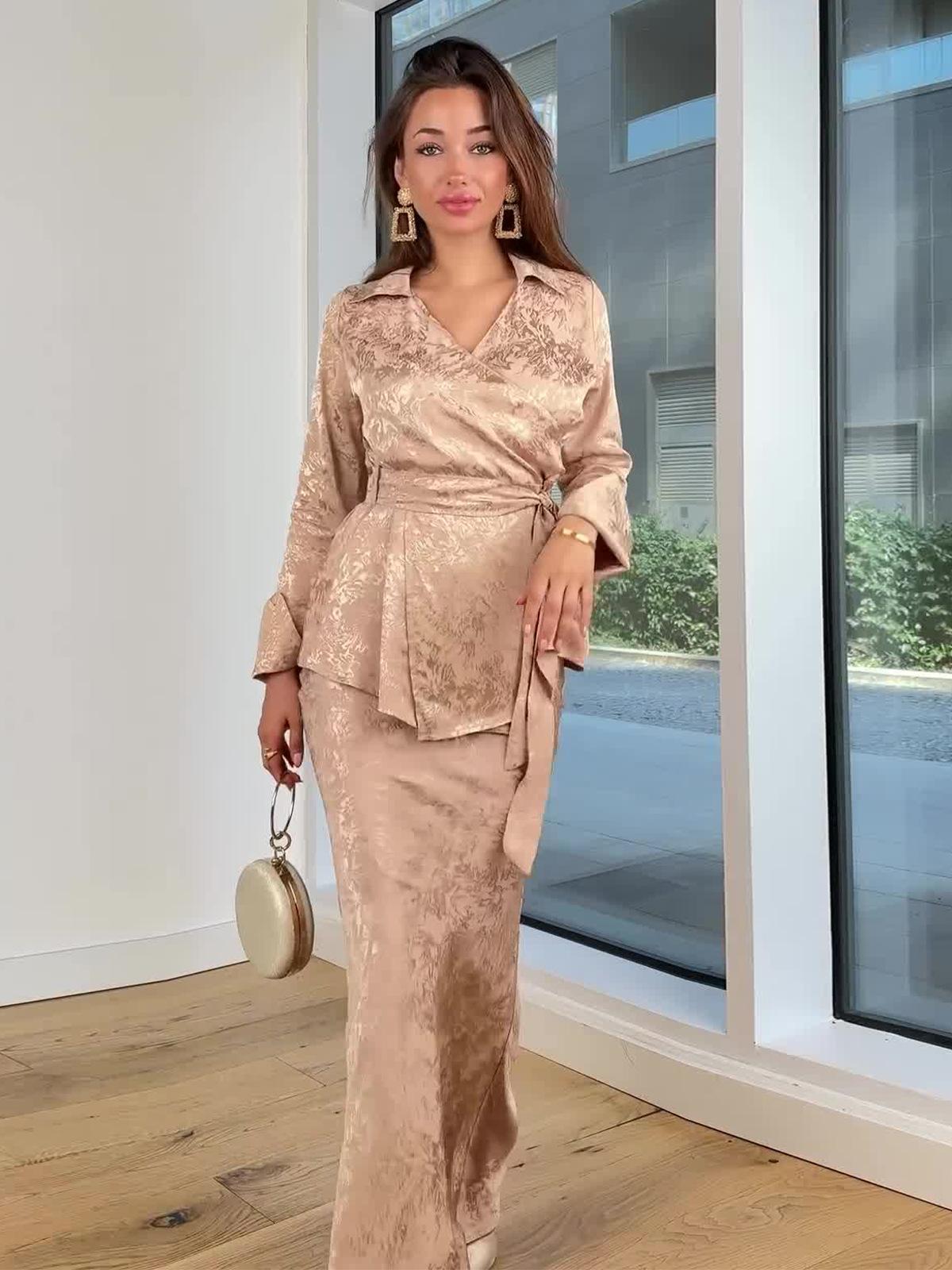 Traje de dos piezas para mujer, con camisa de manga larga y cintura ajustada y falda de encaje, Amazon Europa y América, 2024