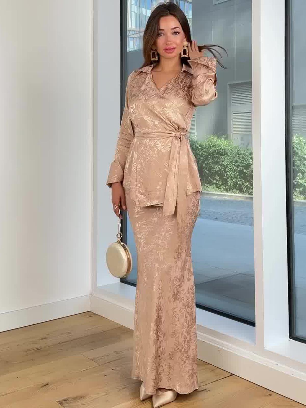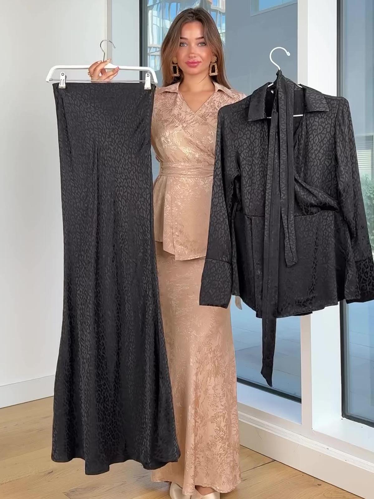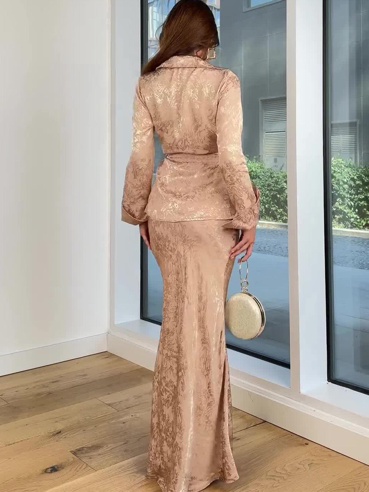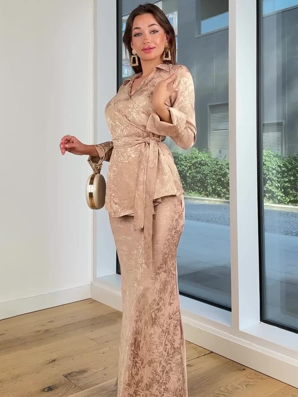 Traje de dos piezas para mujer, con camisa de manga larga y cintura ajustada y falda de encaje, Amazon Europa y América, 2024