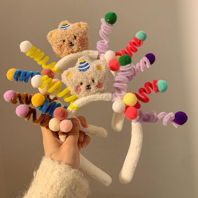 Lindo Oso Twist Bar Diadema para el Cabello para Mujer Otoño e Invierno Peludo Lavado de Cara Diadema Divertido Foto Fiesta Accesorios para el Cabello Sombrerería Cabello