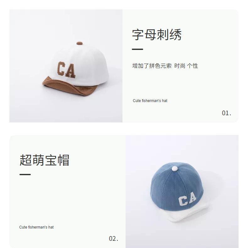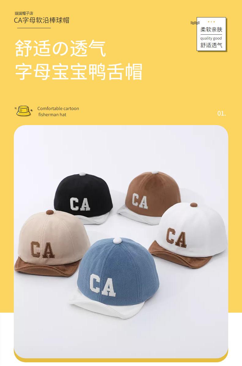 Gorra de béisbol para niño estilo coreano y japonés con letras CA para bebé, primavera y otoño, nueva gorra de béisbol para niña con borde suave.