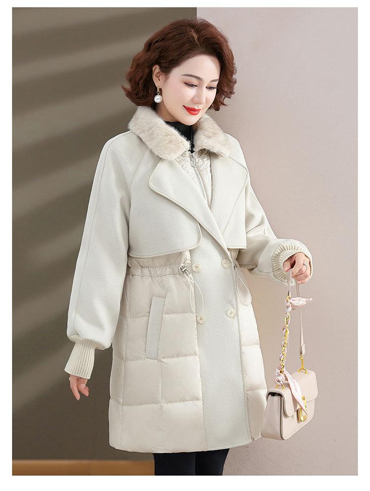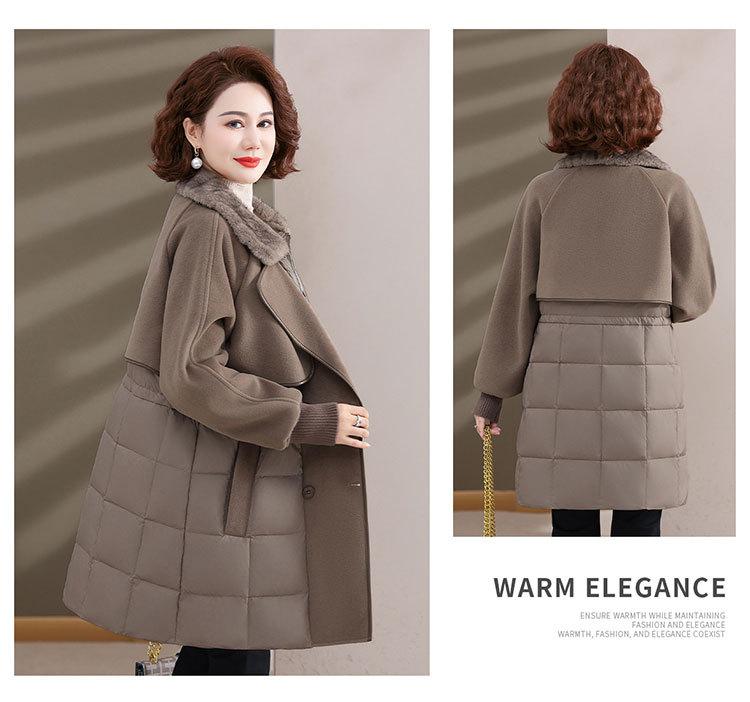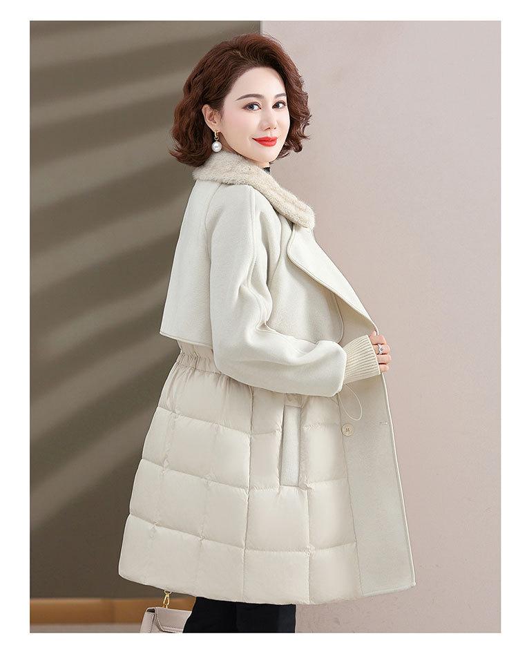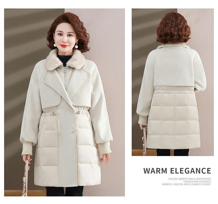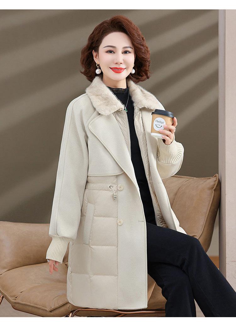 Chaqueta de plumón de pato blanco de estilo occidental para mujer de mediana edad y mayor, de invierno, de alta gama y longitud media, para otoño e invierno.