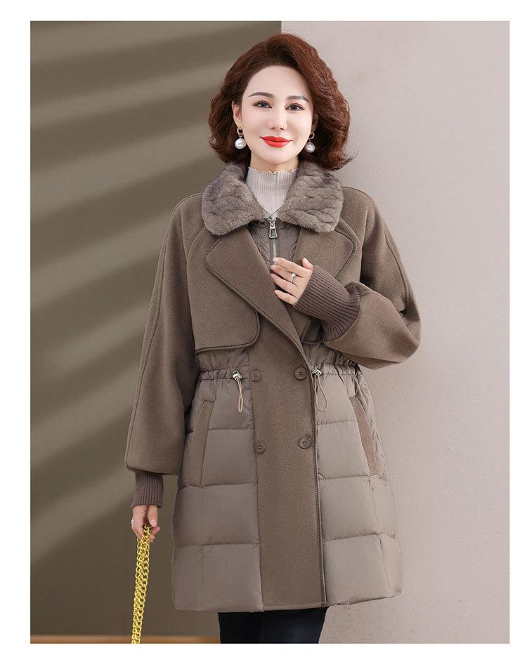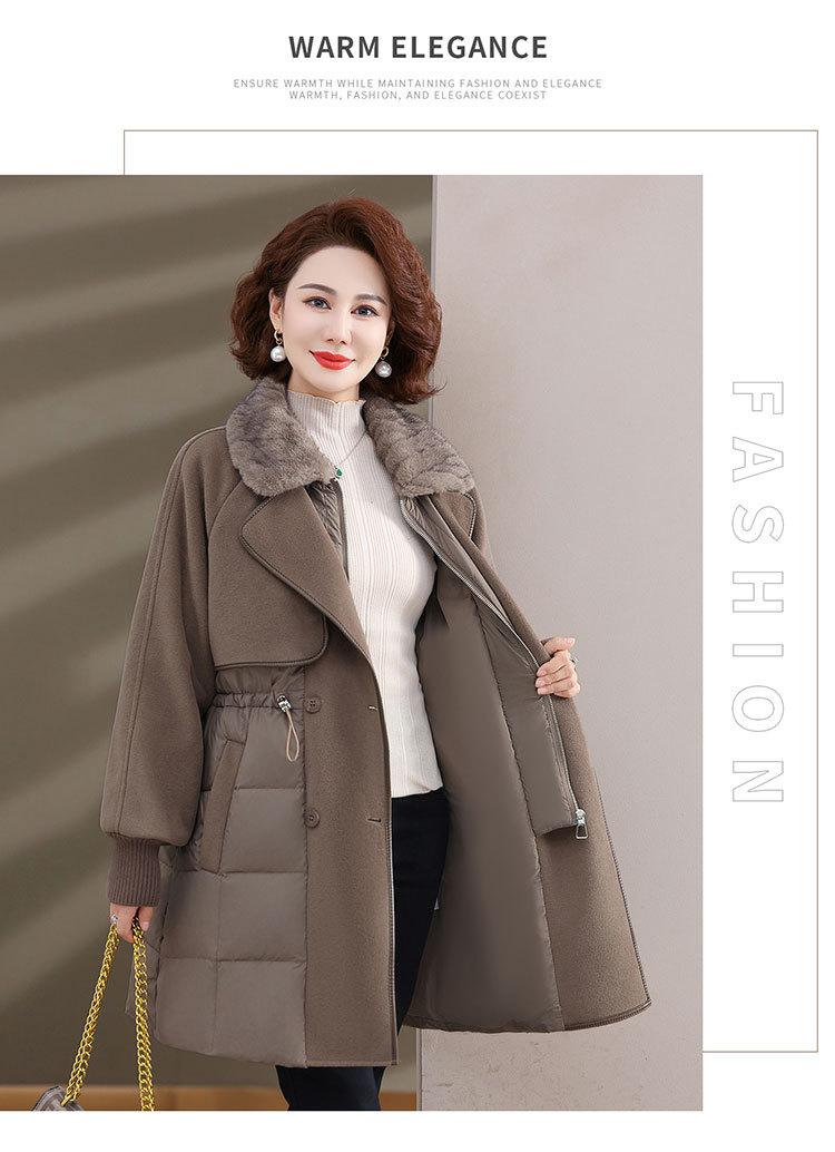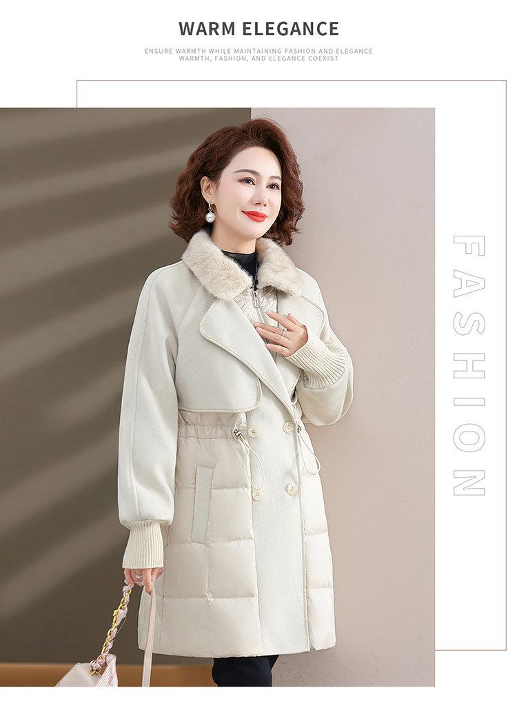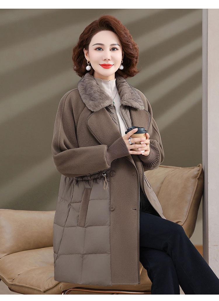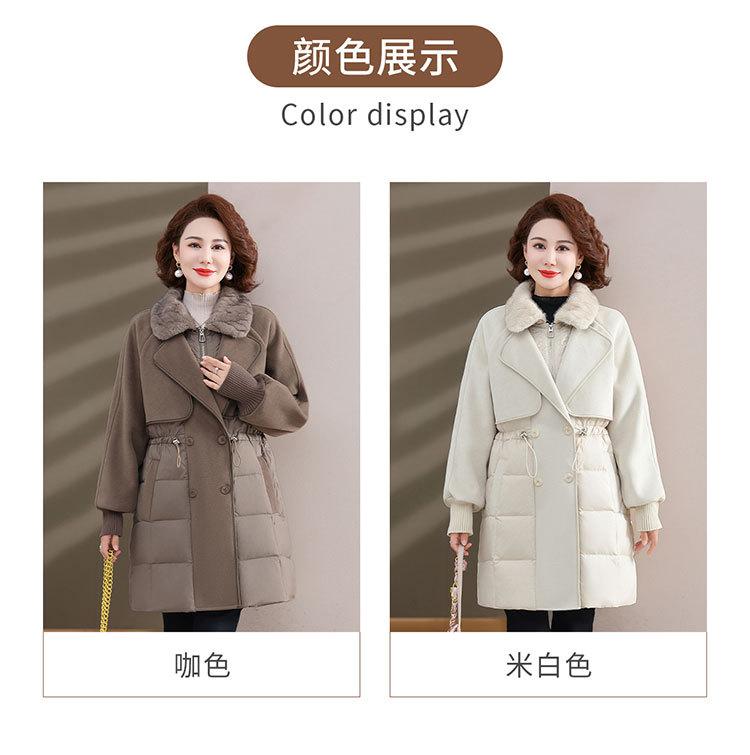 Chaqueta de plumón de pato blanco de estilo occidental para mujer de mediana edad y mayor, de invierno, de alta gama y longitud media, para otoño e invierno.
