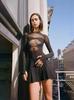 Mono con perspectiva de cuello redondo sexy de color sólido ajustado de manga larga con cuello redondo para mujer transfronterizo de Europa y Estados Unidos 2024