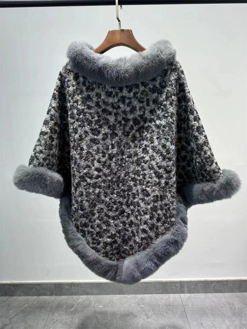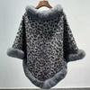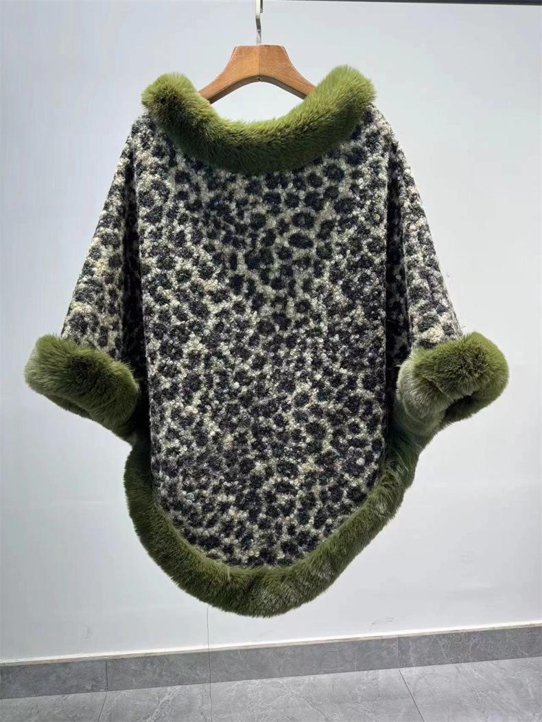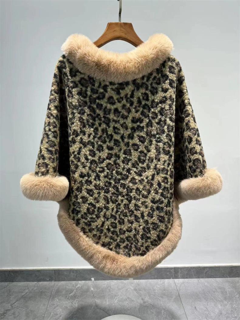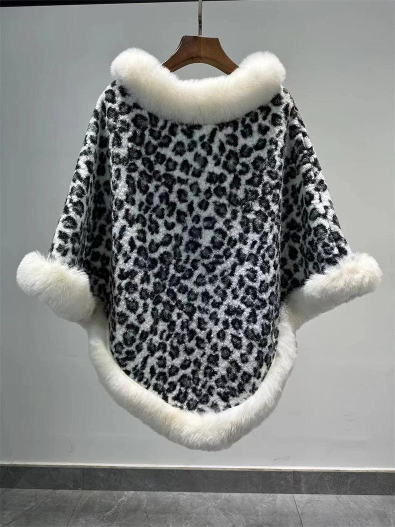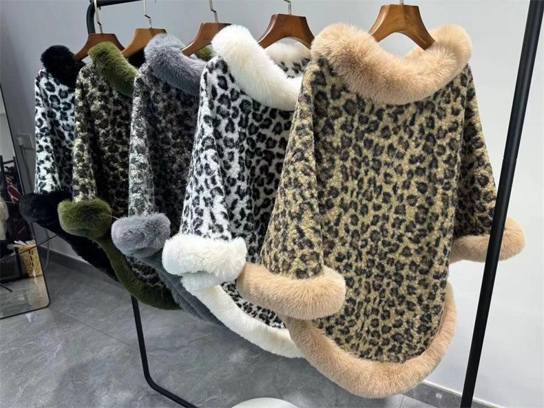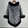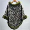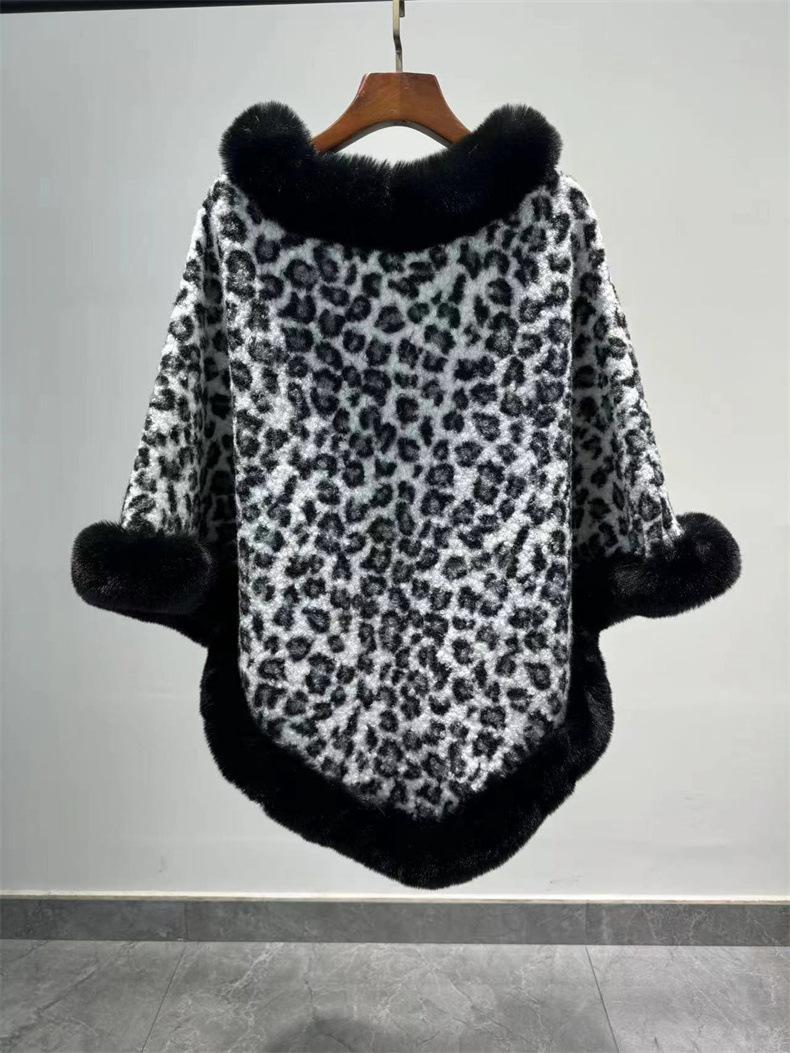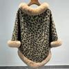 24 otoño nuevo estampado de leopardo cuello de piel sintética capa tipo jersey comercio exterior europeo y americano talla grande chal largo tipo jersey