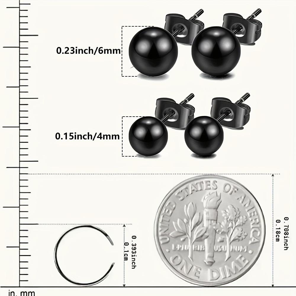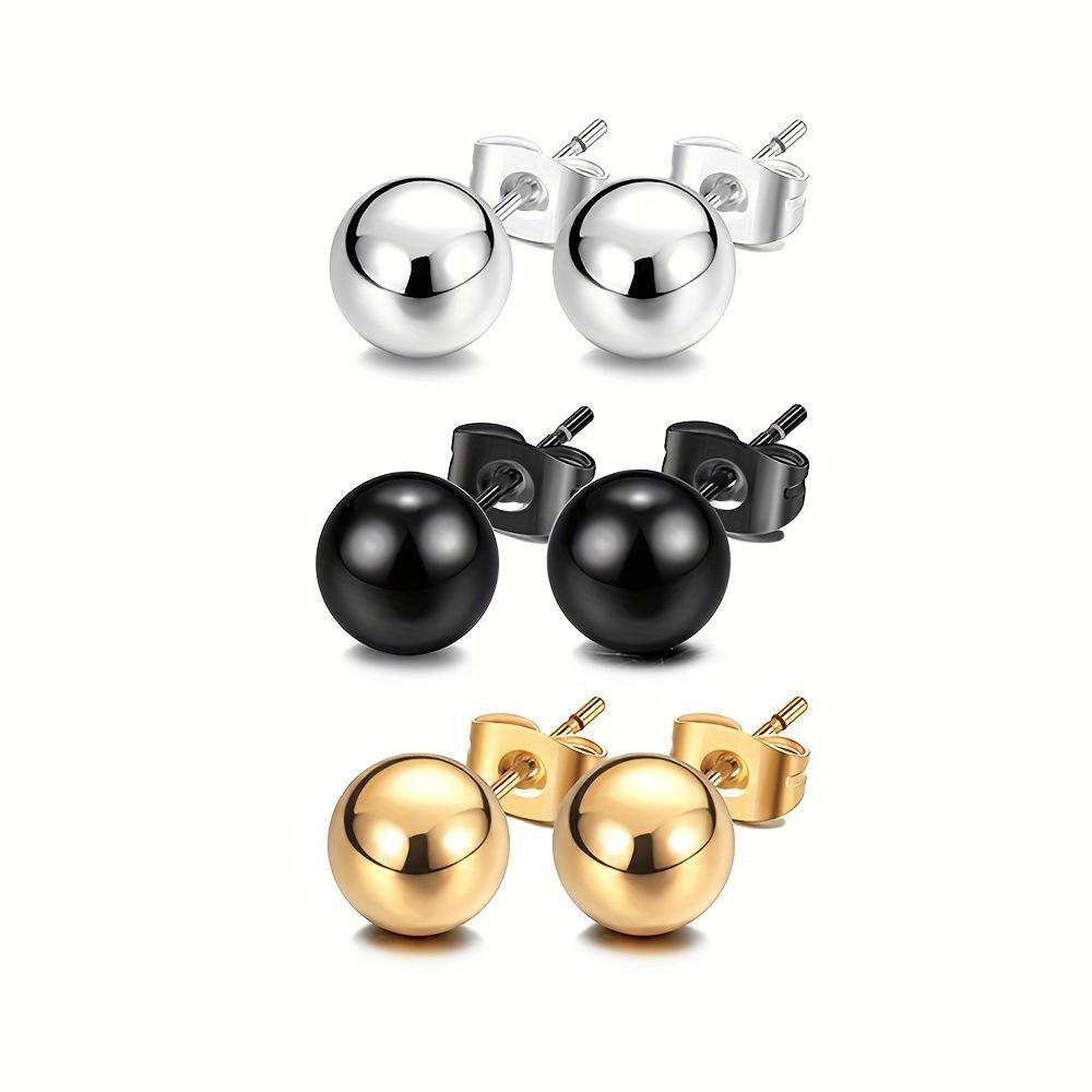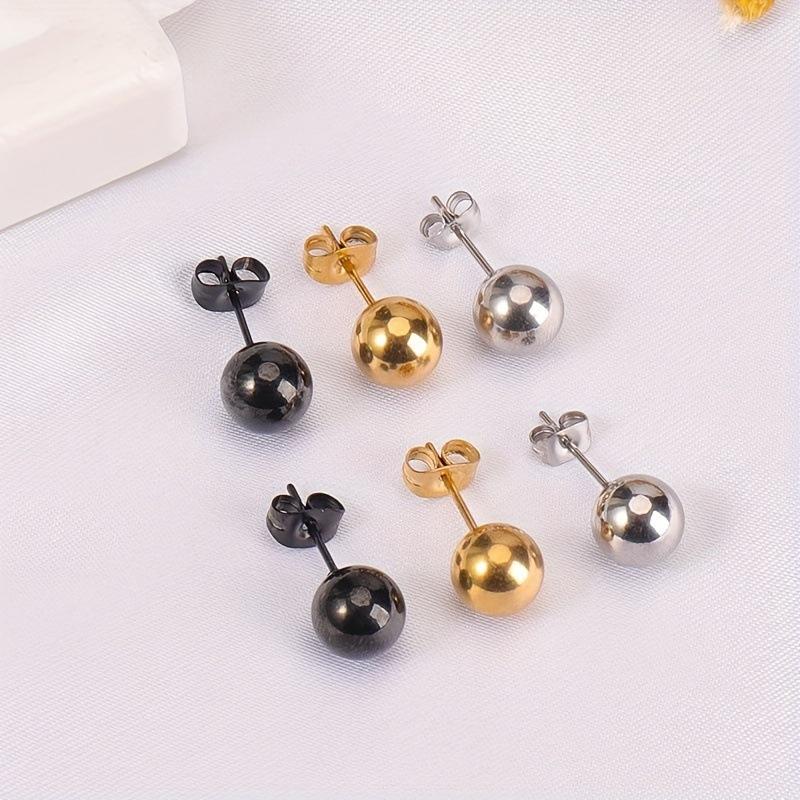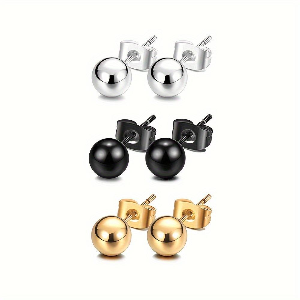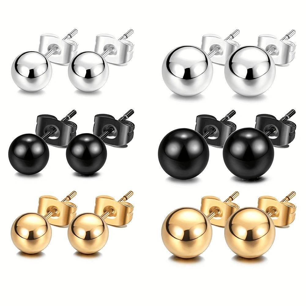 Pendientes de bola de acero inoxidable con cierre de presión, 3/6 pares, en plata neutra, negro y dorado, ideales para la venta en Amazon.