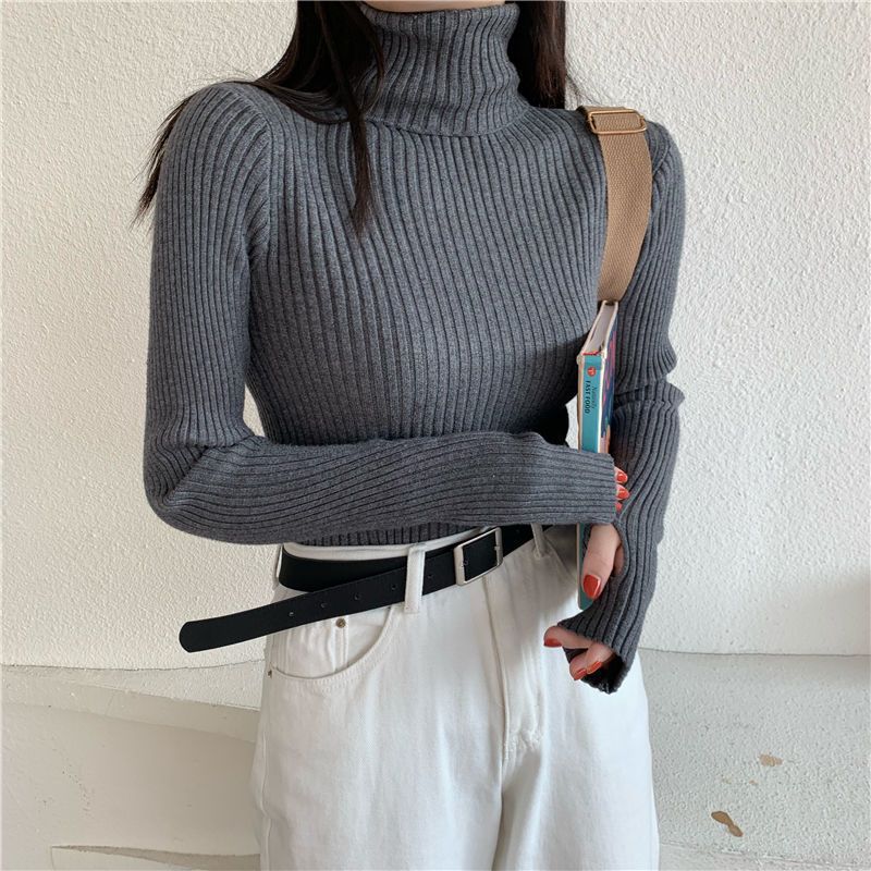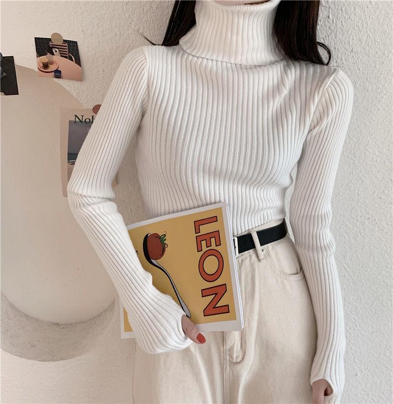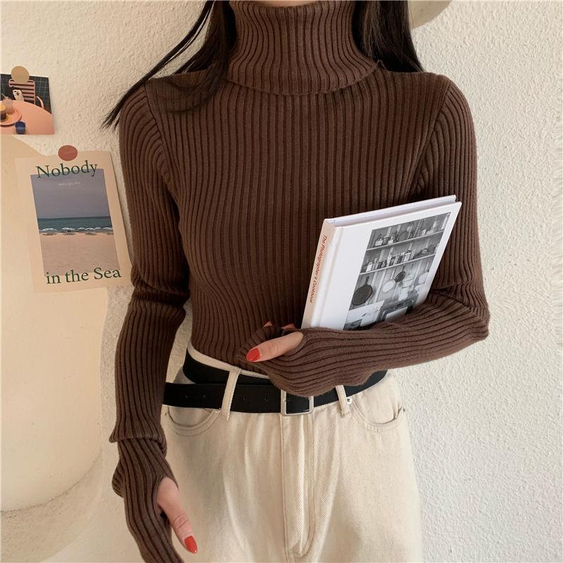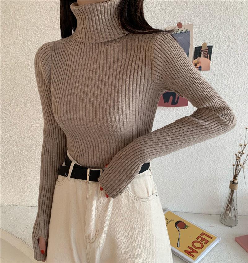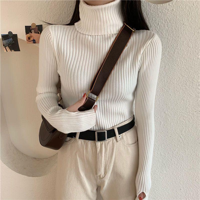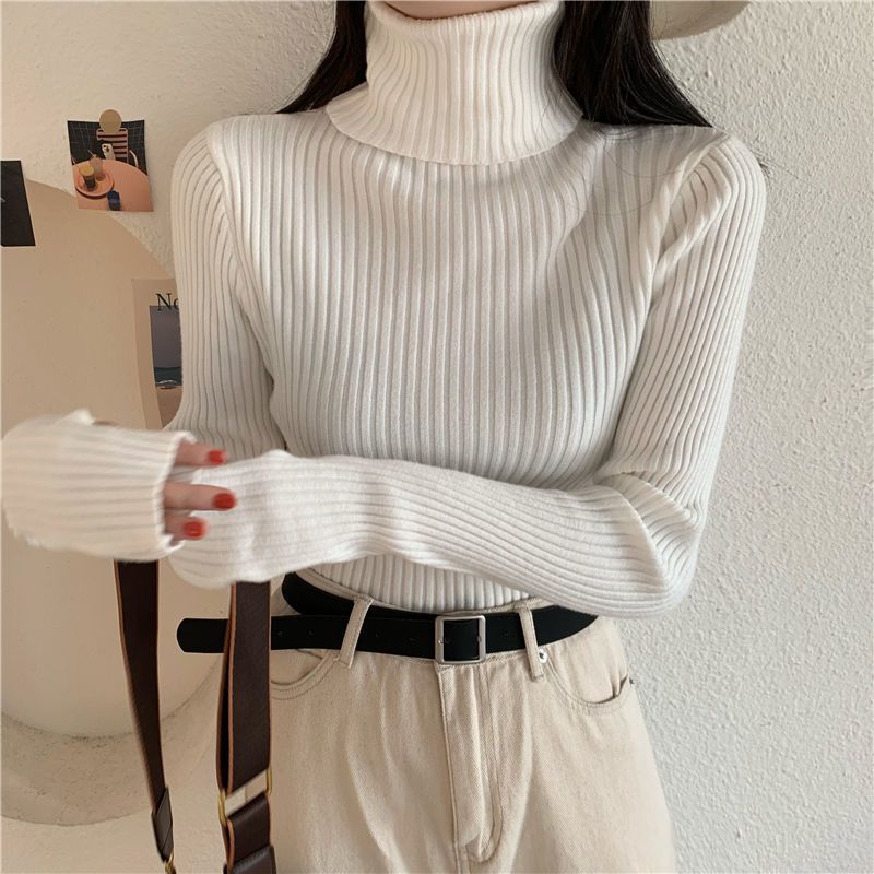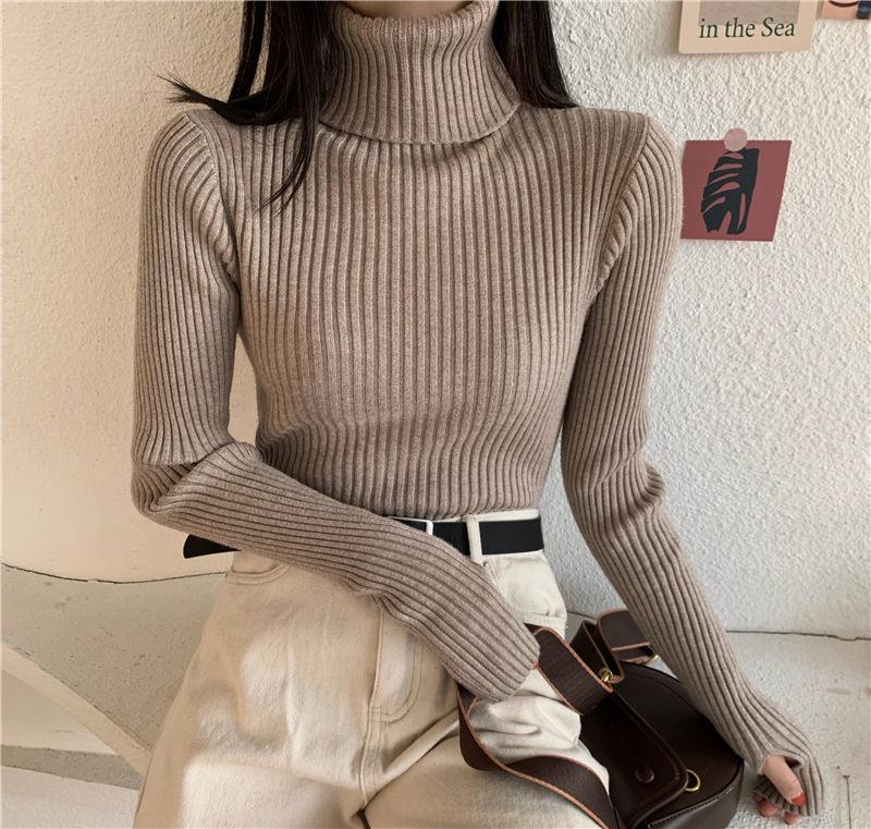 Suéter de estilo coreano para mujer, suéter ajustado de otoño e invierno, suéter suave de manga larga, camisa de fondo de estilo occidental de moda