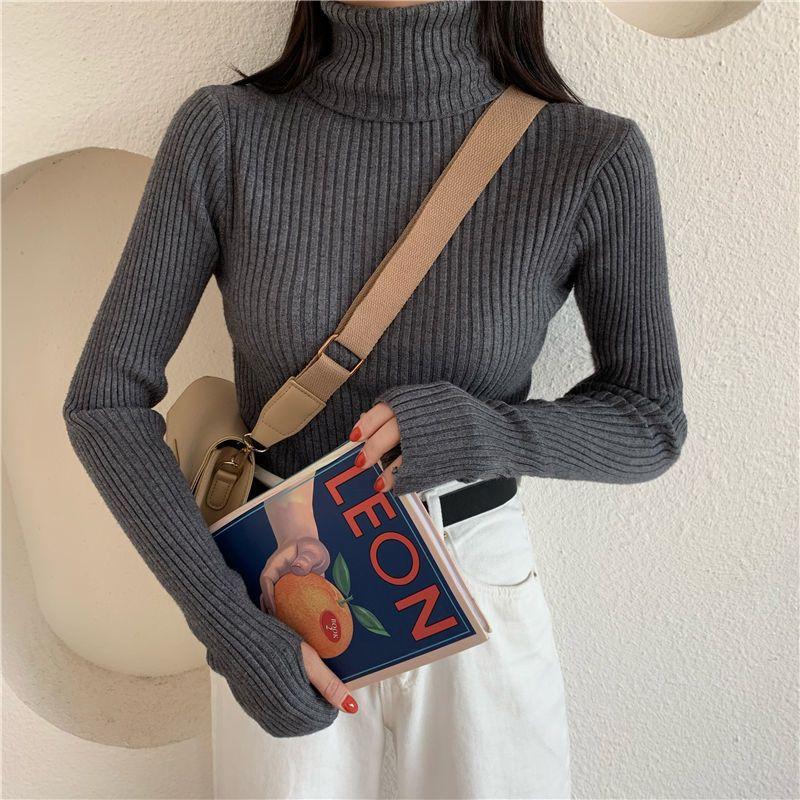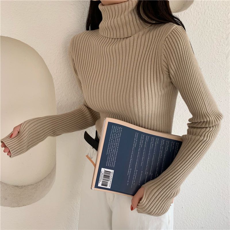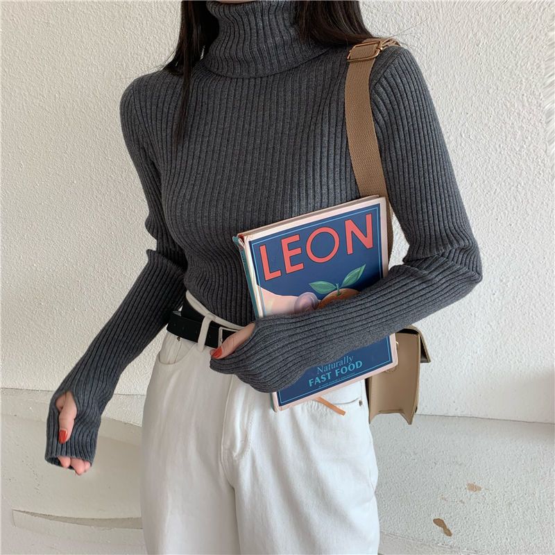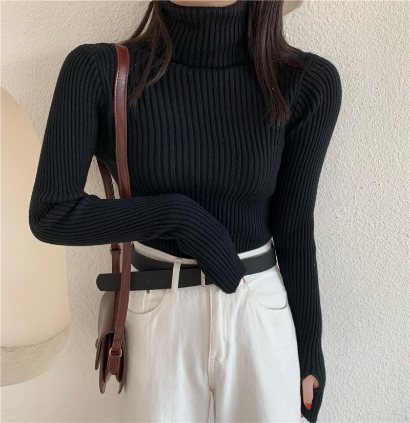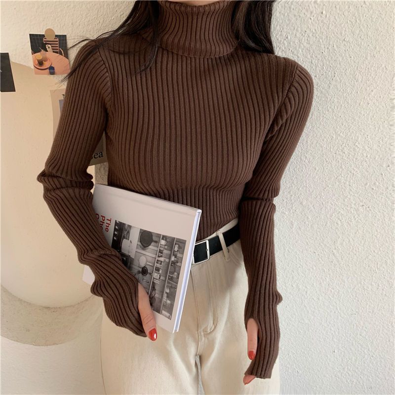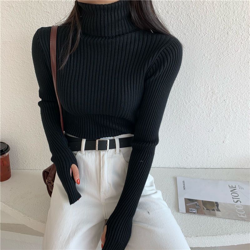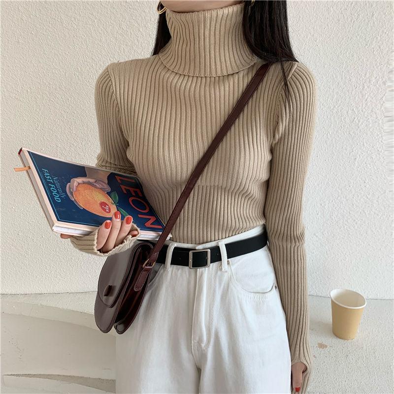 Suéter de estilo coreano para mujer, suéter ajustado de otoño e invierno, suéter suave de manga larga, camisa de fondo de estilo occidental de moda