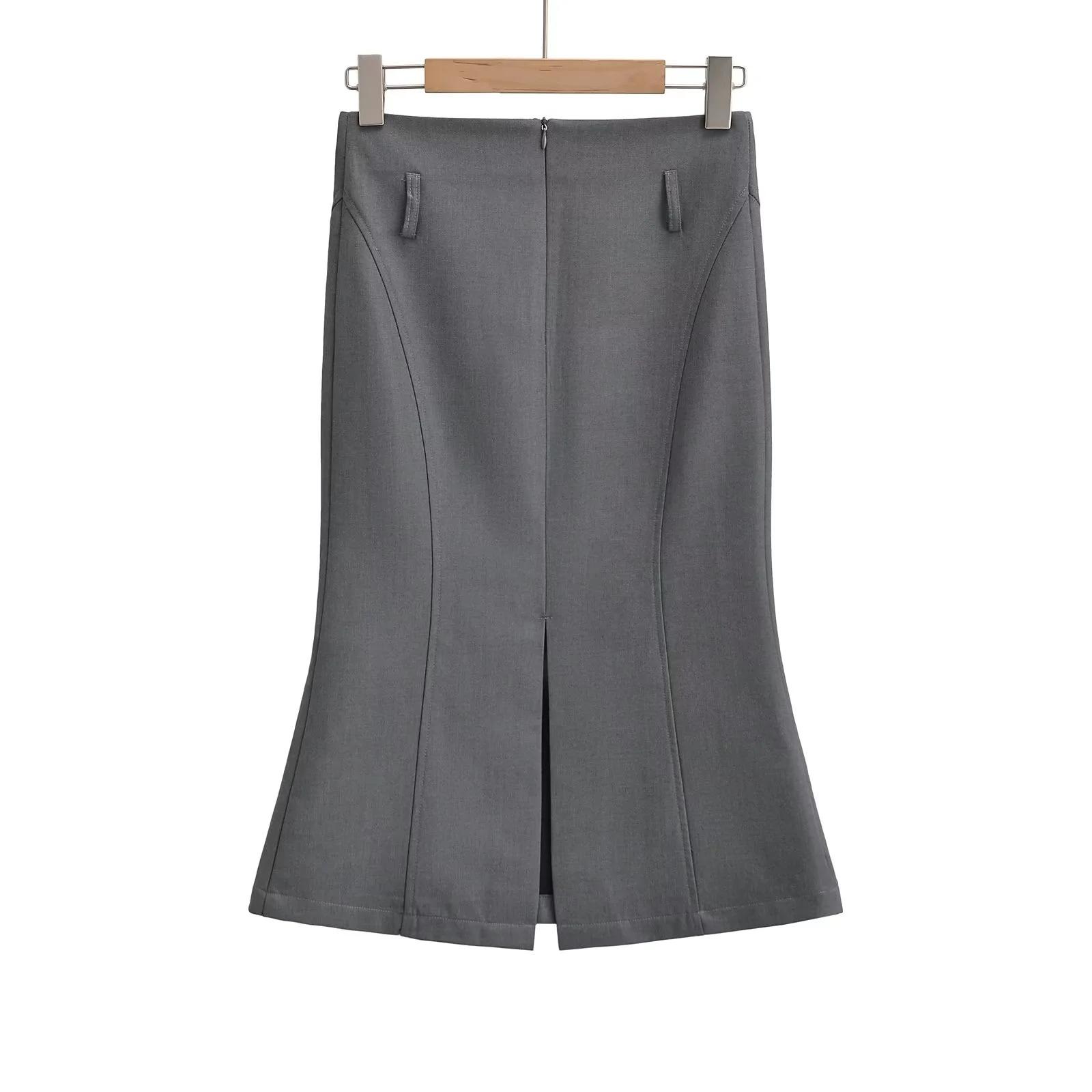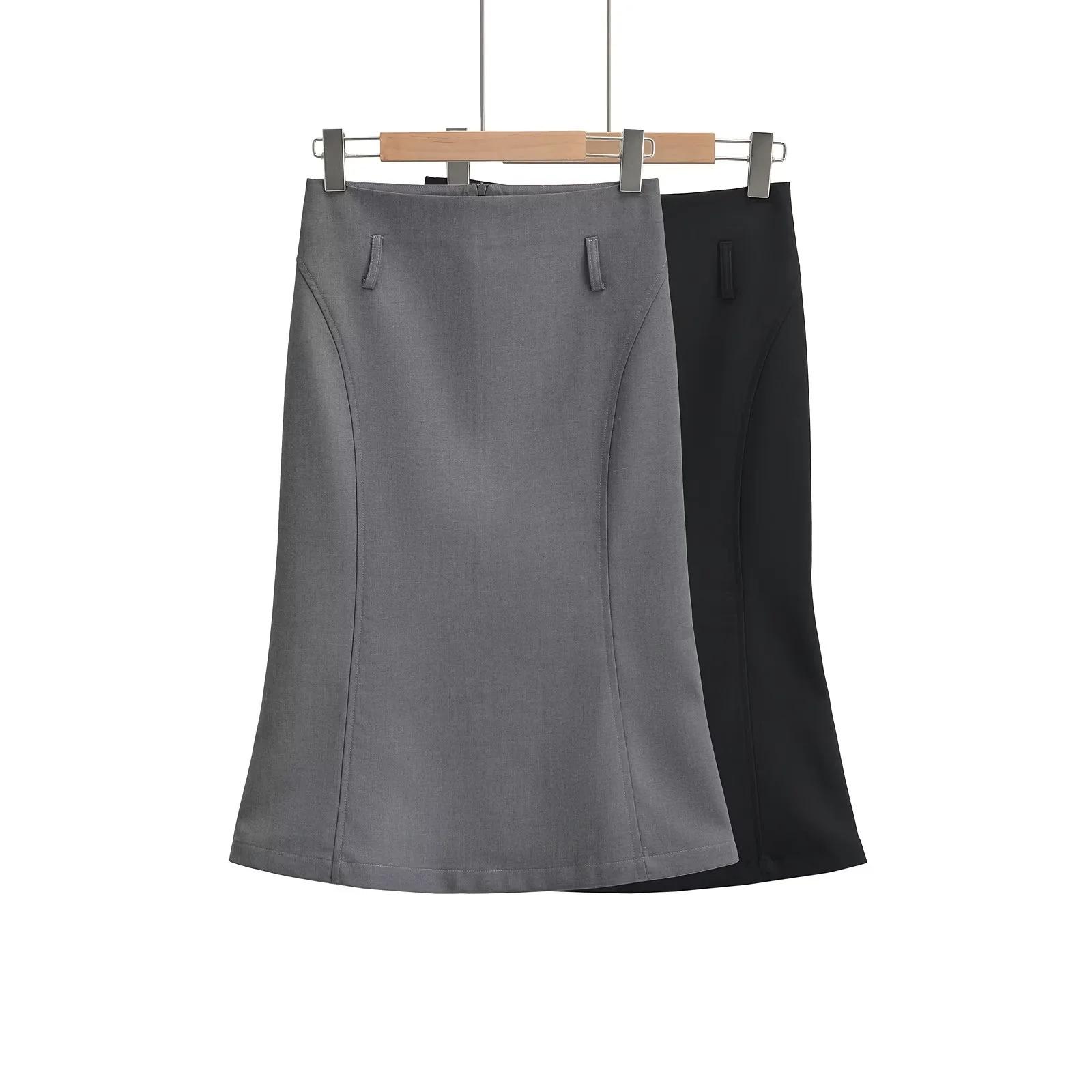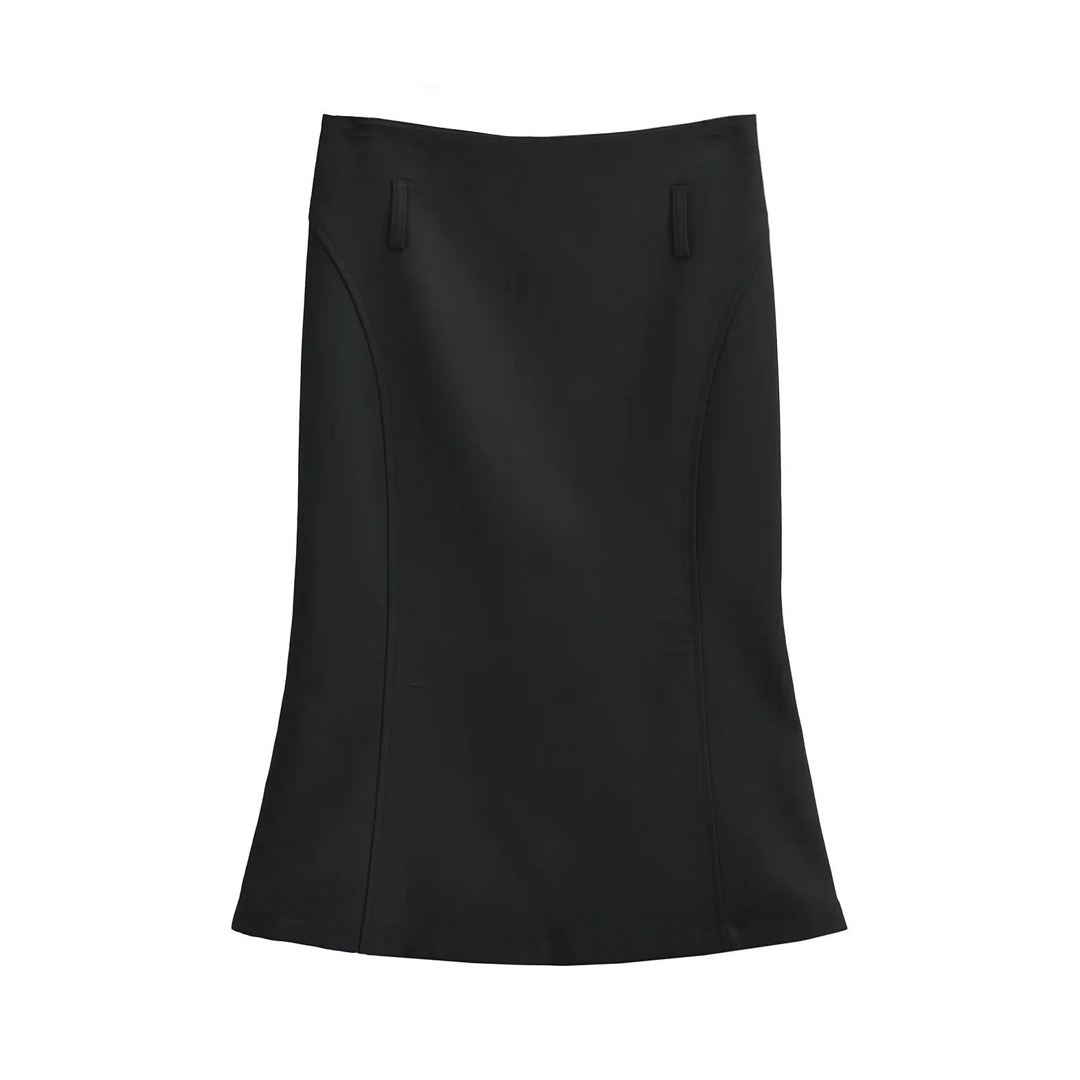 Falda de cola de pez con abertura en la espalda de traje negro para mujer primavera y otoño 2024 Nueva falda tubo de cintura alta con vuelo en forma de A