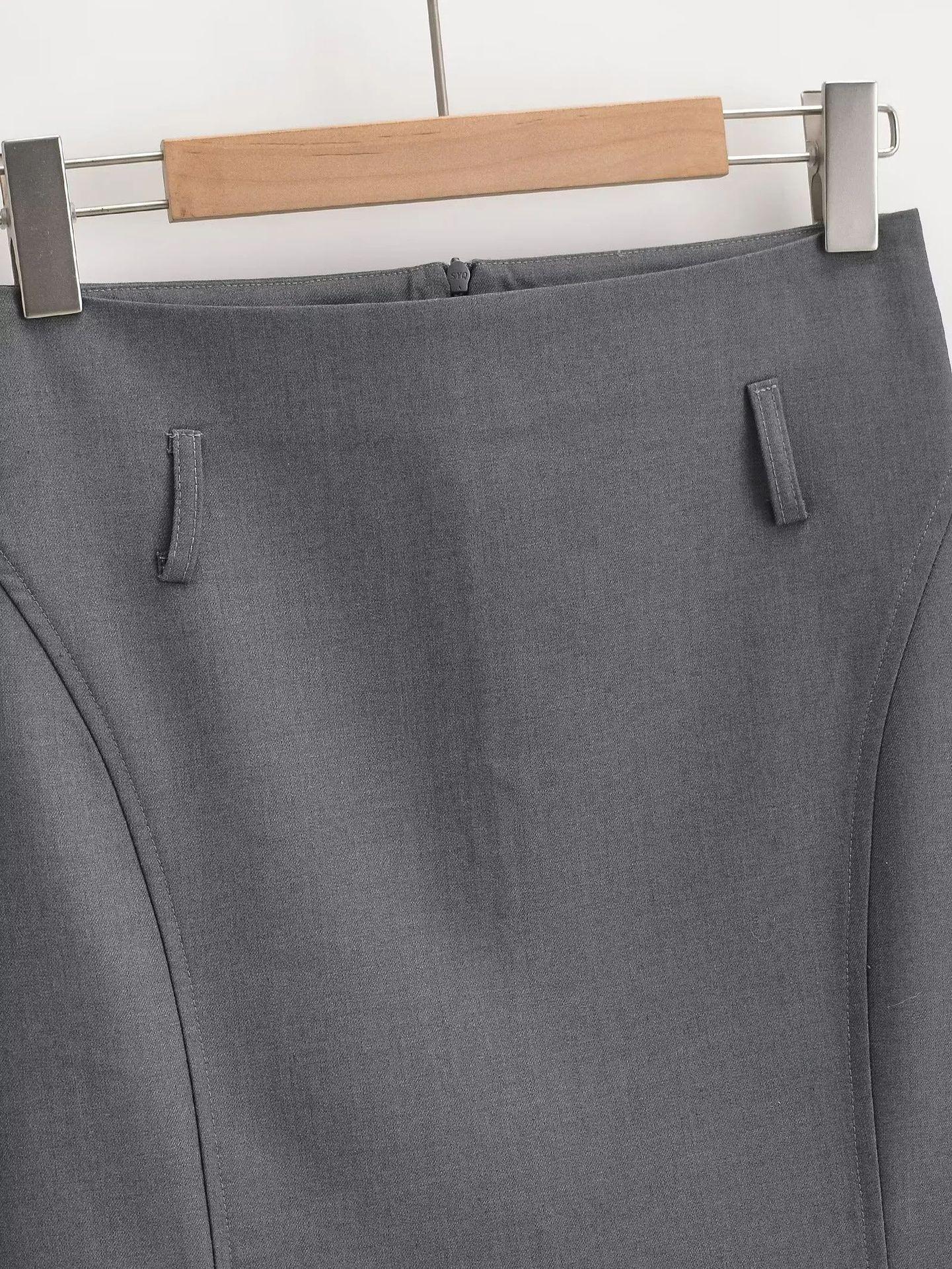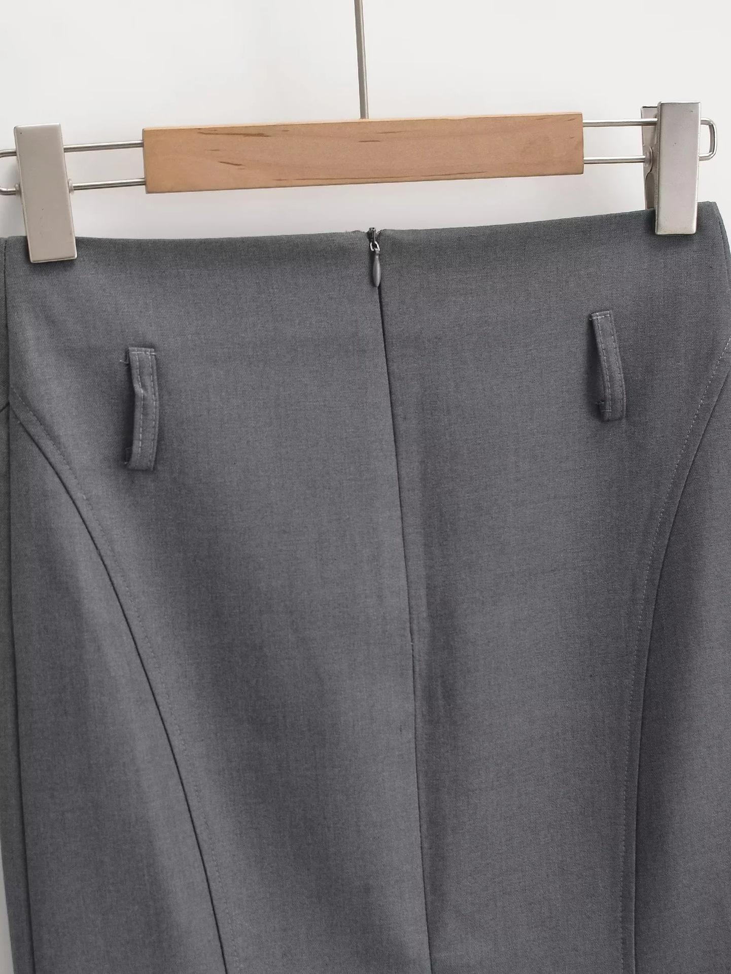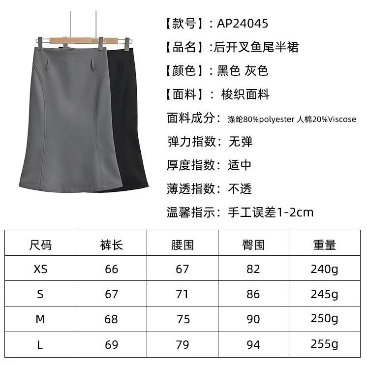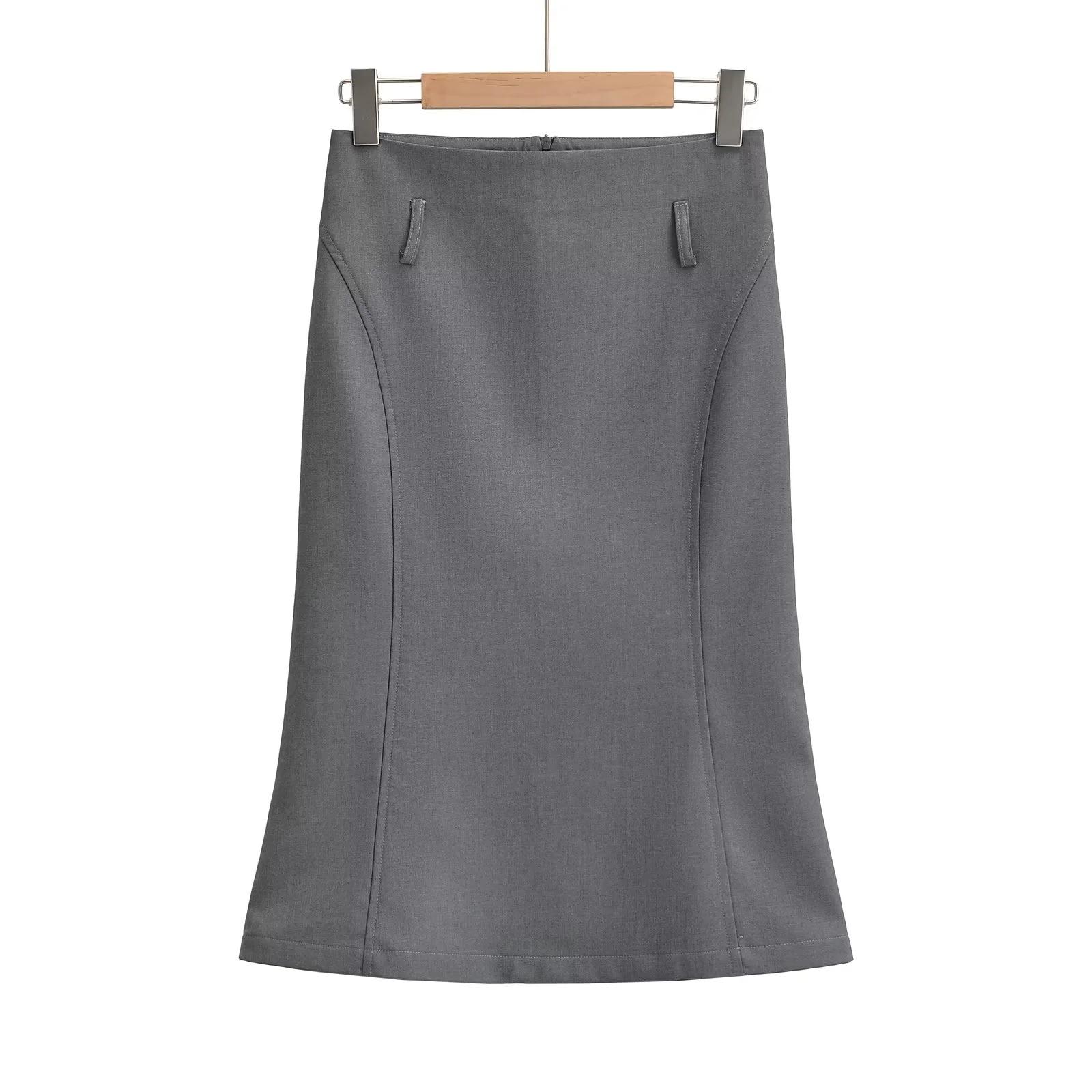 Falda de cola de pez con abertura en la espalda de traje negro para mujer primavera y otoño 2024 Nueva falda tubo de cintura alta con vuelo en forma de A