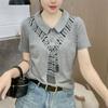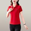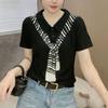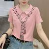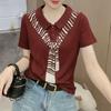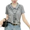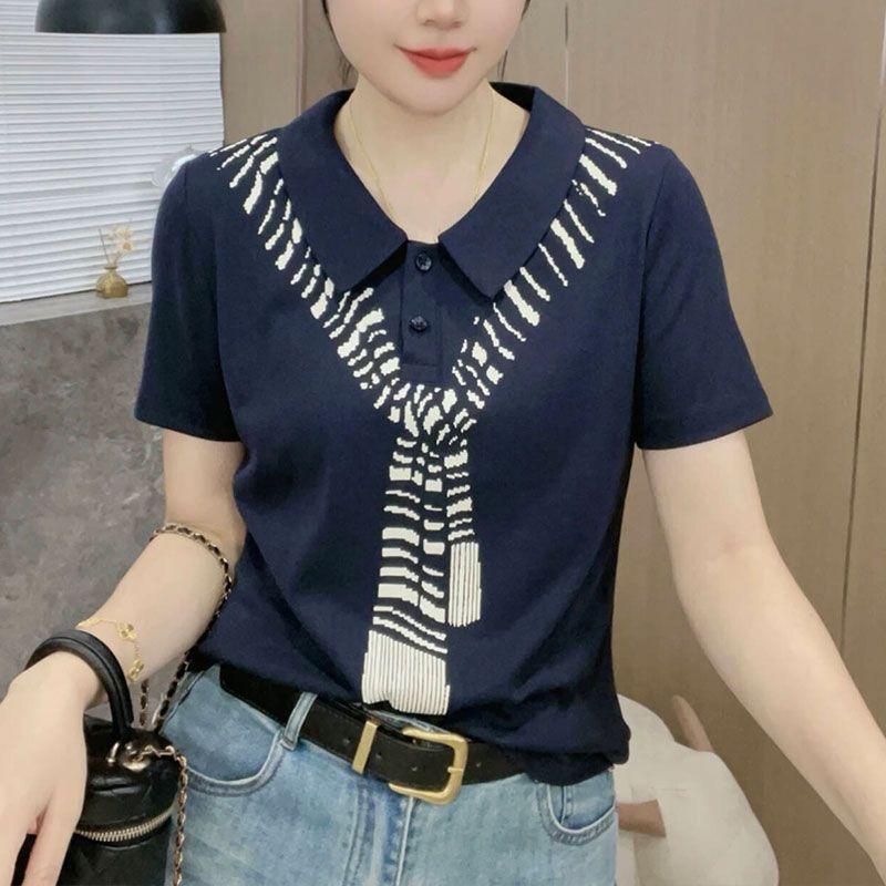 Elegante Camiseta de Manga Corta con Cuello Polo para Mujer Verano 2024 Nueva Moda Estampado Bufanda Elegante Estampado Slim Top
