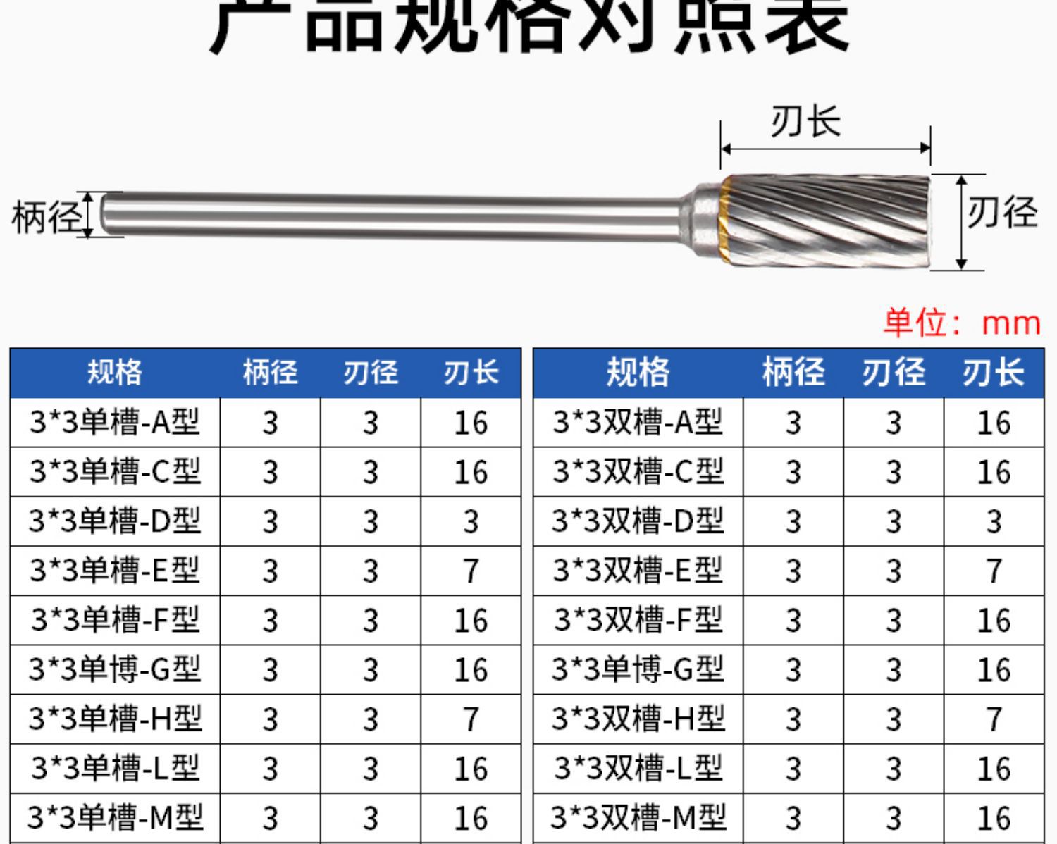 Lima rotativa de carburo cabeza de rectificado de acero de tungsteno máquina de rectificado eléctrica traje para carpintería broca de rectificado de 3 mm lima de grabado fresa