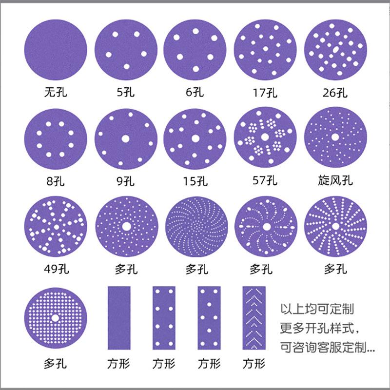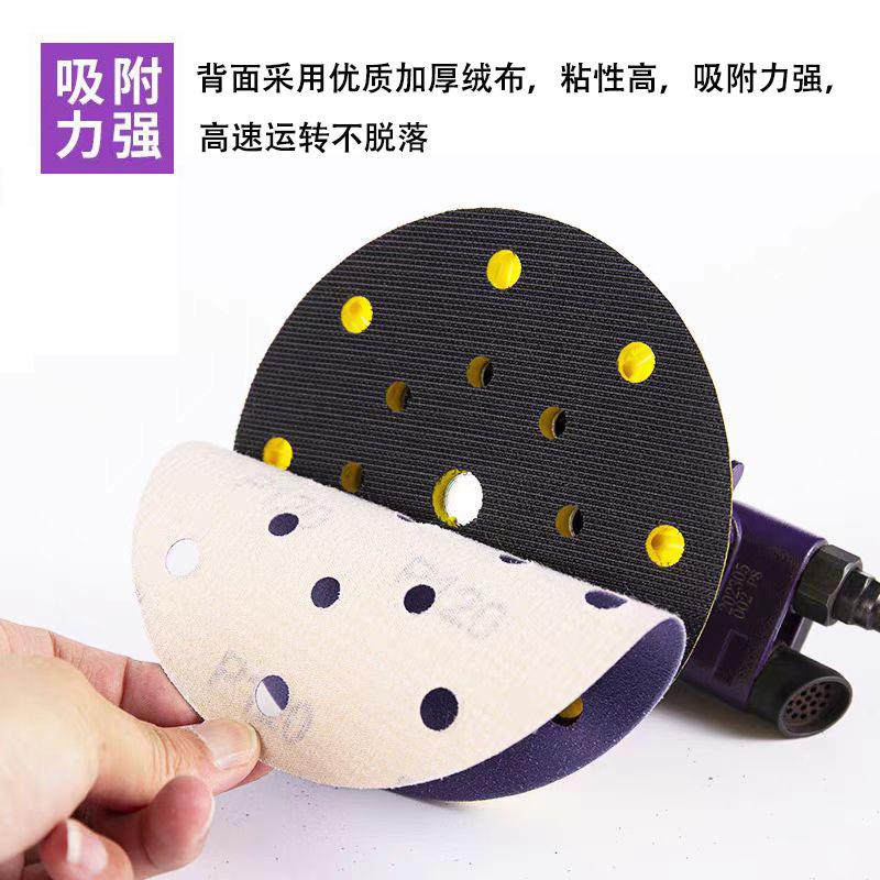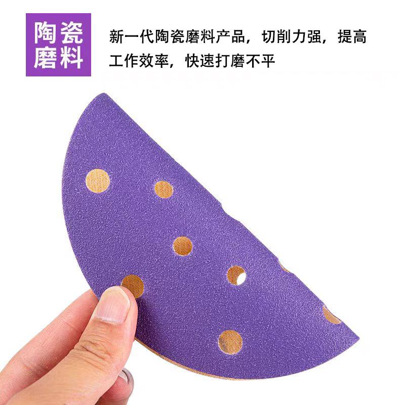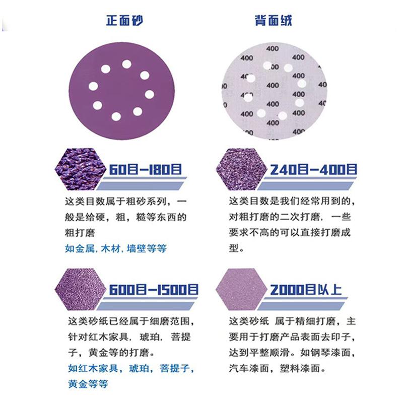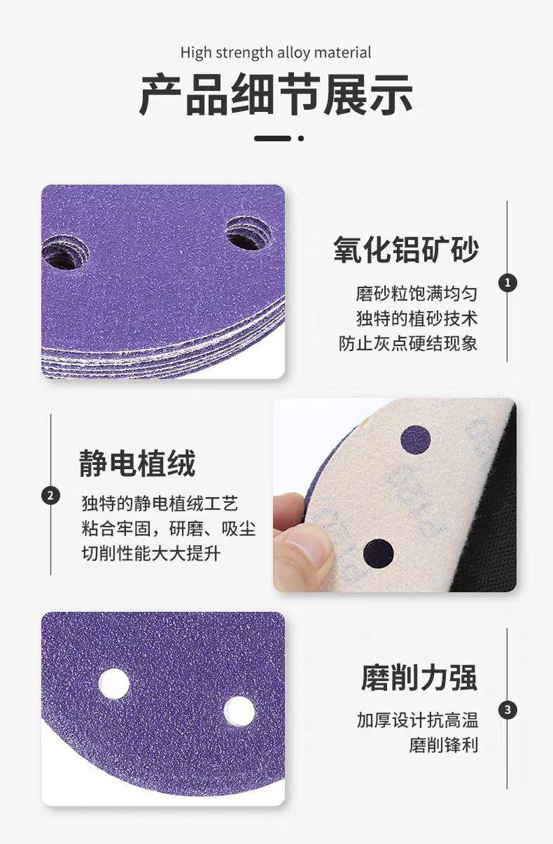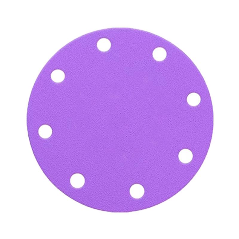 Disco de lija autoadhesivo de terciopelo con parte trasera de cerámica morada de 5 pulgadas y 8 agujeros para pulido de chapa metálica, flocado, venta al por mayor en Amazon