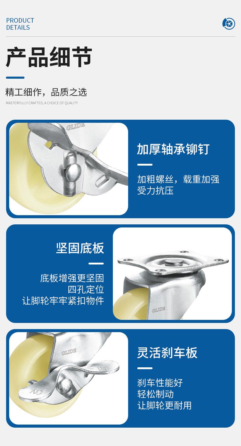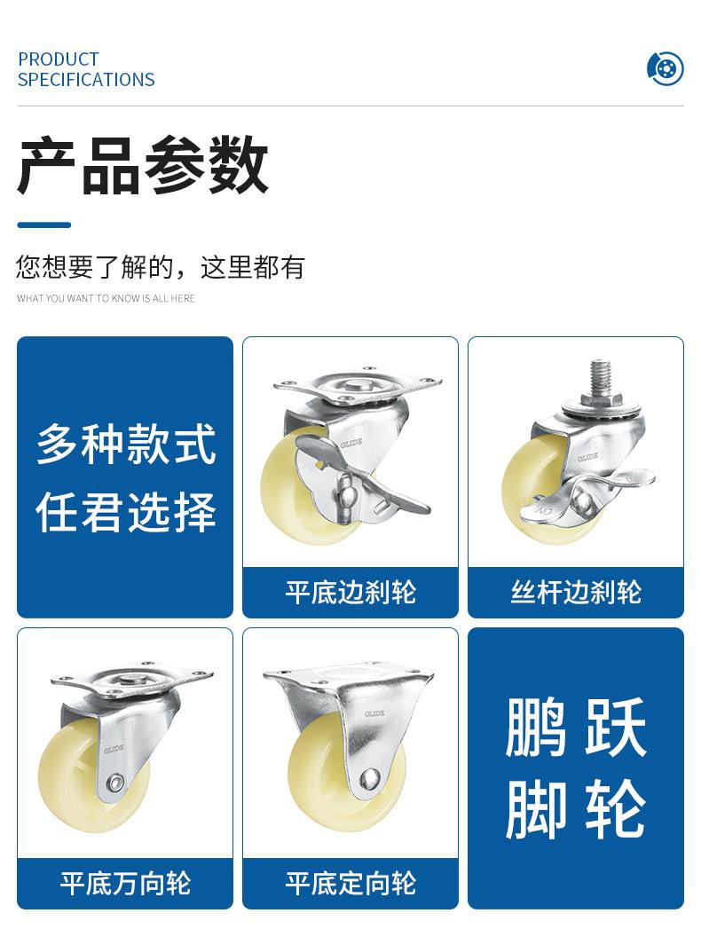Rueda ligera de PP de 1,5 pulgadas, rueda universal plana de 2 pulgadas con freno, rueda direccional de 2,5 pulgadas, volante de empuje, venta al por mayor
