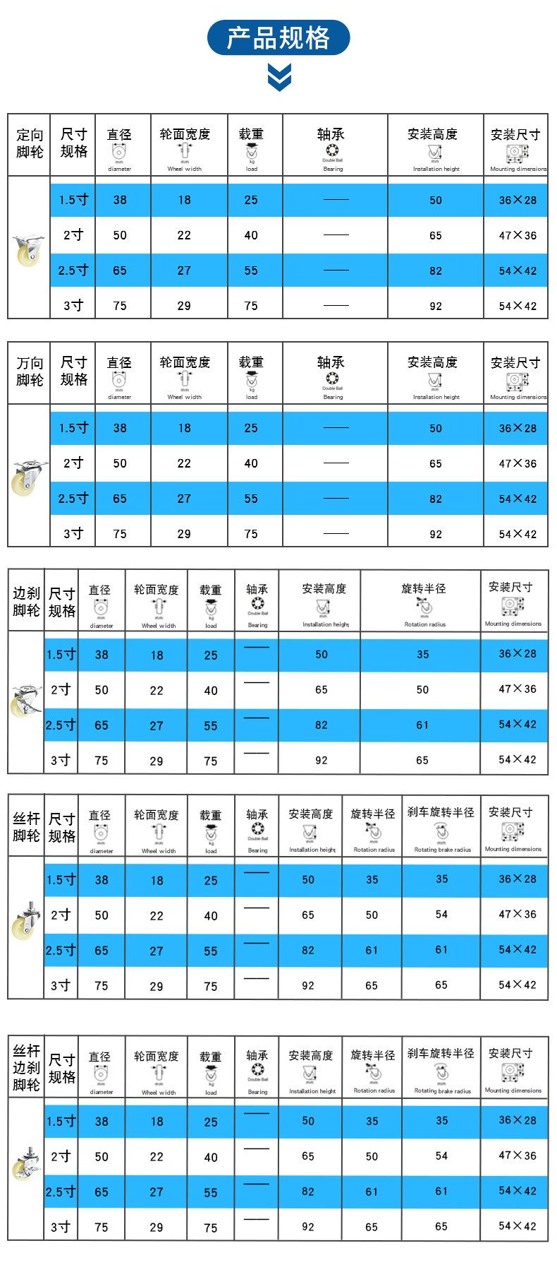 1inch *directional wheel*pp*100*swivel caster*17mm*0.07*without bearing, 1inch *flats universal wheels, 1inch ...
