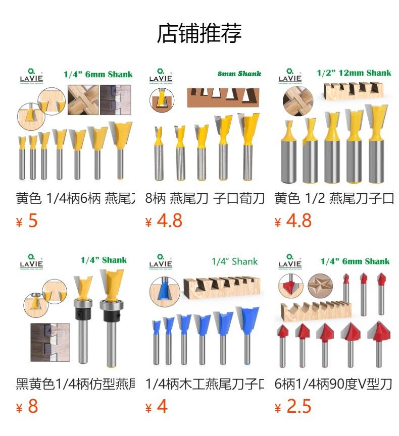 6.35/12/12.7 Patrón Fresa de Cola de Milano Color Natural Azul Cuchillo de Subcorte Fresa Cuchillo para Máquina de Recorte Junta de Panal Mortaja y Espiga