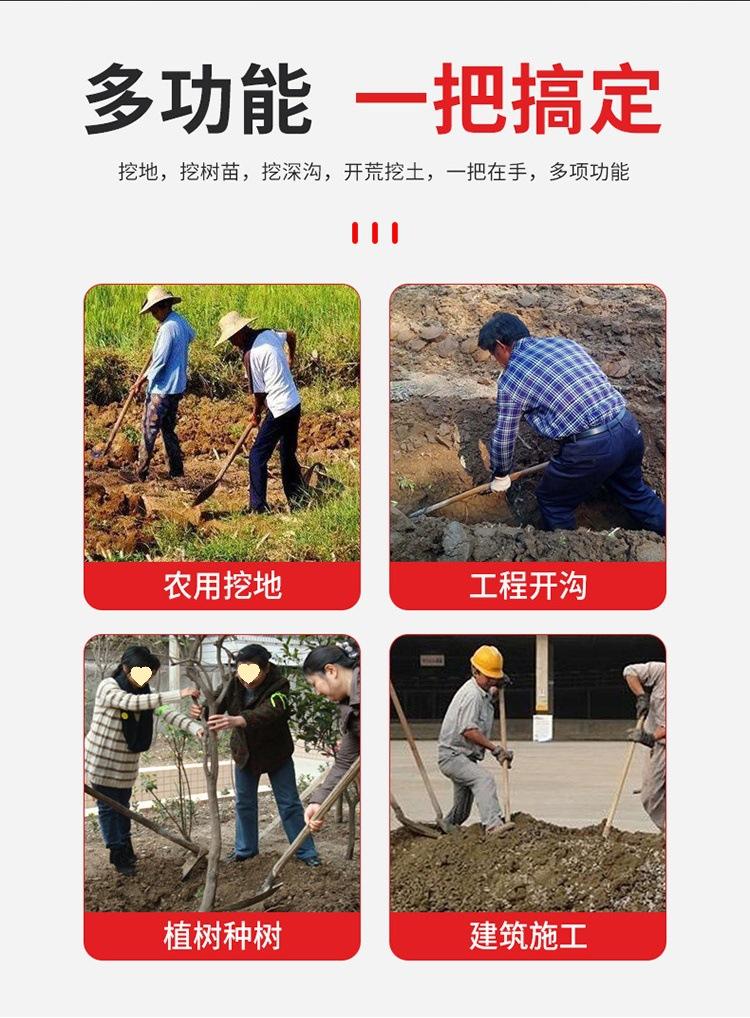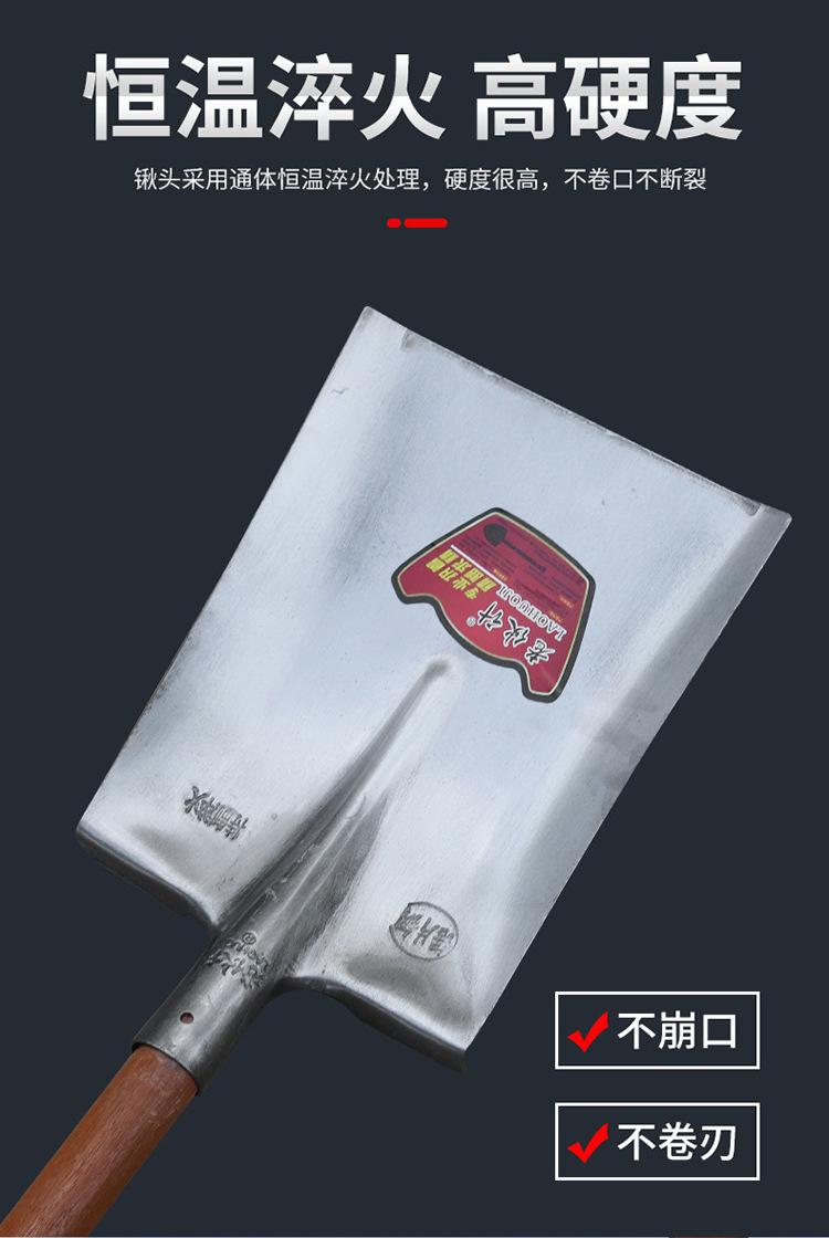 Pala Grande Gruesa Pulida de Acero al Manganeso Completo con Mango de Madera para Agricultura, Jardinería, Exterior, Multifuncional para Cavar, Hogar, Pala Cuadrada