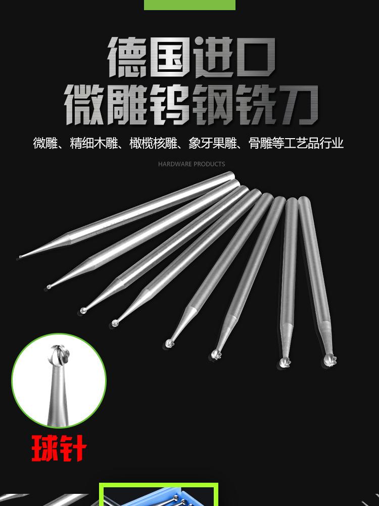 Fresa de acero de tungsteno alemán, aguja de bola, cuchillo eléctrico para tallado de madera, tallado nuclear, tallado en madera, tallado de huevo, herramienta de microtallado en hueso de aceituna