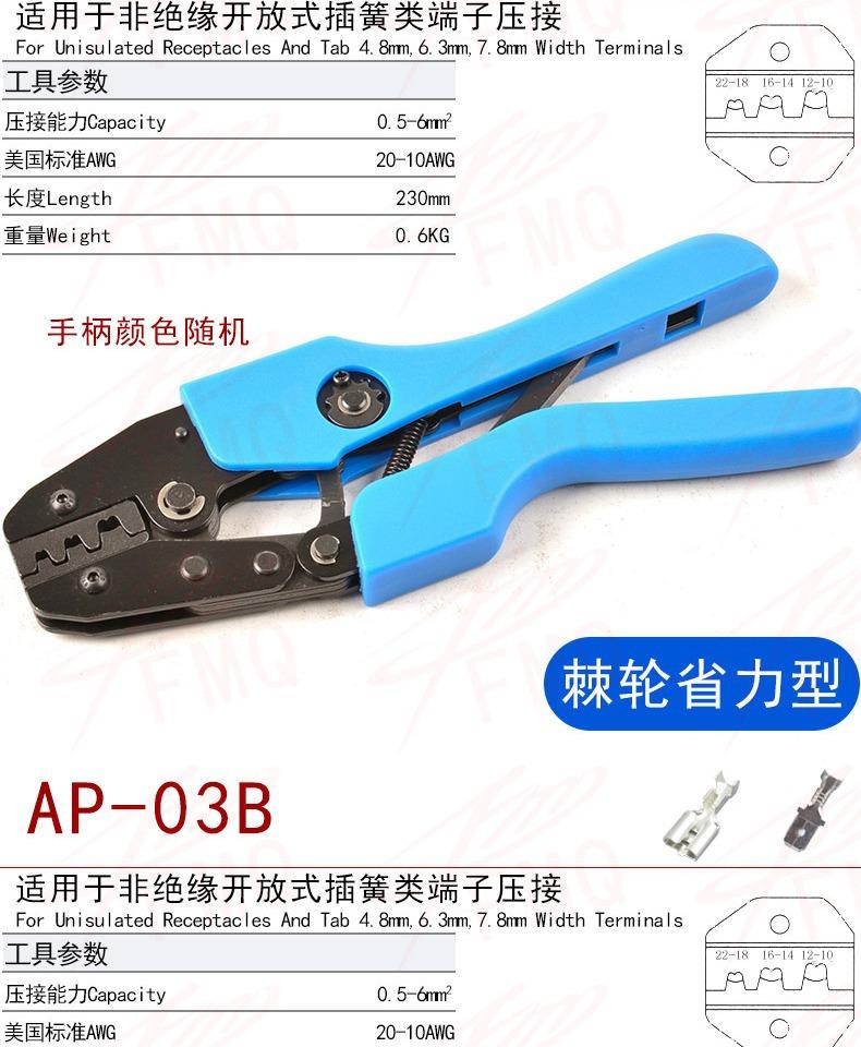 Alicates de crimpado de trinquete para terminales de cableado aislados prensados en frío, alicates de crimpado de terminales tubulares, alicates de terminales con resorte 4.8/6.3
