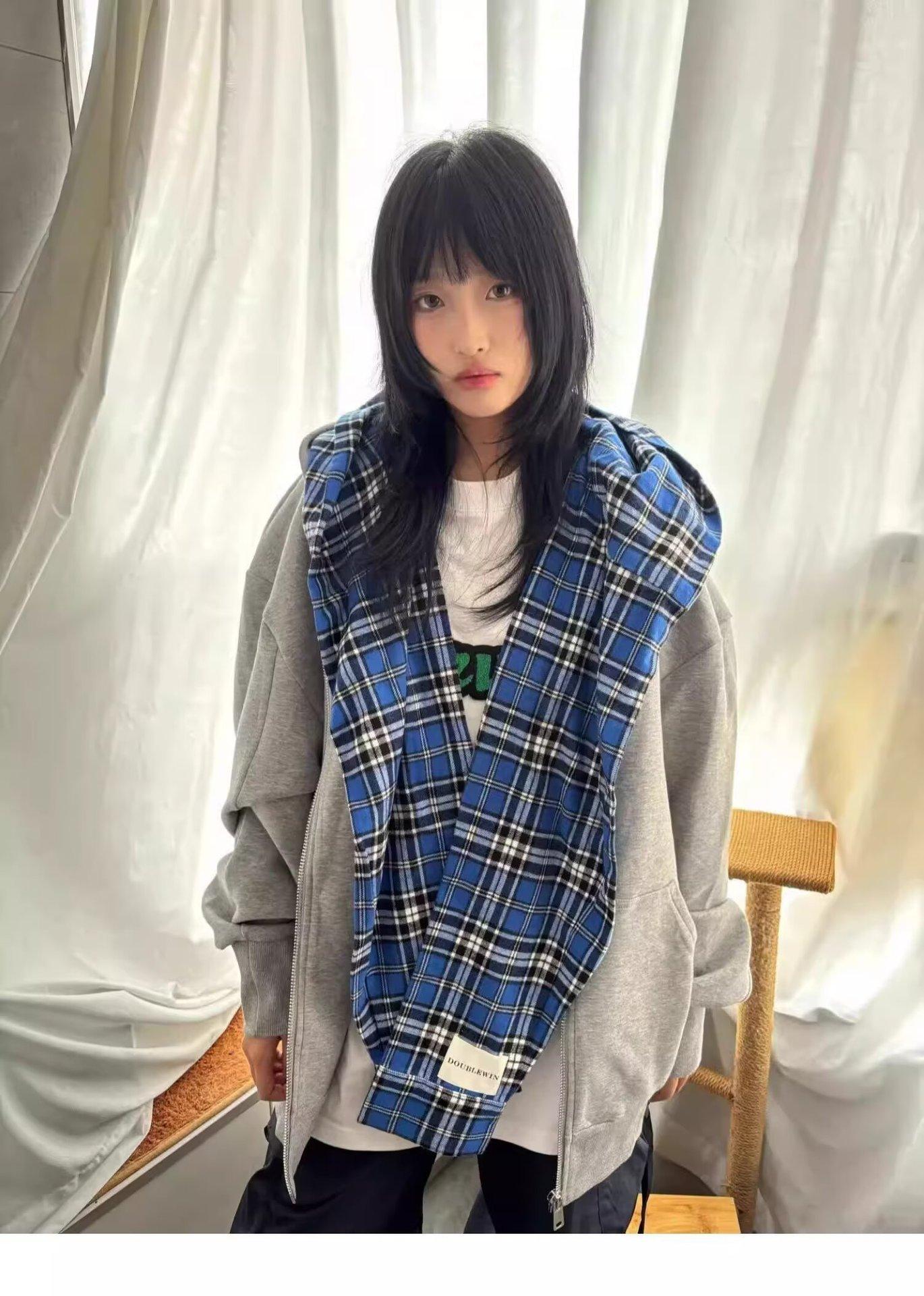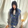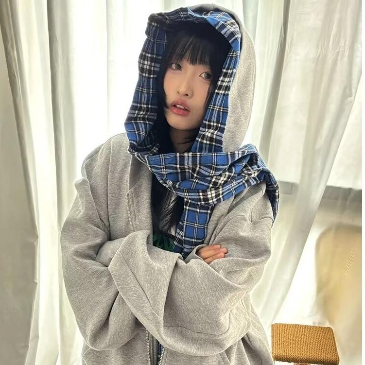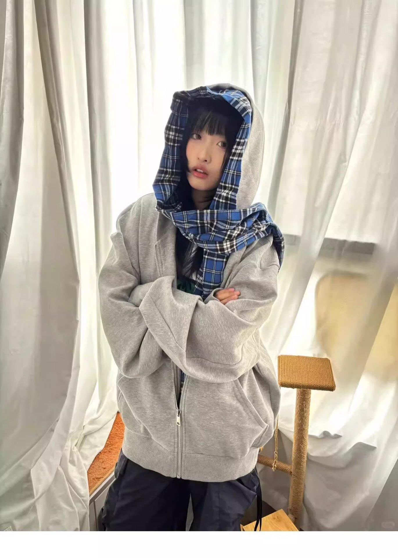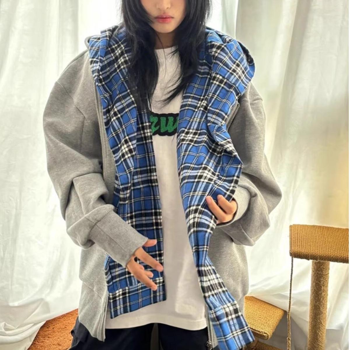 Chaqueta con capucha estilo americano retro para hombre y mujer, otoño e invierno, holgada, informal, de dos piezas, con estampado de cuadros y retazos
