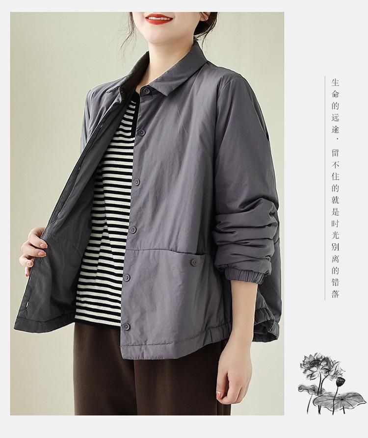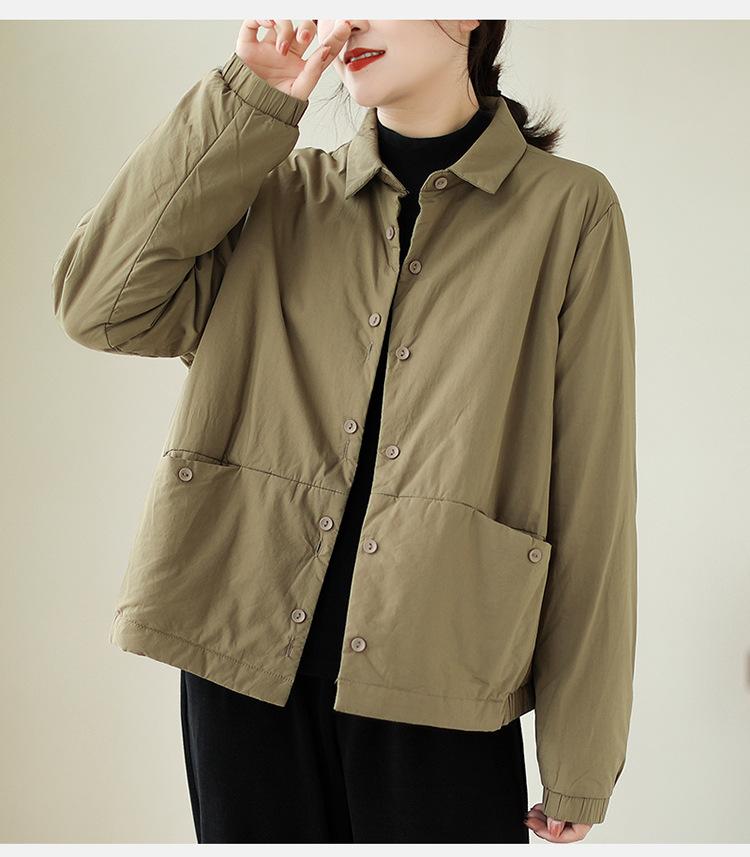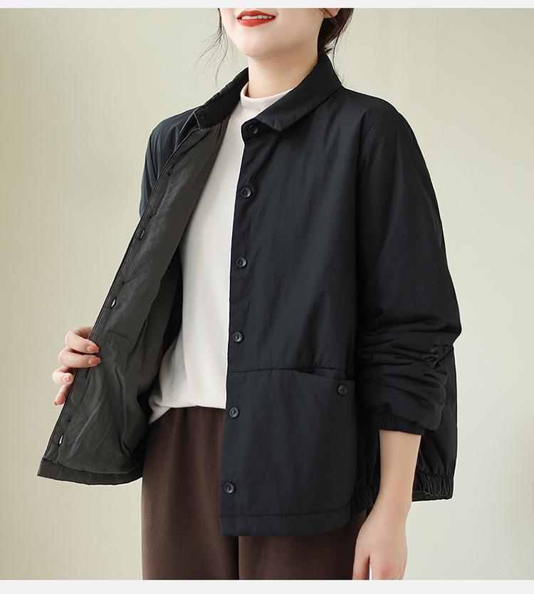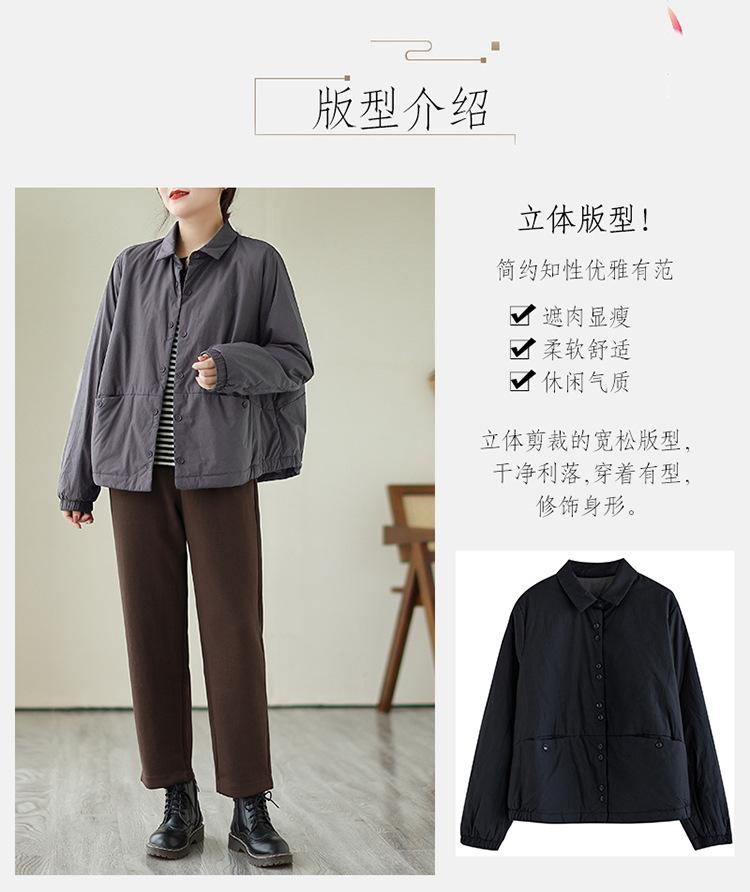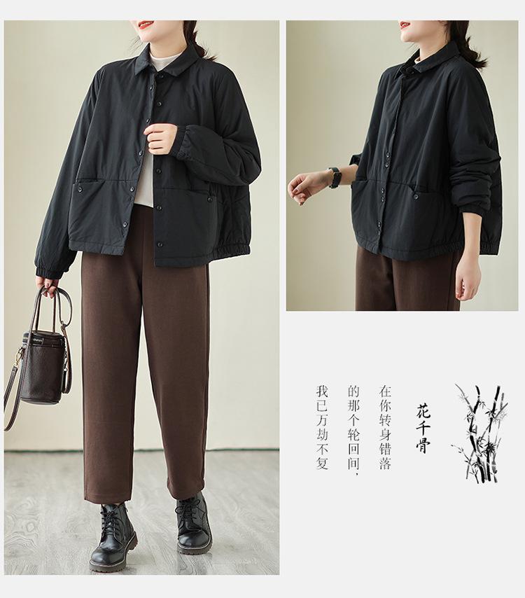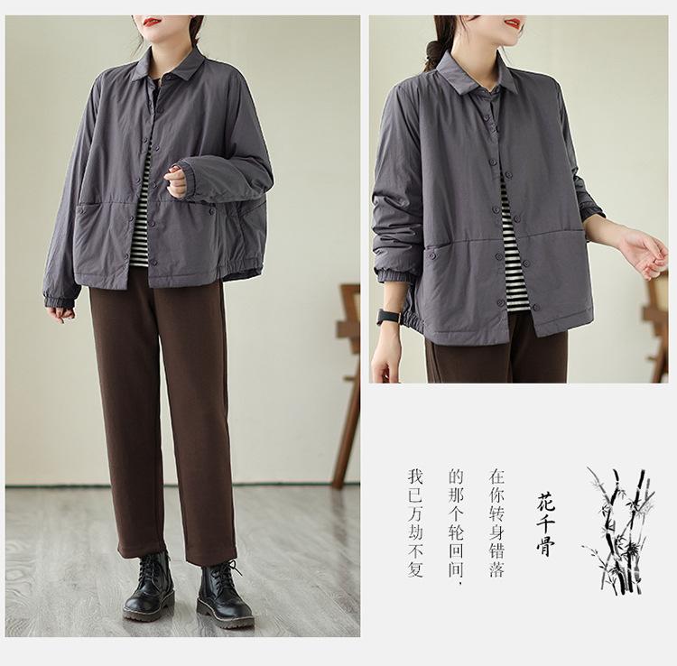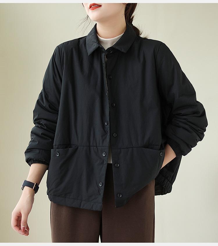 Otoño e Invierno Nuevo Color Sólido Simple Combinable Costuras Suelto Casual Estilo Coreano Reductor de Edad Chaqueta Acolchada de Algodón para Mujer