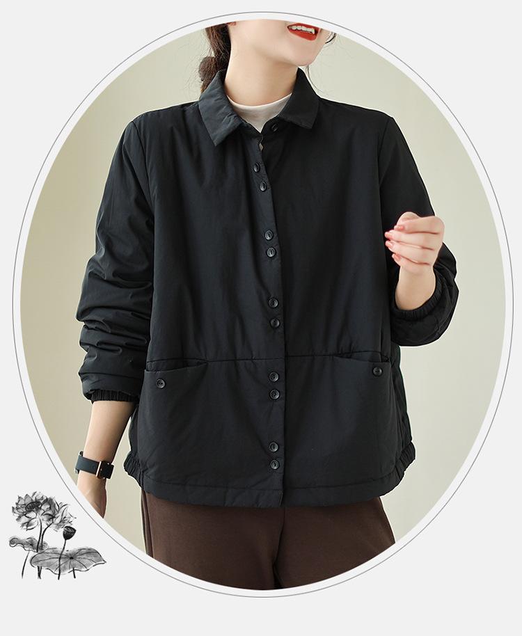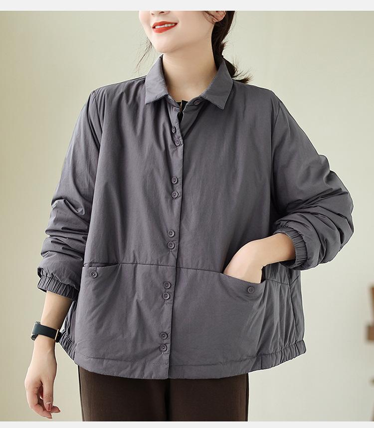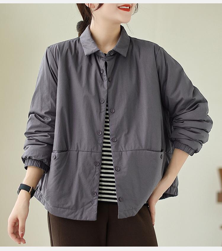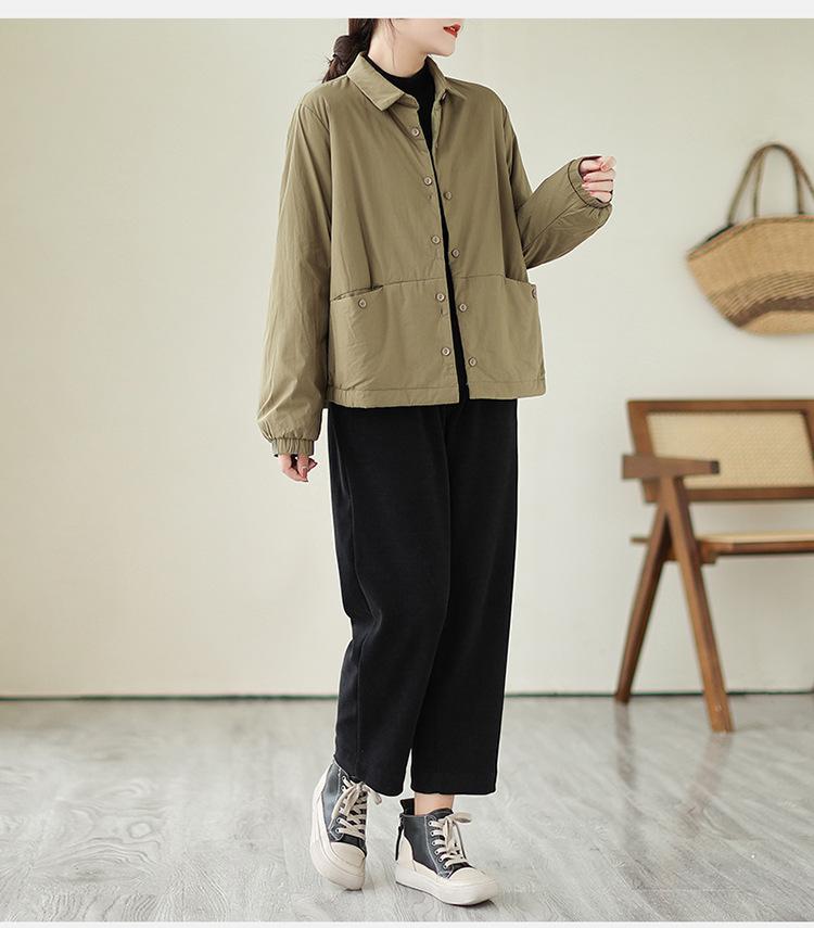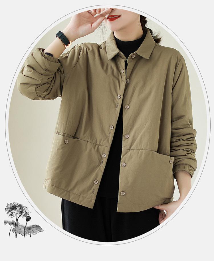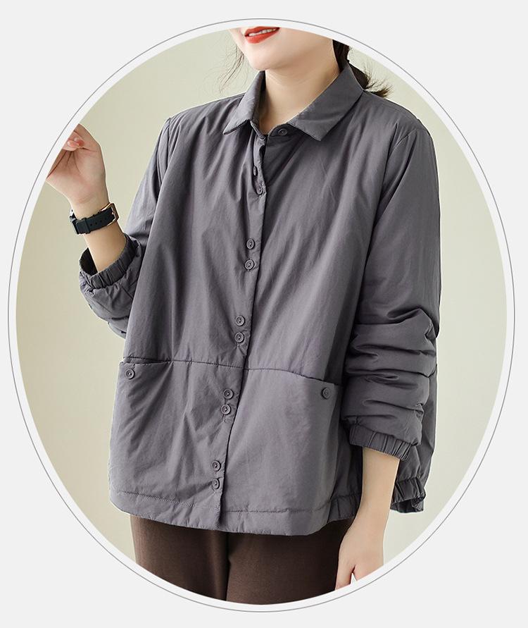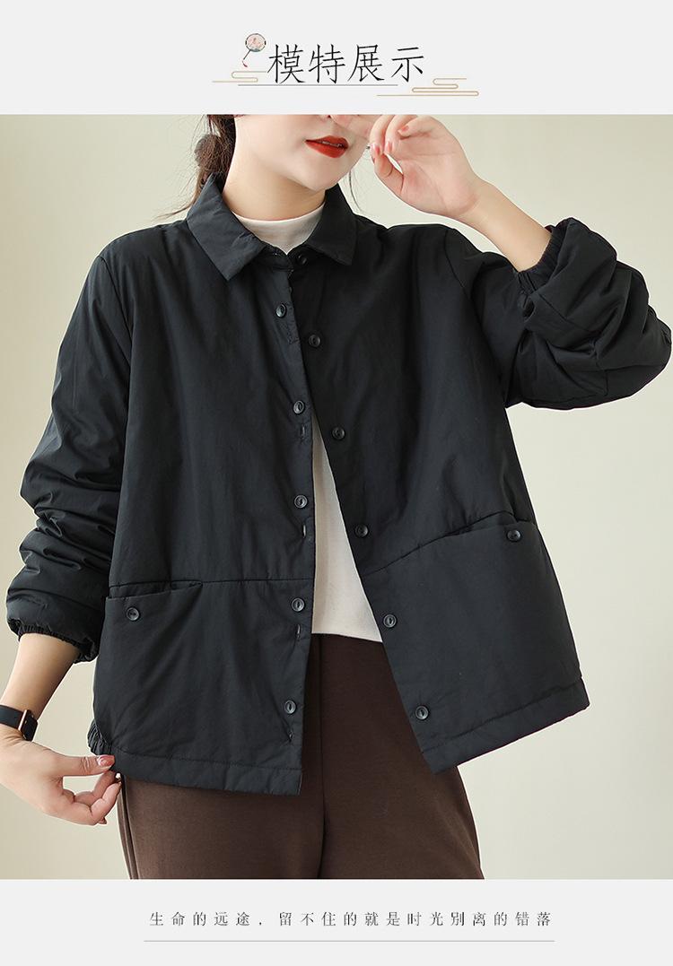 Otoño e Invierno Nuevo Color Sólido Simple Combinable Costuras Suelto Casual Estilo Coreano Reductor de Edad Chaqueta Acolchada de Algodón para Mujer