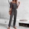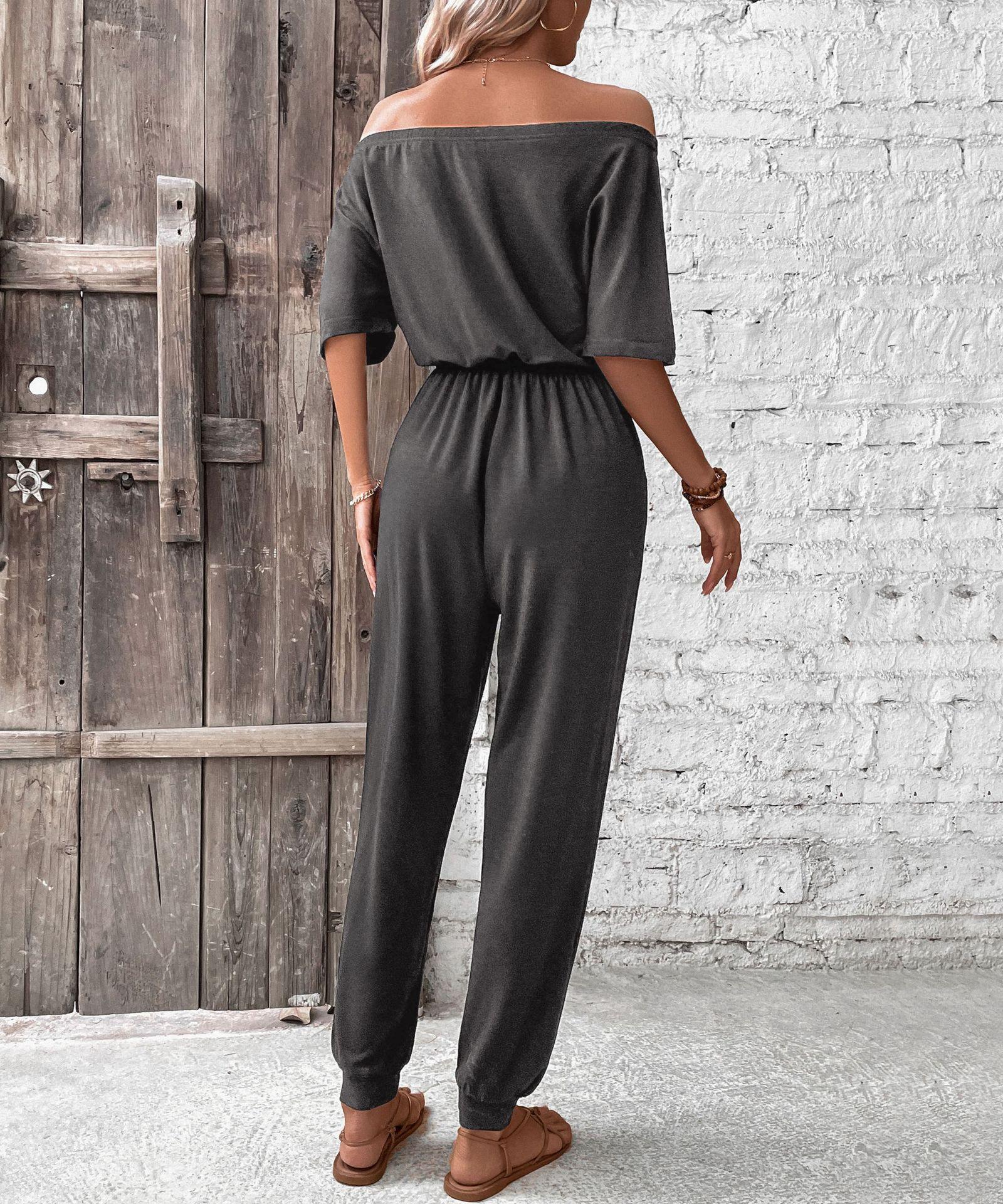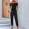 Mono de verano europeo y americano nuevo de Amazon Independent Station 2025, mono de color liso con hombros descubiertos y diseño transfronterizo.