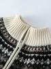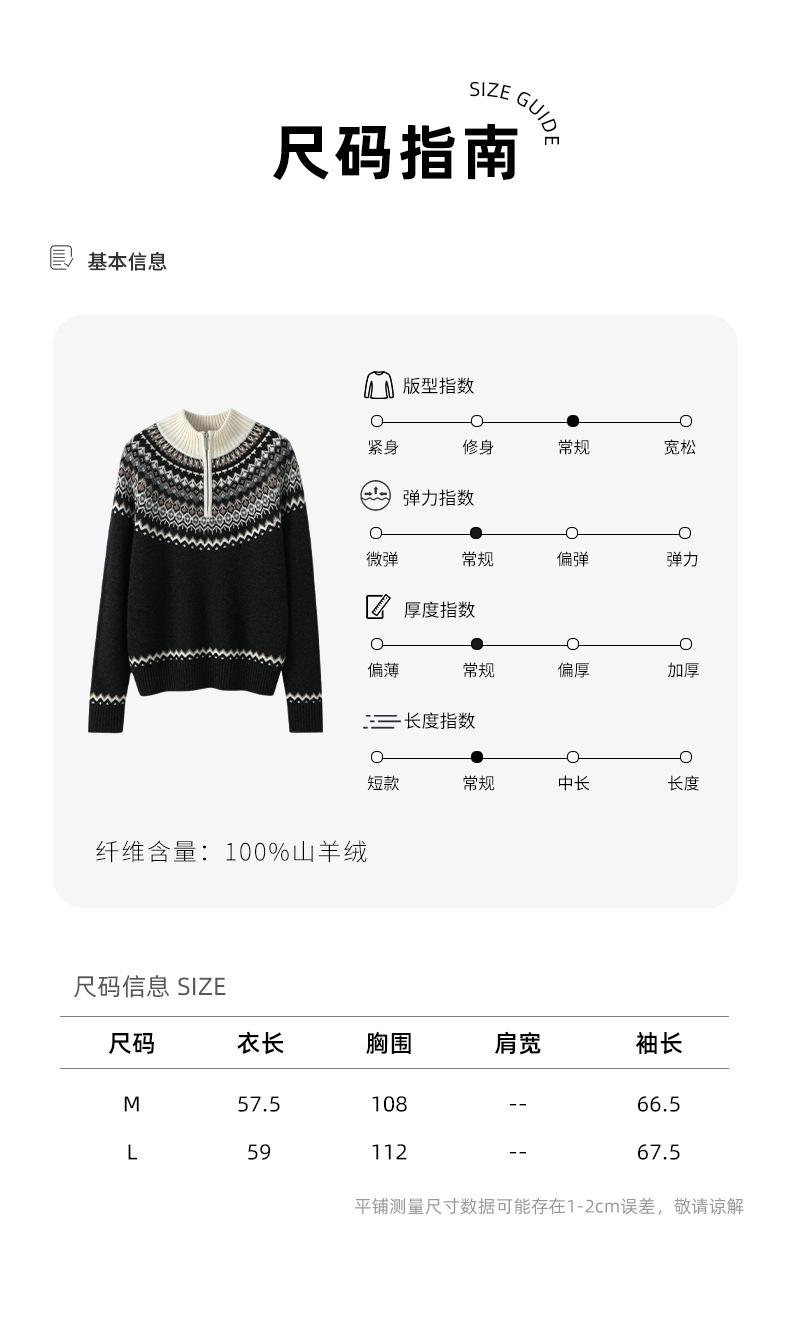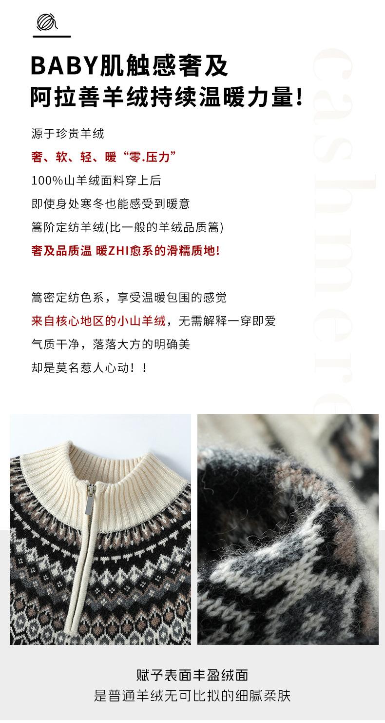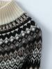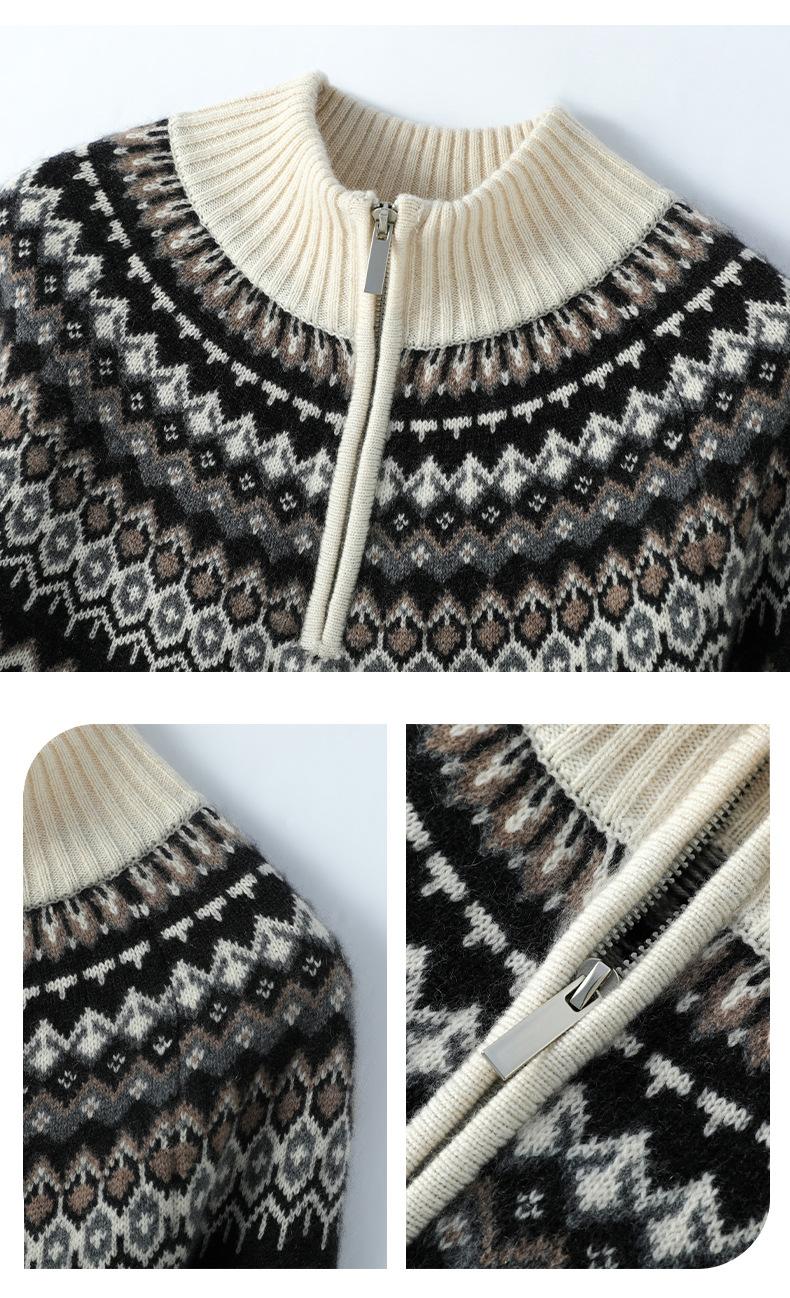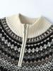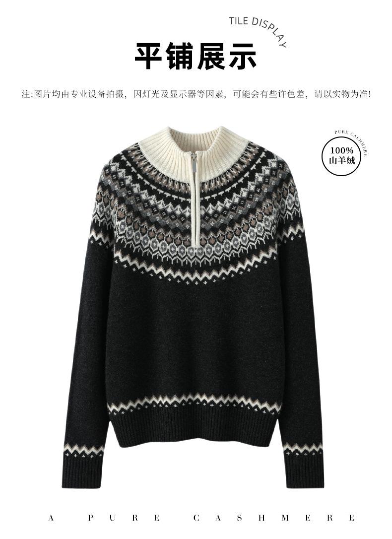 Cárdigan de punto holgado e informal de cachemira 100% europea para mujer, con cremallera, estampado de jacquard con solapa vintage y bloques de color