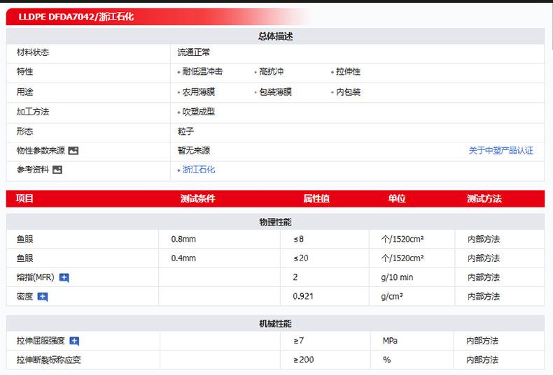 Película soplada para embalaje de polietileno lineal de baja densidad LLDPE DFDA7042, resistente a impactos, de Zhejiang Petrochemical