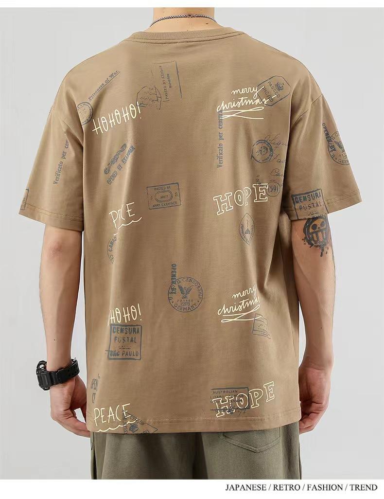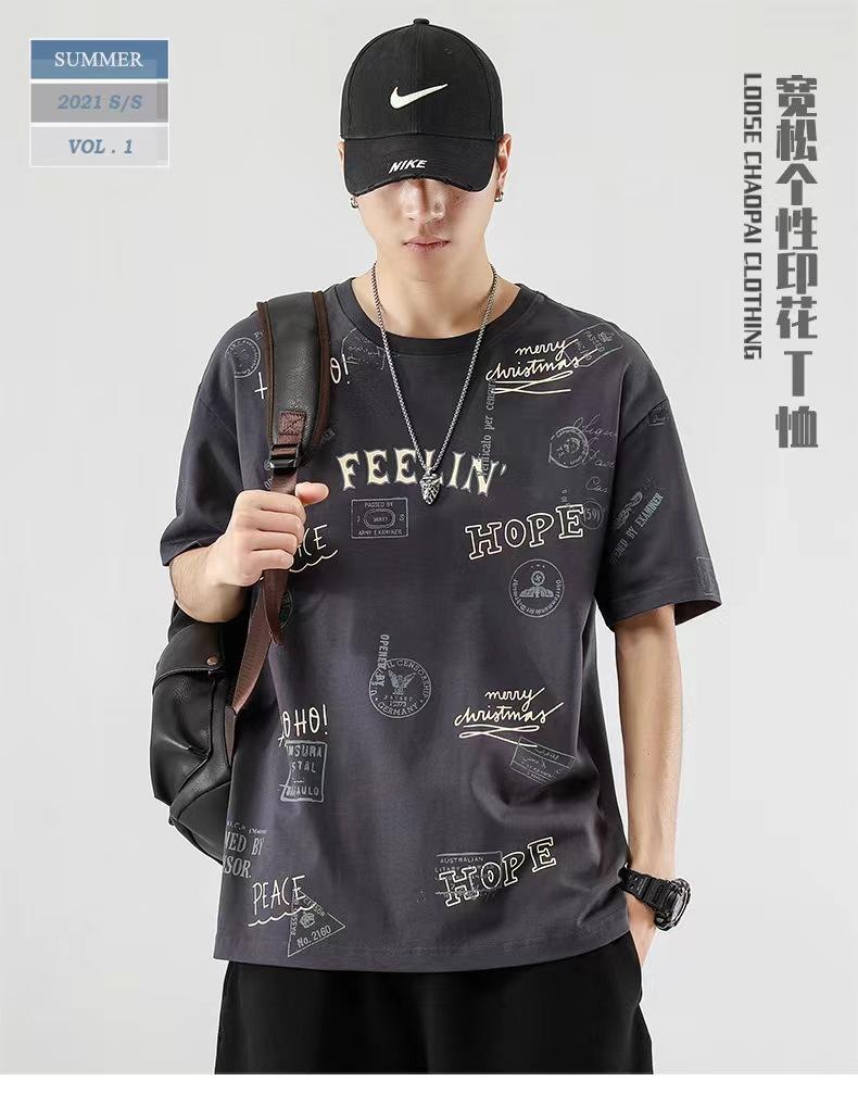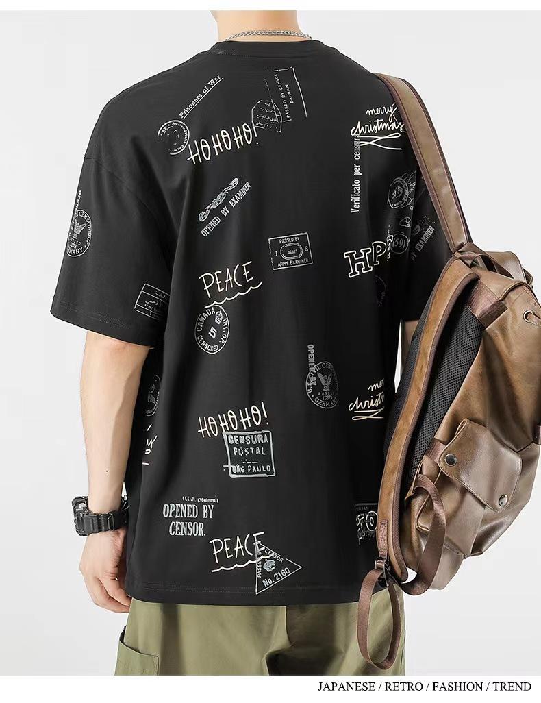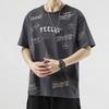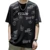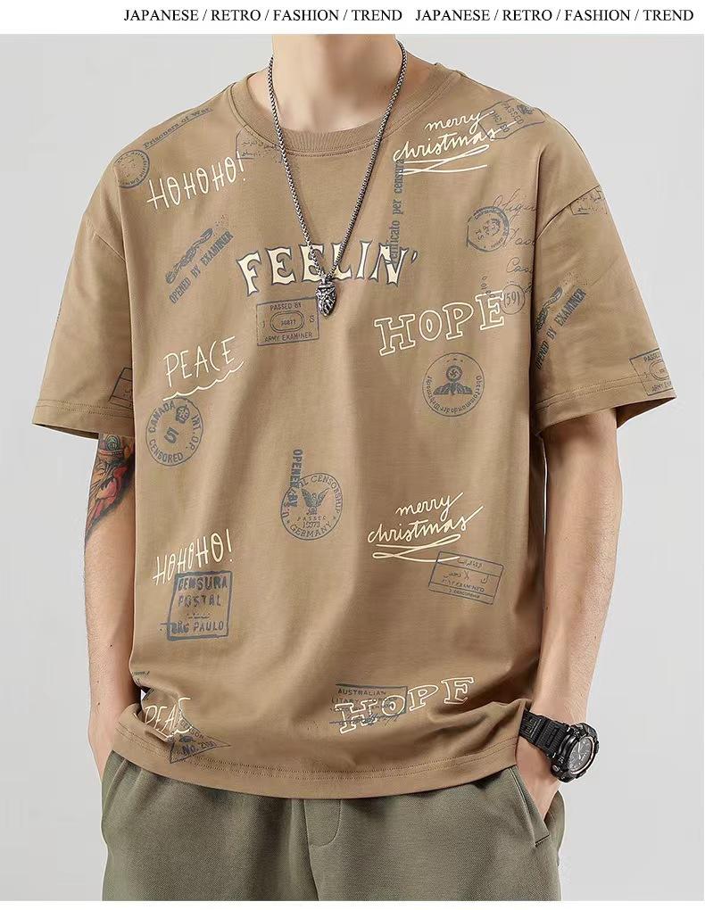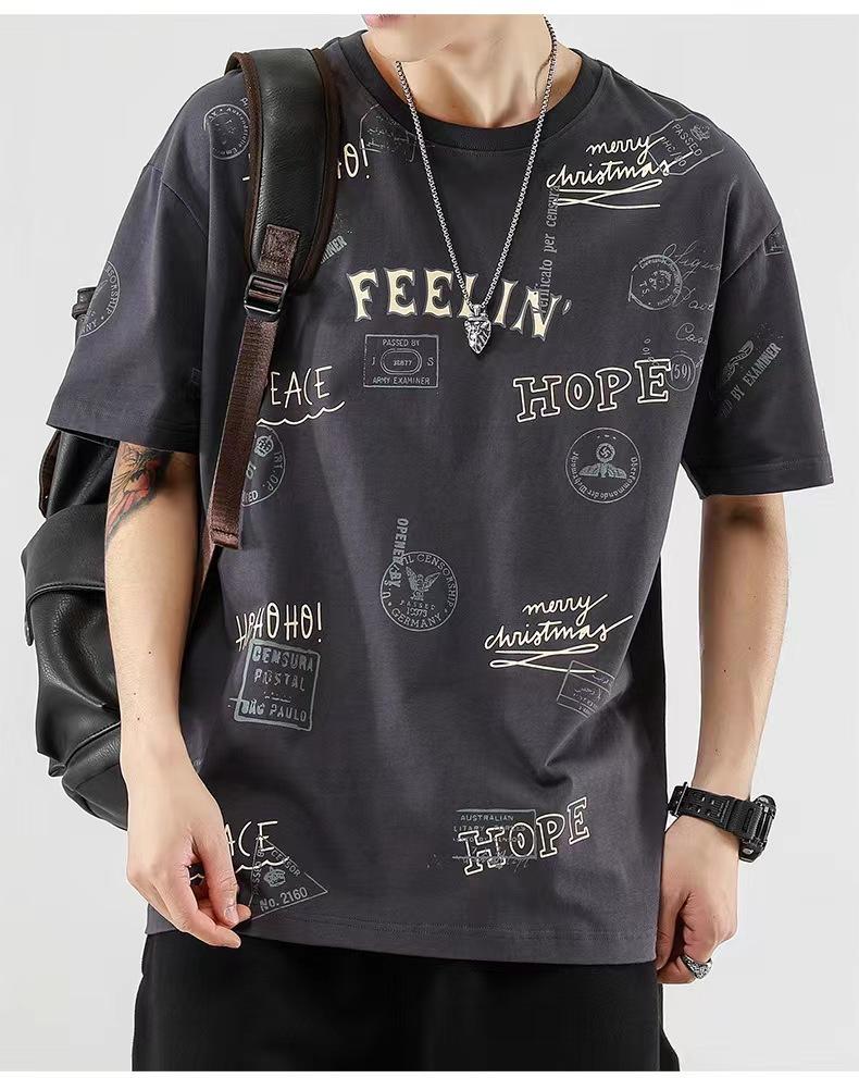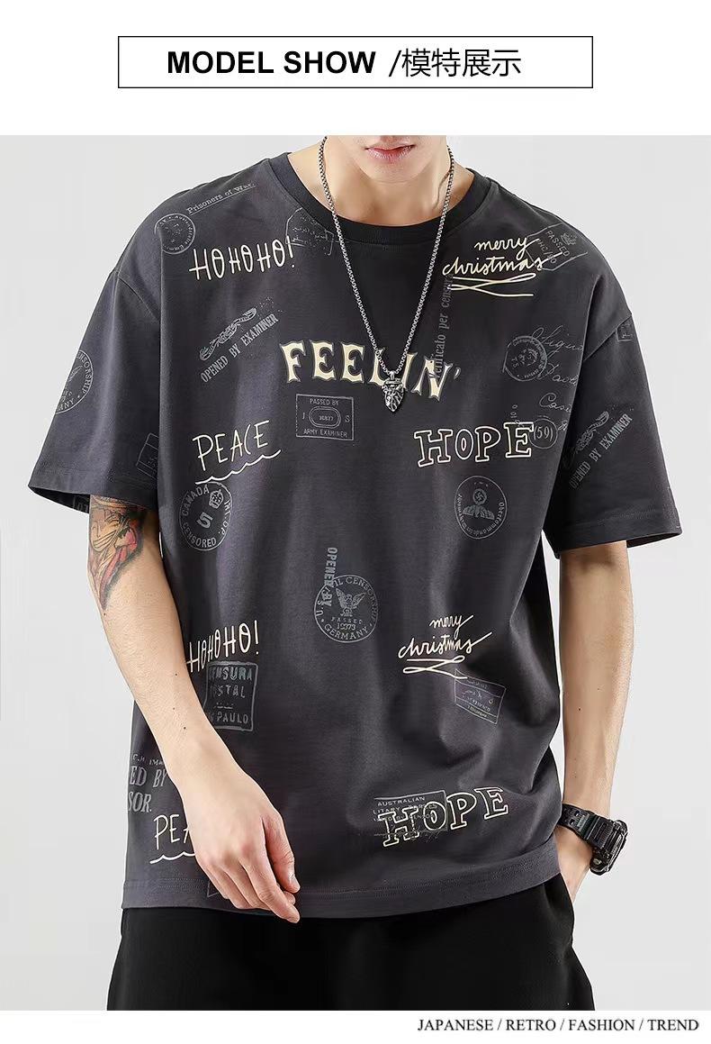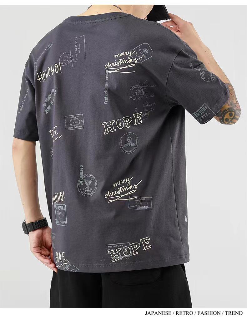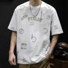 Camiseta de Verano de Manga Corta para Hombre, Camiseta Holgada Moderna de Estilo Americano con Cuello Redondo y Estampado de Moda