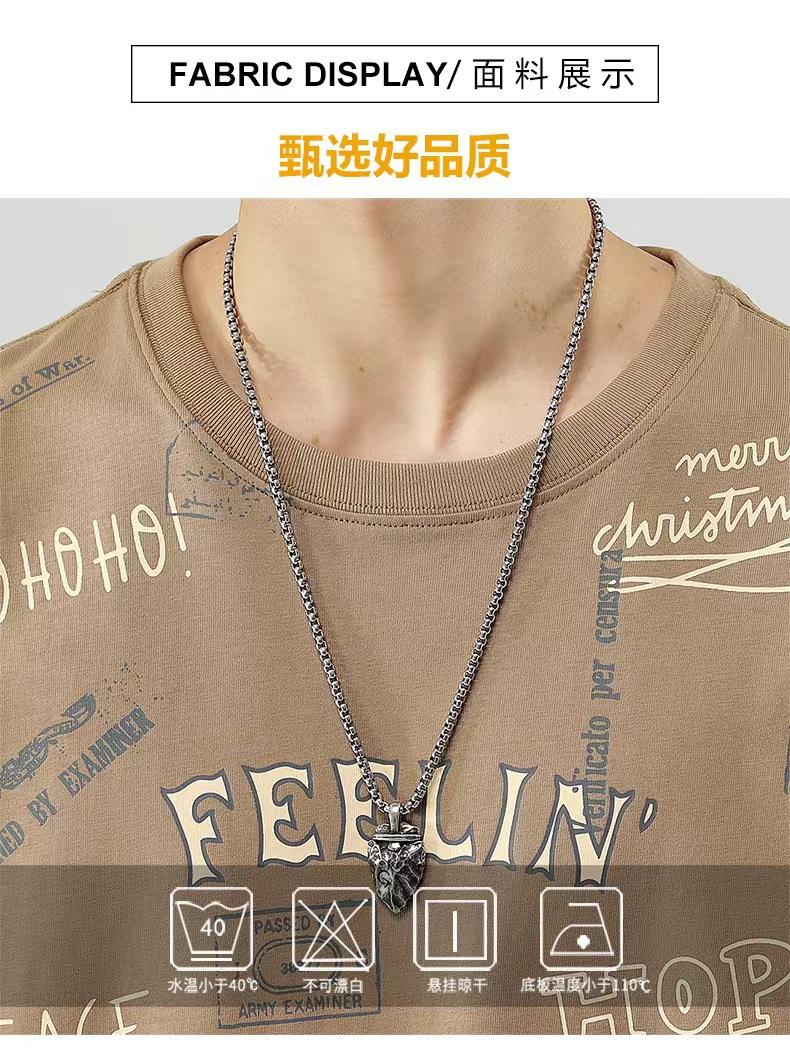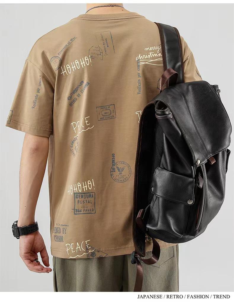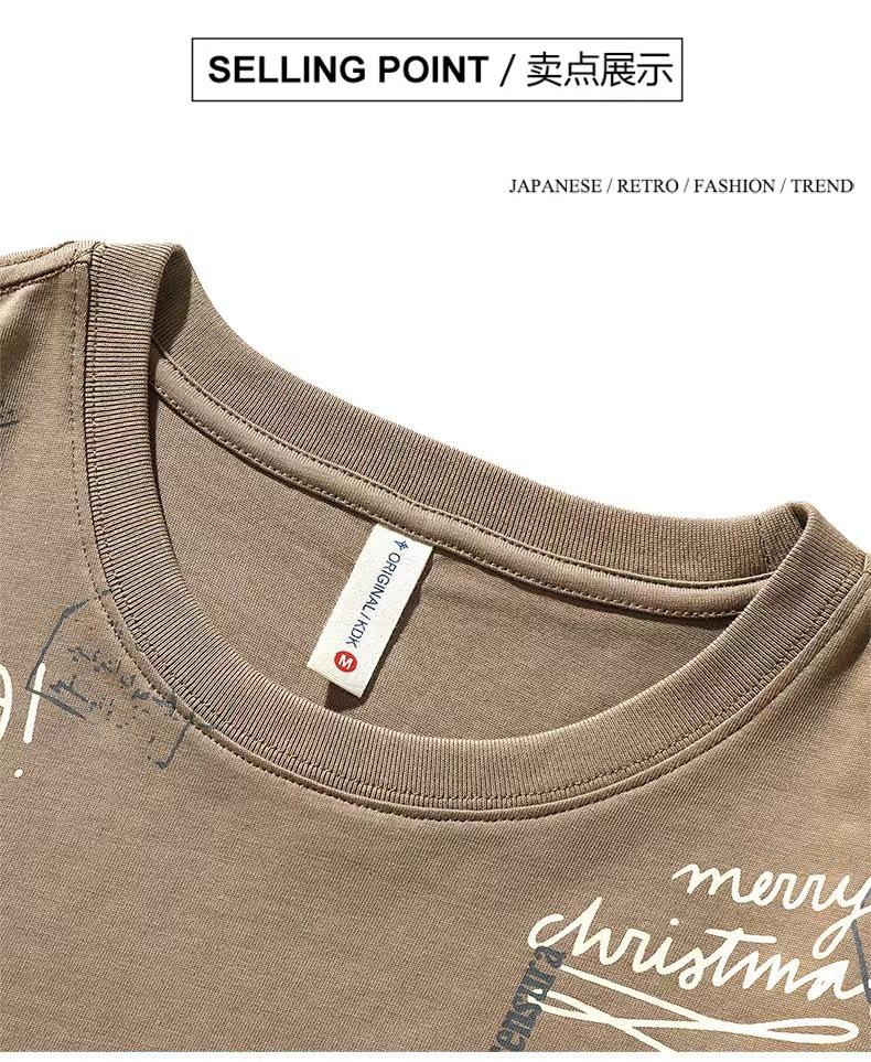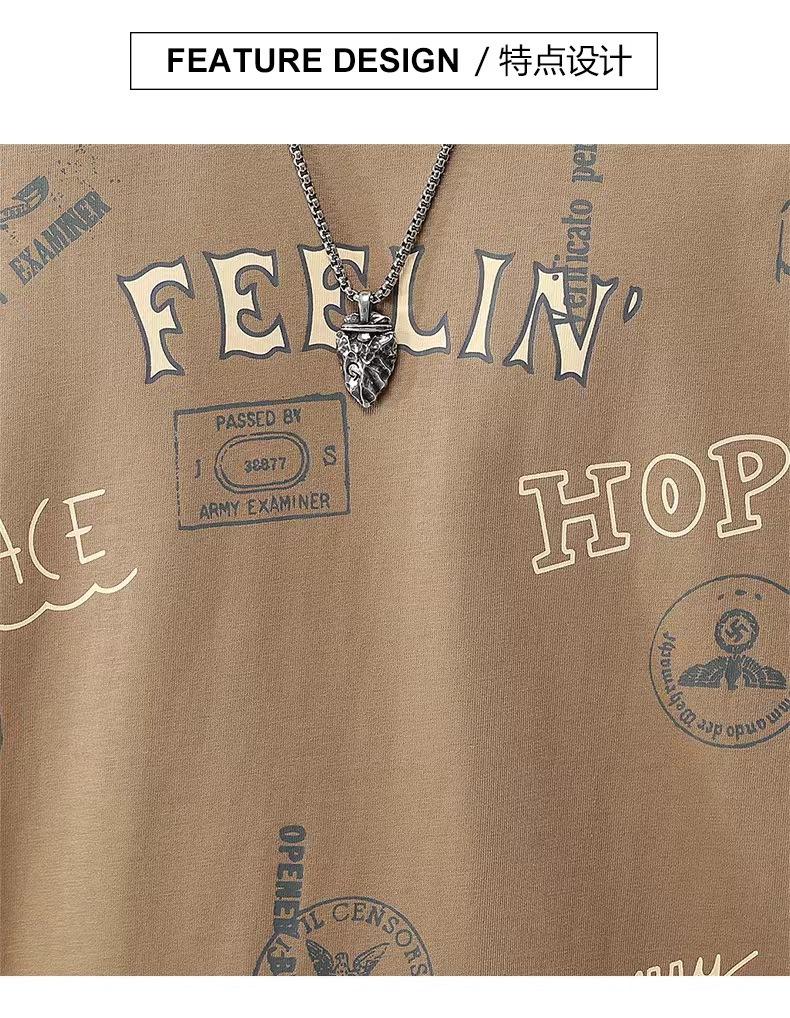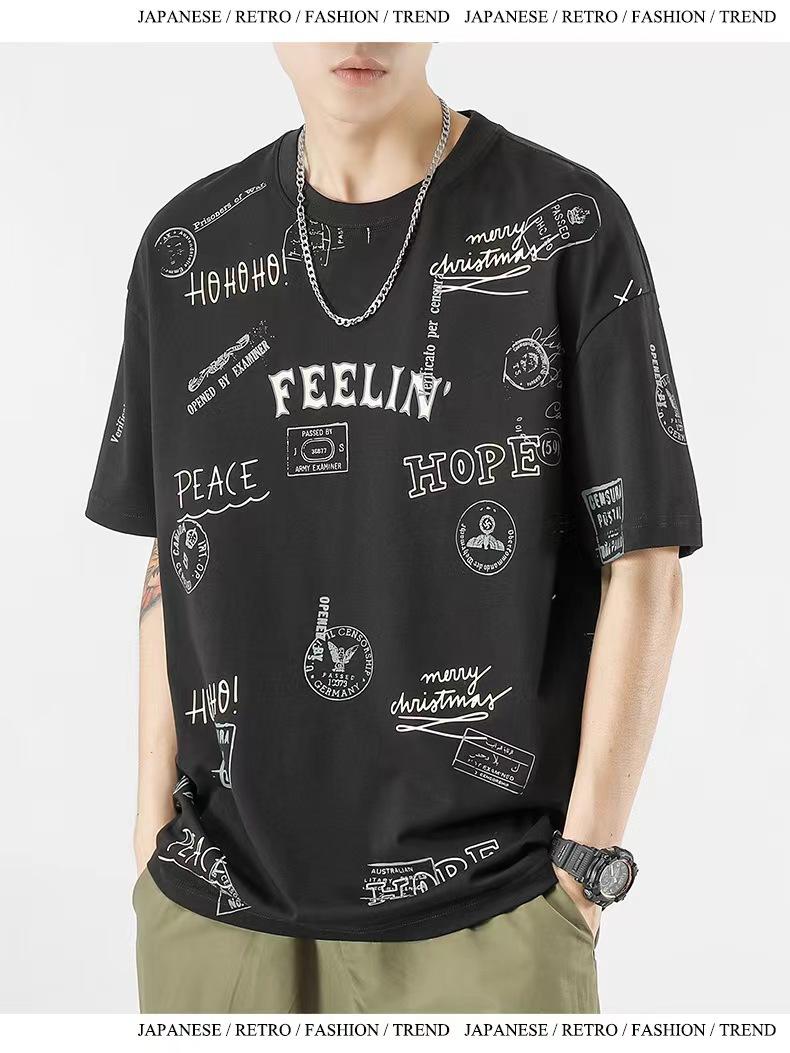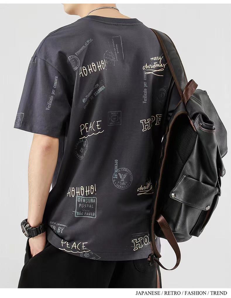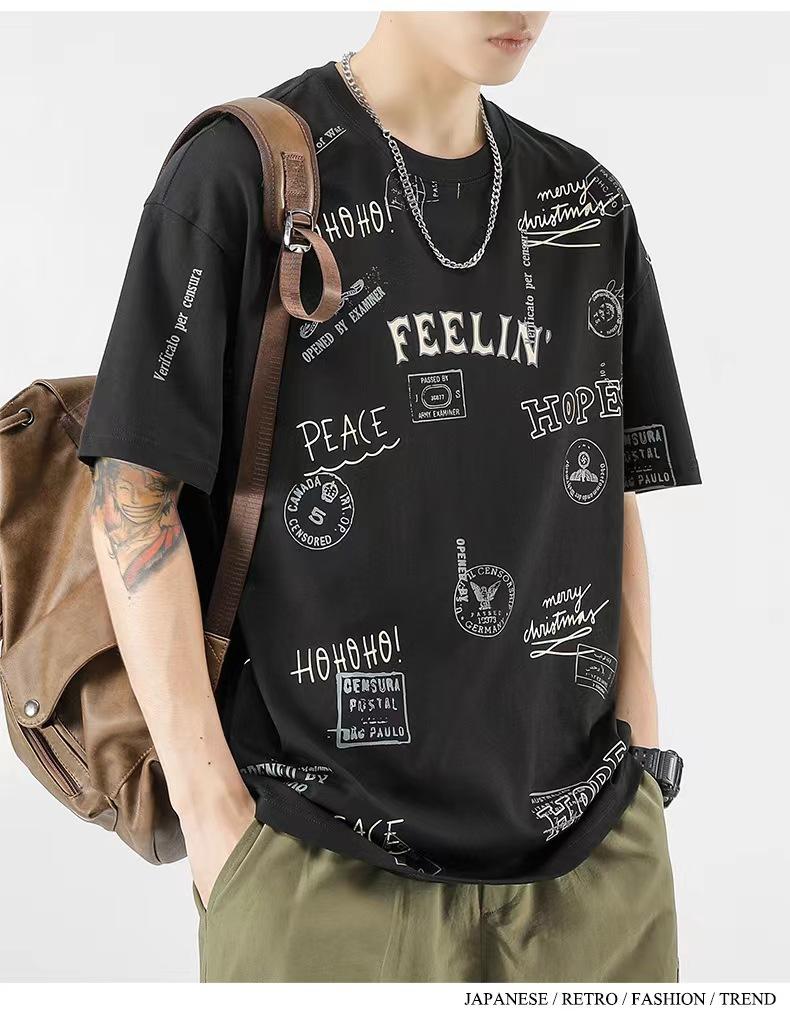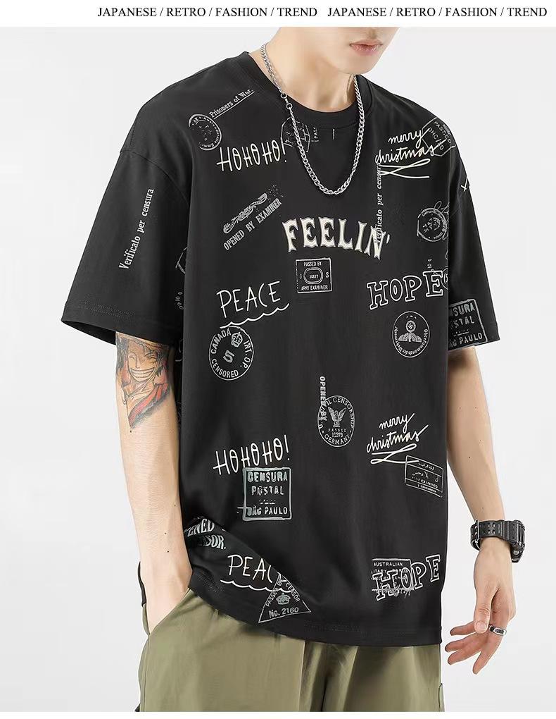 Camiseta de Verano de Manga Corta para Hombre, Camiseta Holgada Moderna de Estilo Americano con Cuello Redondo y Estampado de Moda