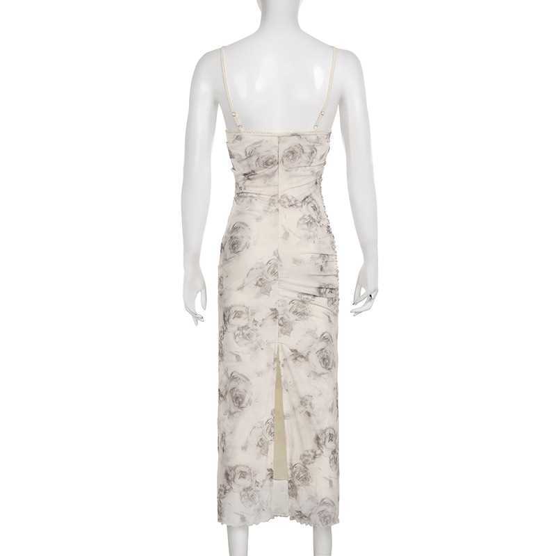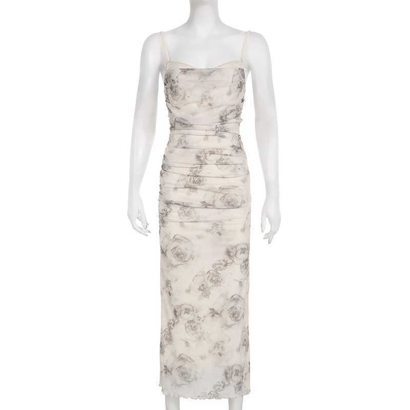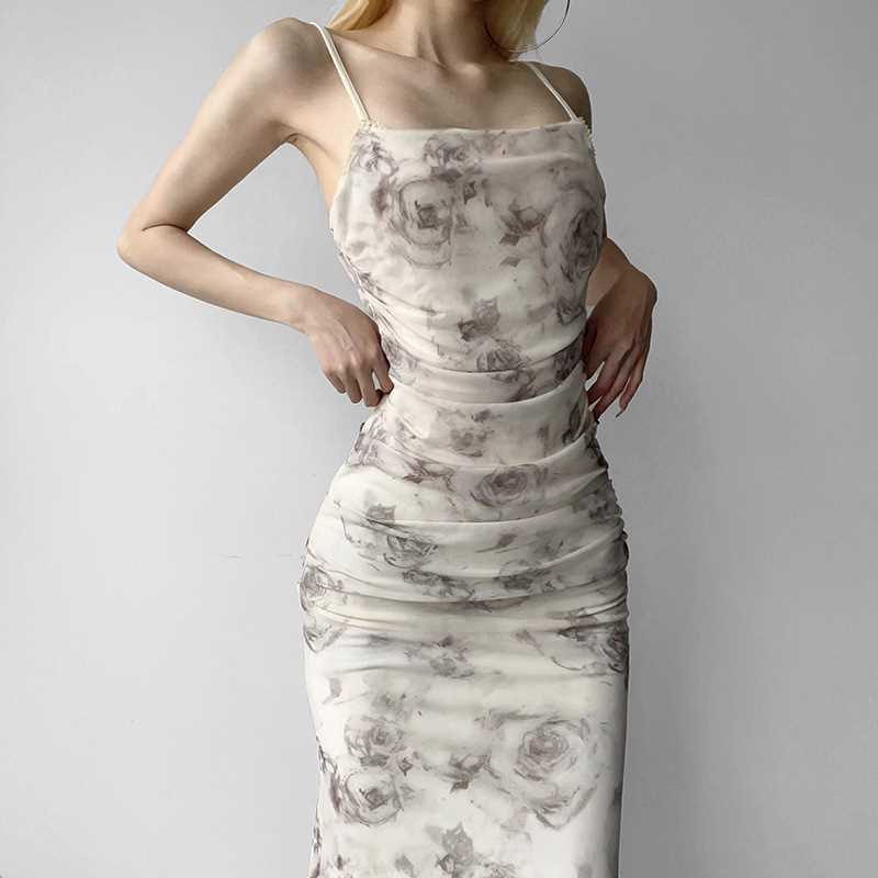 Falda Estampado de Rosas 2023 Nuevo Verano Ropa Europea y Americana Deseo Puro Cintura Vestido Largo Sexy Estilo Francés
