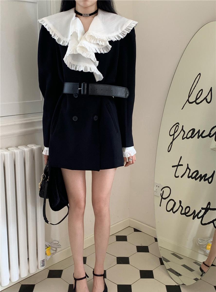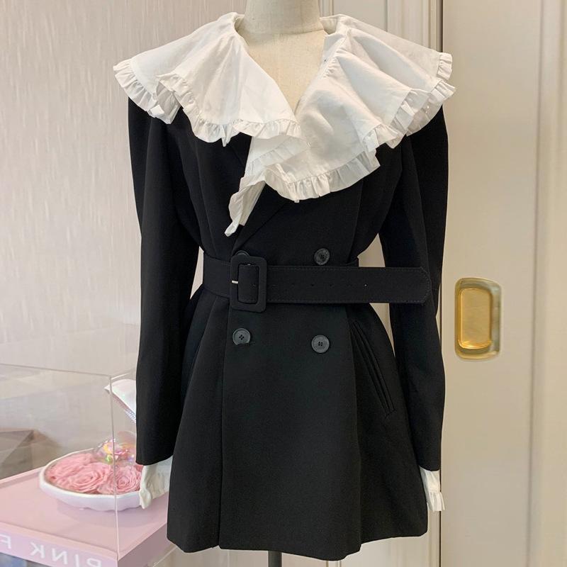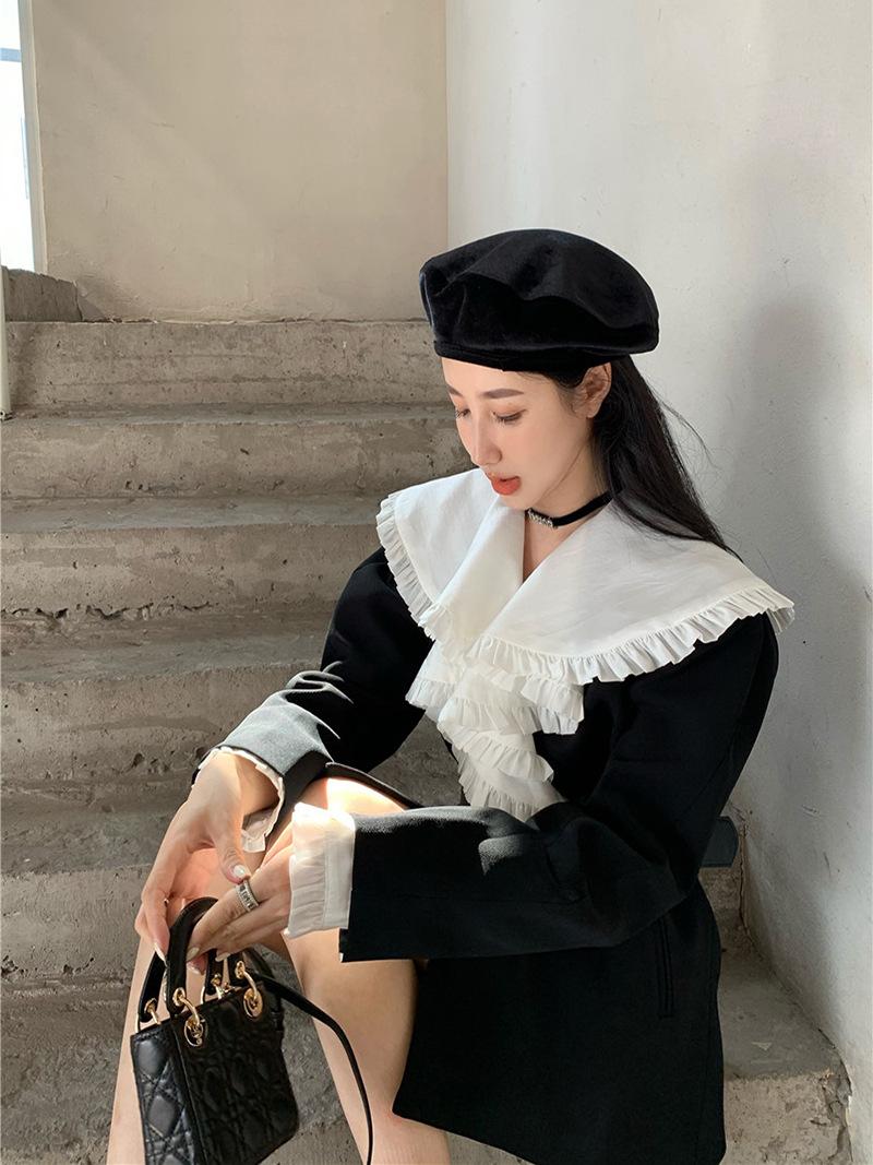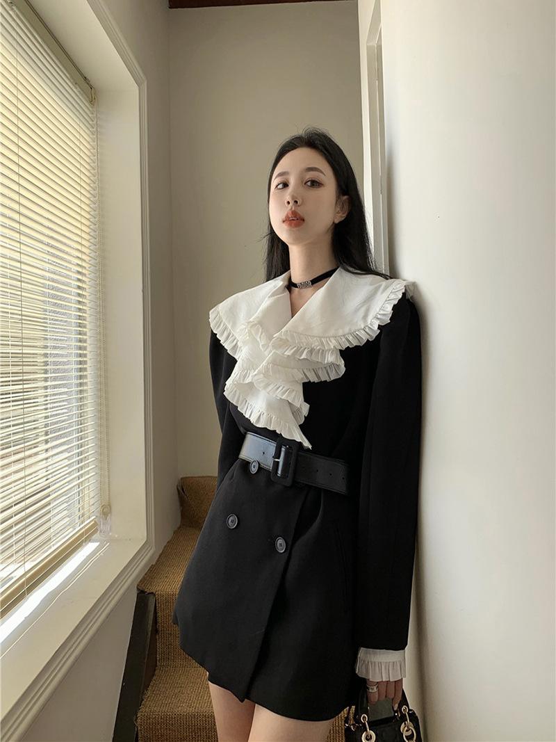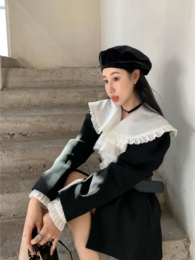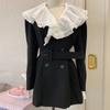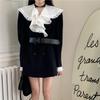 Vestido de Traje Negro para Mujer Otoño Temprano 2025, Entallado en la Cintura, Elegante Vestidito Negro, Estilo Intelectual Francés, Diseñador de Cuello Blanco 9709