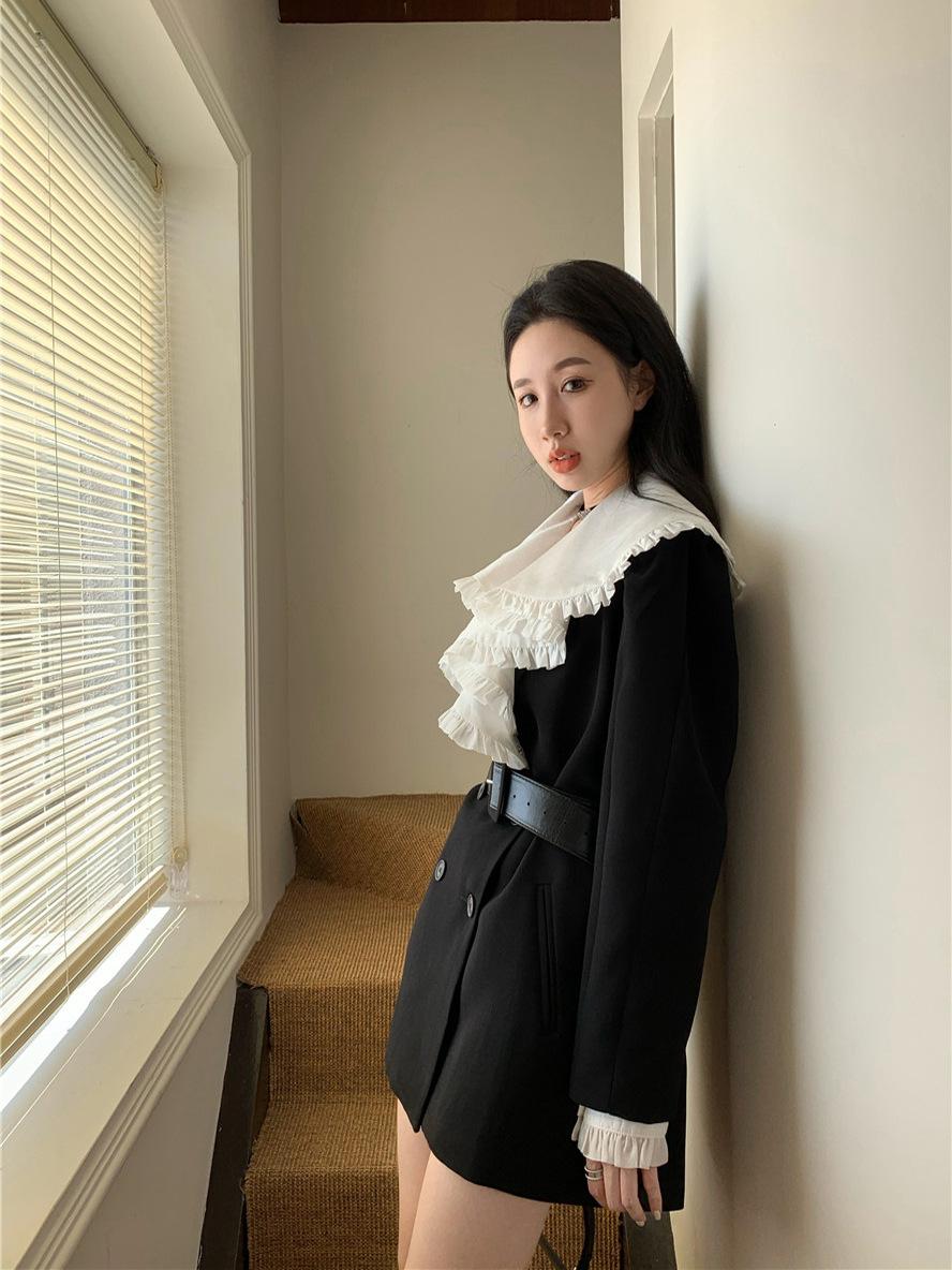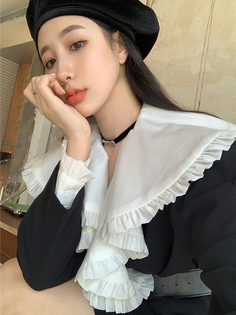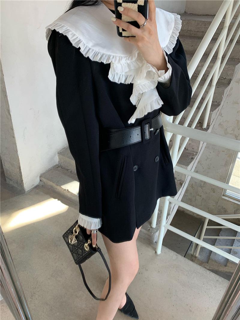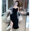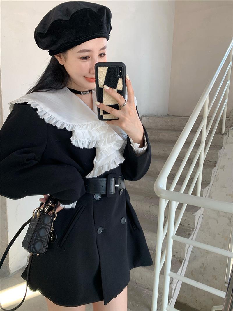 Vestido de Traje Negro para Mujer Otoño Temprano 2025, Entallado en la Cintura, Elegante Vestidito Negro, Estilo Intelectual Francés, Diseñador de Cuello Blanco 9709
