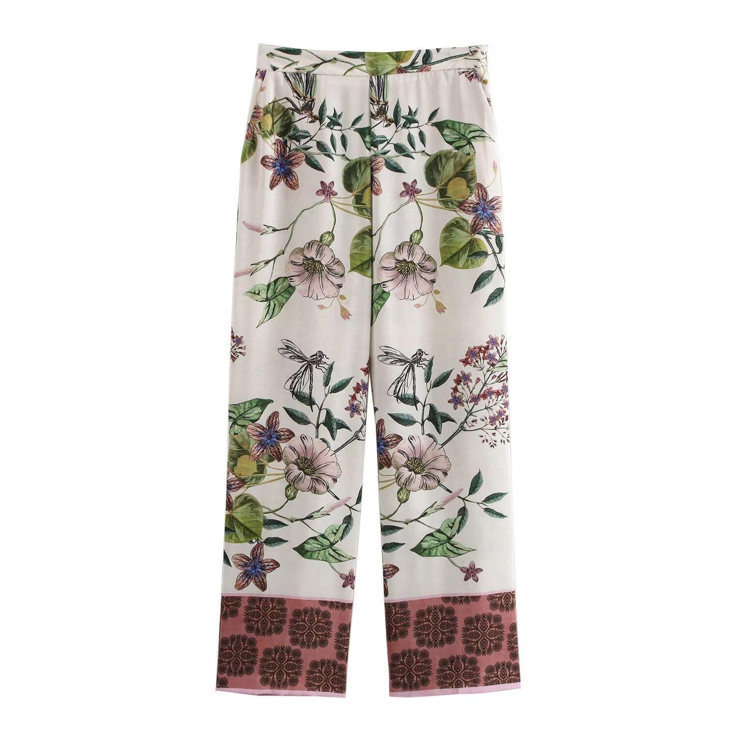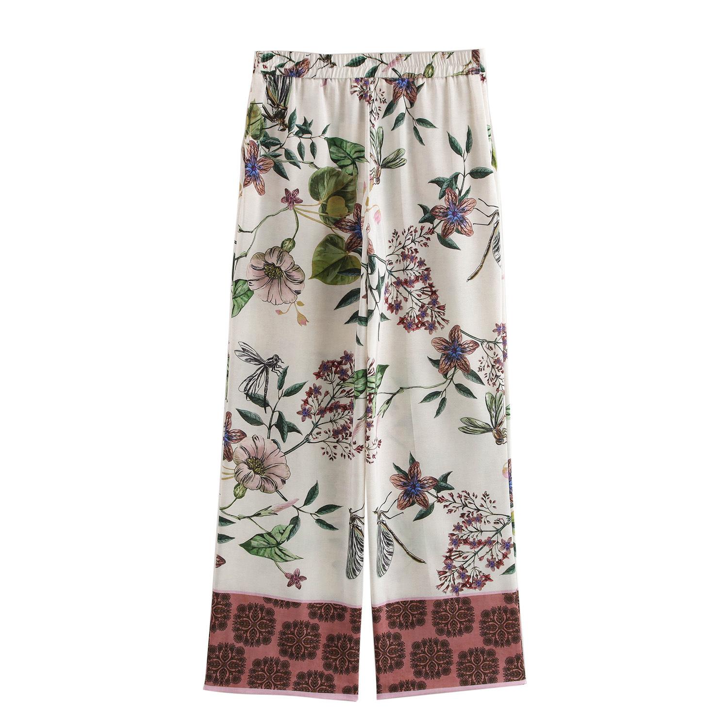 Pantalones de manga ancha con estampado a juego de colores de otoño para mujer, estilo europeo y americano, tendencia 2024, nuevos pantalones casuales sueltos